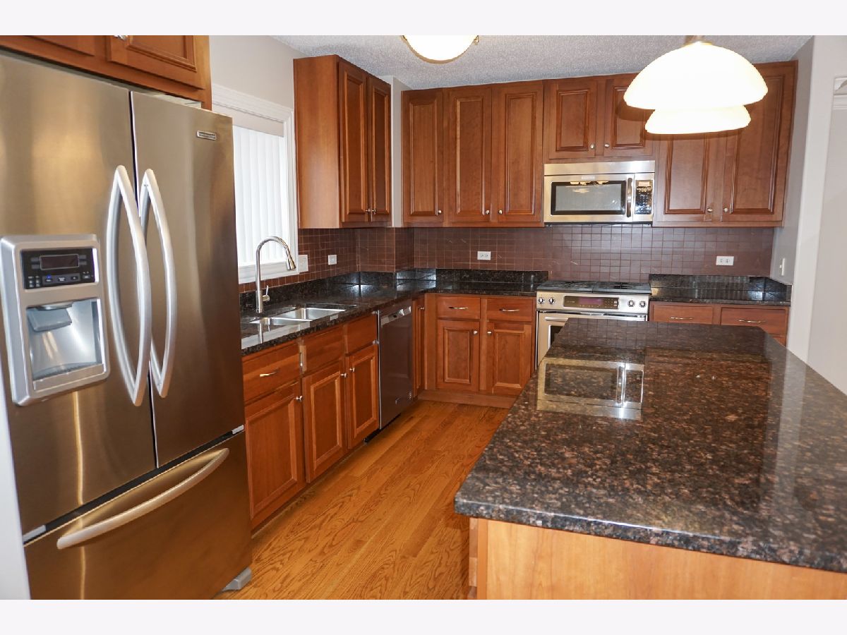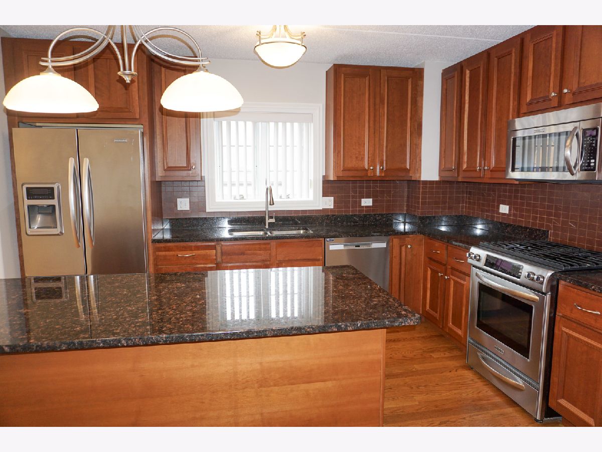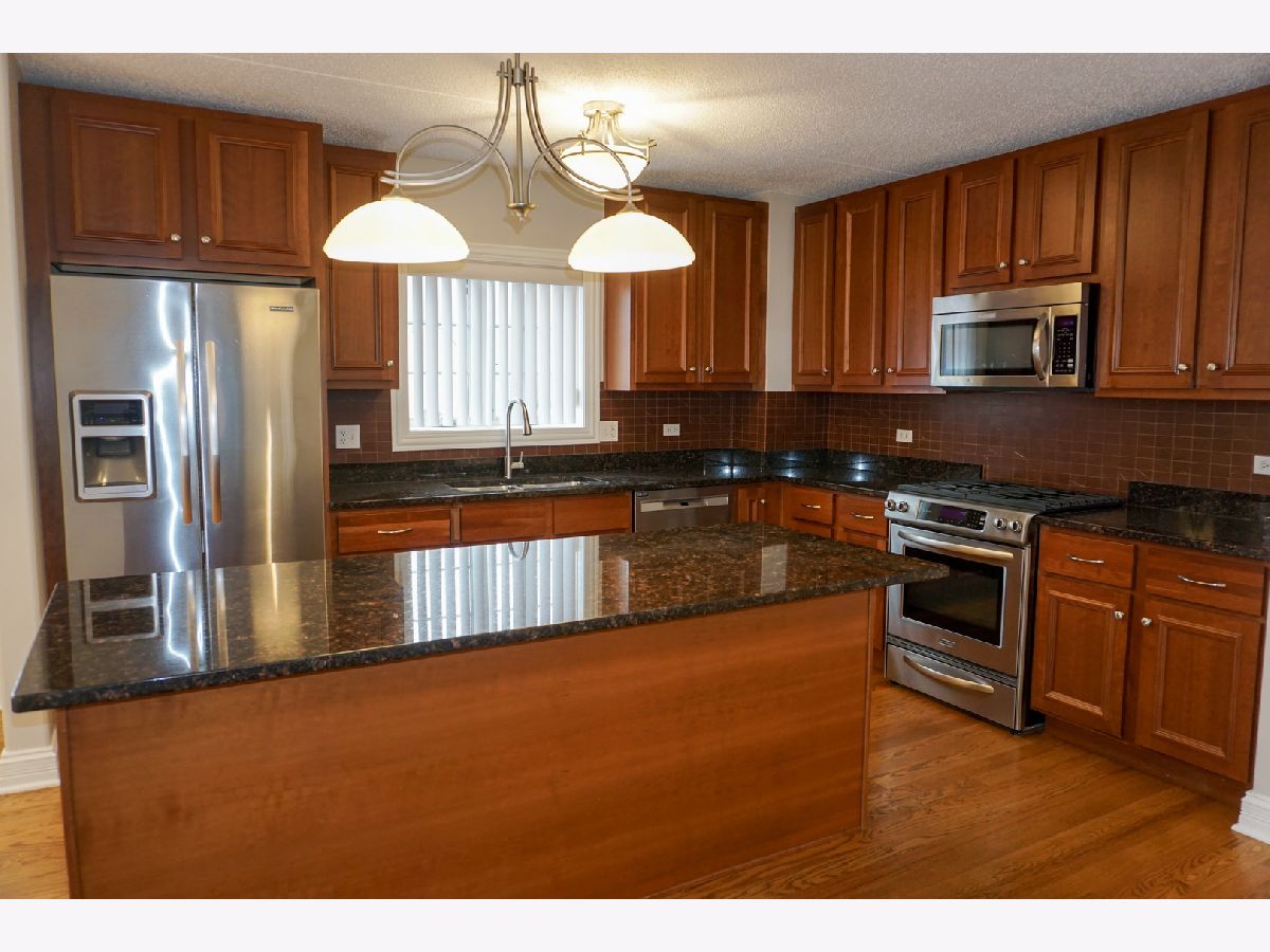 Step into this incredible corner unit in the highly sought-after Clock Tower Pointe of Harwood Heights complex! A welcoming foyer leads into a bright, open-concept layout designed for both comfort and functionality. The gourmet kitchen is a standout feature, boasting granite countertops, a stylish backsplash, all stainless steel appliances, and an oversized island-perfect for cooking, entertaining, or casual dining. The unit offers a dedicated dining area with a window, filling the space with natural light. Hardwood floors flow seamlessly throughout the living and dining areas, adding warmth and elegance. The spacious primary suite features a luxurious whirlpool tub, creating the perfect retreat at the end of the day. Flooded with natural light from its corner exposure, this impeccably maintained home also includes two private balconies. Additional highlights include an in-unit laundry room, indoor heated parking, and a private storage room for added convenience. Monthly assessments cover heat, cooking gas, internet, and premium television services, providing exceptional value. Located within the highly regarded Maine South School District, this pristine, move-in-ready condo offers the perfect blend of luxury, comfort, and convenience in one of Harwood Heights' premier buildings.