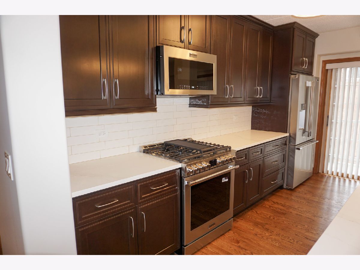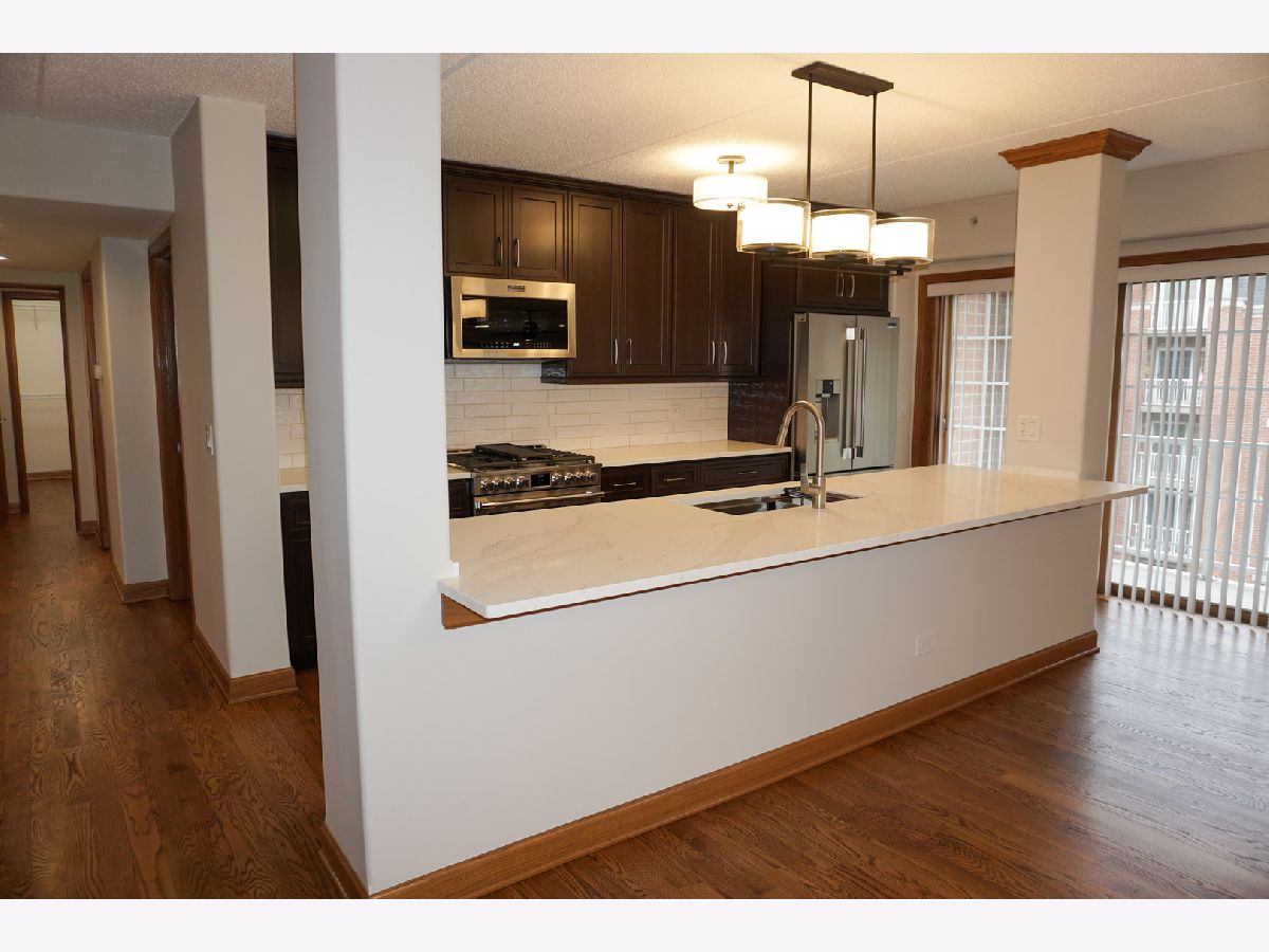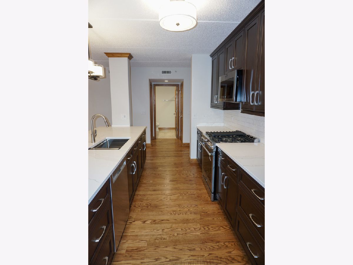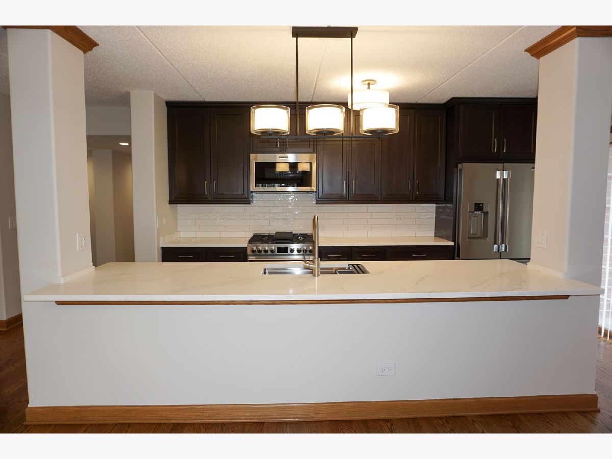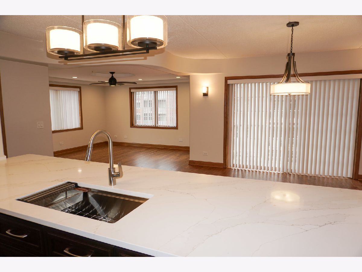 Experience luxury living in this stunning, newly renovated corner-unit condominium in desirable Clock Tower Pointe of Harwood Heights! Boasting 1,992 square feet, this spacious 3-bedroom, 3-bath residence features an open-concept floor plan highlighted by beautifully refinished solid oak hardwood floors, doors, trim, and elegant crown molding throughout. The updated kitchen is a true showstopper, complete with 42-inch refinished cabinetry, brand-new countertops, a massive island with built-in sink, and sleek stainless-steel appliances-perfect for both everyday living and entertaining. New light fixtures and modern finishes elevate the home's sophisticated appeal. Enjoy seamless indoor-outdoor living with three private balconies offering plenty of space to relax or entertain. The spectacular primary suite includes its own private balcony, a generous walk-in closet, and a luxurious en-suite bath with double sinks and a walk-in shower. Additional highlights include an in-unit laundry room and updated bathroom countertops. This exceptional home also comes with two indoor heated parking spaces within a private stall area and oversized storage units-providing convenience and ample storage. Monthly assessments cover heat, cooking gas, internet, and premium cable TV, adding incredible value. Located within the highly sought-after Maine South School District, this move-in-ready residence offers the perfect blend of style, comfort, and convenience. Don't miss this rare opportunity!