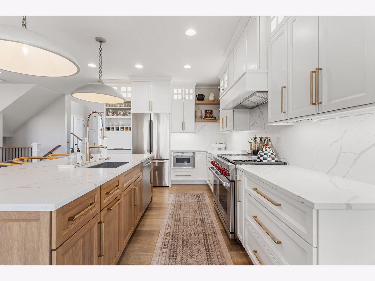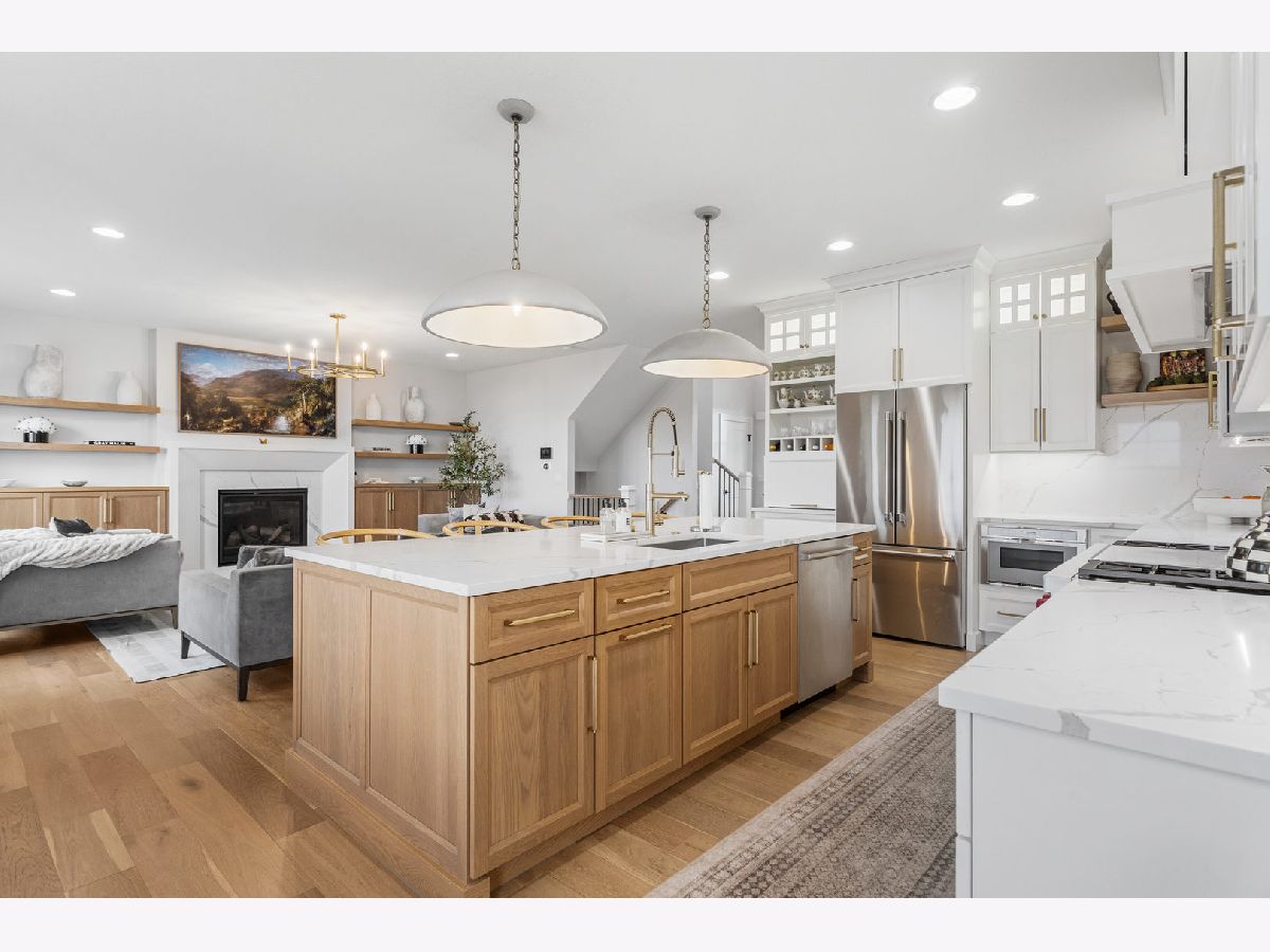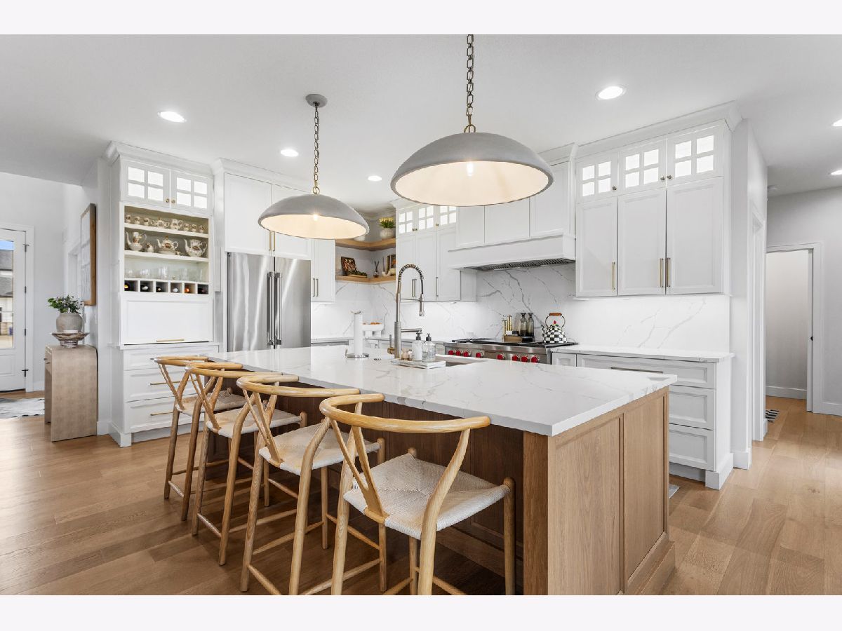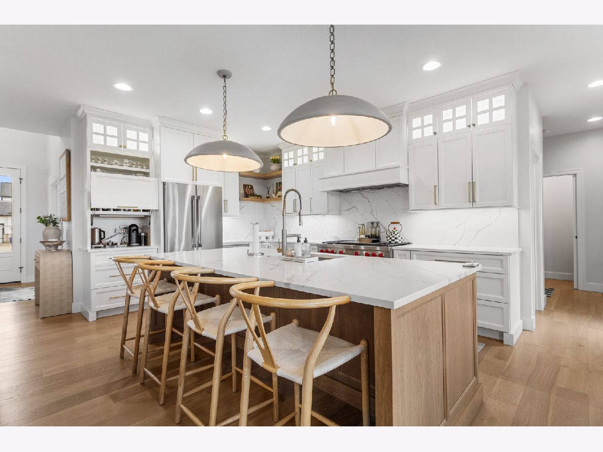 Welcome to 4814 Oakdale, where thoughtful design and truly high end finishes set this home apart from anything else on the market. This is not your typical build. Every detail has been carefully selected and upgraded to create a stunning, one of a kind space. The kitchen is a true showpiece featuring quartz countertops with a full matching backsplash, beautiful hardware, a Wolf dual fuel range with double griddle, Thermador refrigerator and microwave, Bosch dishwasher, walk in pantry, and a convenient appliance garage. Studio McGee lighting over the island and an Arhaus fixture in the dining room add designer touches that elevate the entire space. Hardwood flooring runs throughout the entire home, including the second level, creating a seamless and elevated feel. Custom built ins anchor the living room, and motorized Bali blinds add both comfort and convenience. Natural light pours in from every angle. A main level flex room, currently used as a playroom, offers endless possibilities for a home office, sitting room, or formal space. The mudroom drop zone is thoughtfully tucked away, keeping everyday life organized and out of sight. The finished basement adds a fifth bedroom, full bath, designated workout room, and a spacious second living area perfect for movie nights or hosting guests. Outside, the extremely large corner lot offers both space and privacy, with the fenced backyard backing directly to a park and providing beautiful open views. Professional landscaping with irrigation and a drip system surrounds the home, creating incredible curb appeal. The three car garage provides plenty of space for vehicles, storage, and hobbies. From the designer lighting to the high end appliances and extensive upgrades throughout, this home delivers a truly luxurious feel. It is stunning, unique, and absolutely a must see.