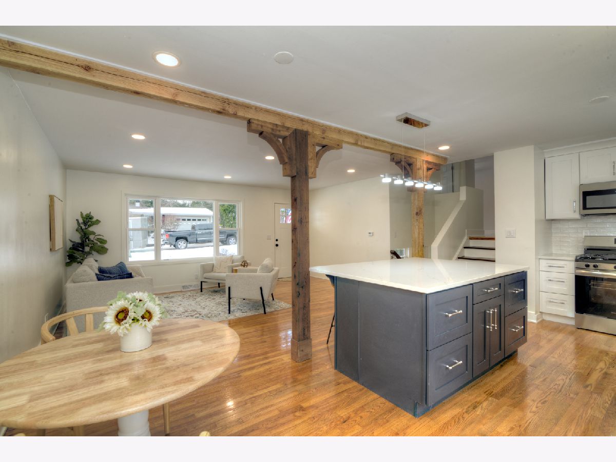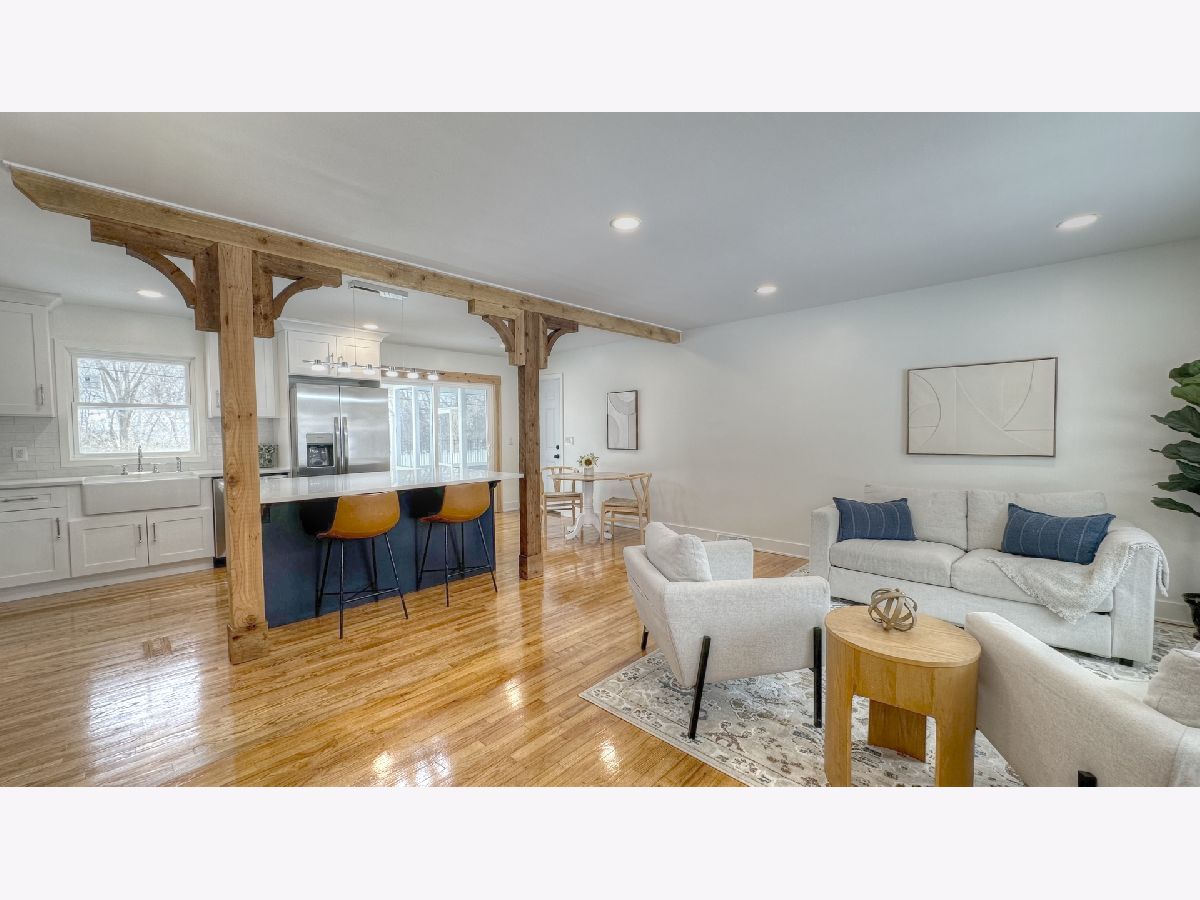 This beautifully remodeled 3-bed, 2-bath home offers an impressive list of upgrades and thoughtful design touches. Step inside to find new windows and doors throughout, along with freshly refinished hardwood floors on the main and upper levels. The lower level features stylish LVP flooring and a brand-new electric fireplace in a bright living area with a walkout basement, providing convenient access to the outdoors. The heart of the home is the fully renovated kitchen, showcasing a massive center island, all-new stainless steel appliances, a farmhouse sink, custom cedar beams, and abundant natural light. Both full bathrooms have been completely remodeled, offering modern finishes and spa-like comfort. Enjoy the added living space of a large screened-in porch, newly updated with epoxy flooring, providing the perfect spot for relaxing or entertaining in any season. Major mechanical and structural updates give peace of mind, including a new roof (10/25), new water heater, and a fully Perma-Sealed crawl space. A whole-house humidifier has also been installed for year-round comfort. Your outdoor retreat is ready for summer with a refreshed in-ground pool, featuring a new pump, new filter, brand-new concrete lounging area, and a newly installed fence for safety and privacy. A second parking area adds functionality, while the expansive backyard offers endless potential. The larger one-car garage has been fully updated with new drywall and epoxy floors-plus the lot provides plenty of space to add an additional garage if desired. Located on a quiet street and zoned for the award-winning Prairie Ridge High School, this property delivers the perfect blend of style, comfort, and a top-tier location. Don't miss this fantastic, move-in-ready home-fully updated and truly one-of-a-kind!