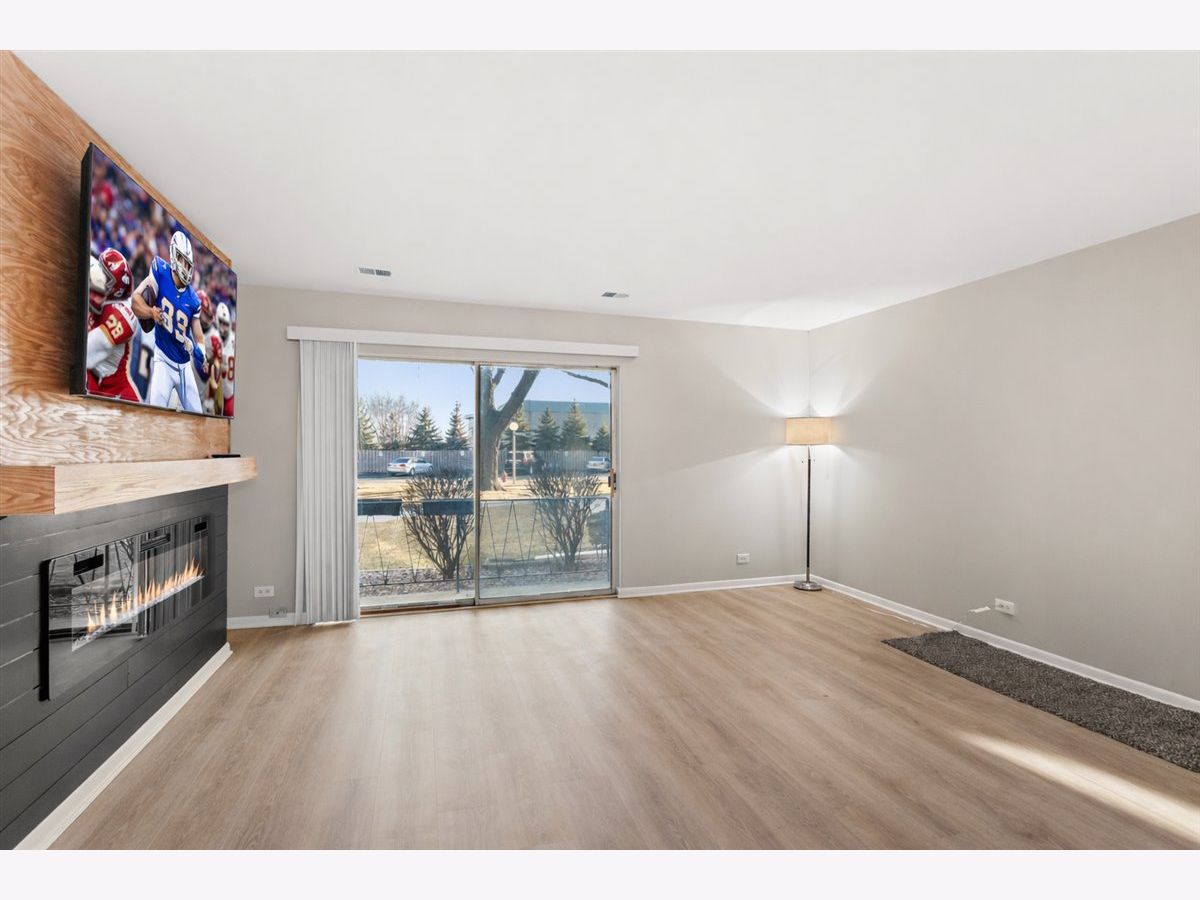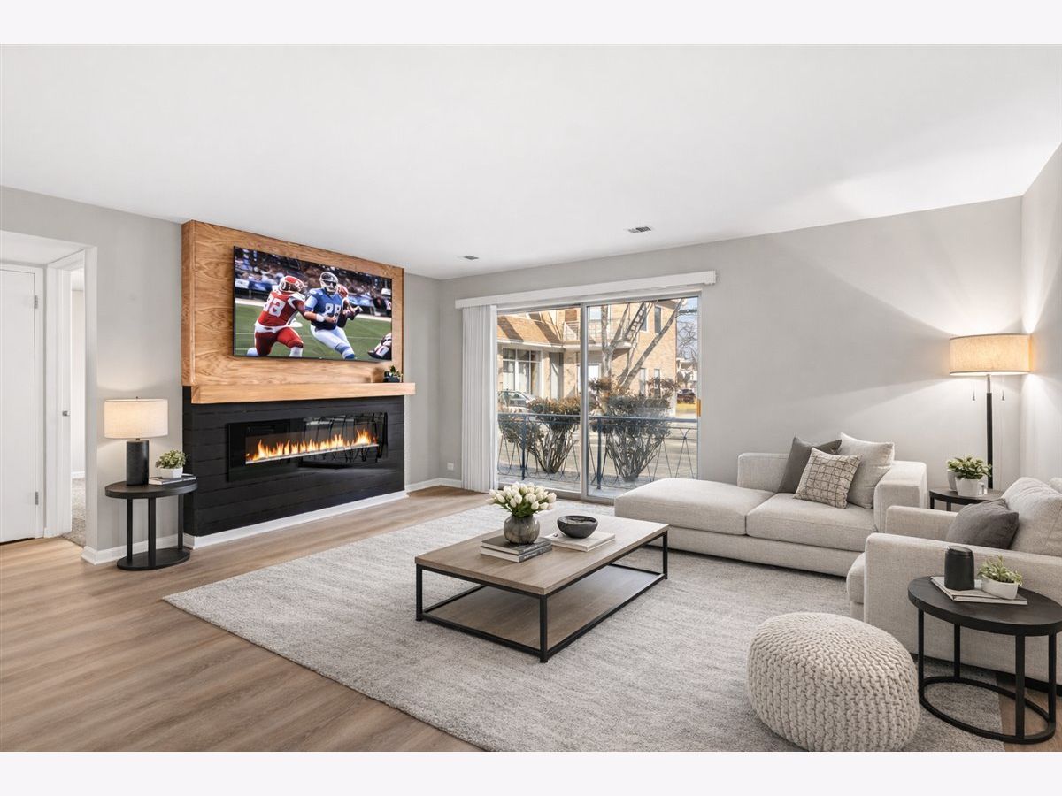 Freshly updated 2-bedroom, 1-bath condo offering modern style and move-in ready convenience! This beautifully refreshed home features fresh paint throughout, brand-new flooring, and updated lighting that creates a bright, contemporary feel. The kitchen shines with sleek quartz countertops and new stainless steel appliances, perfect for everyday living and entertaining. A custom entertainment wall serves as the show-stopping focal point of the living space, complete with a big screen TV and an electric multi-color fireplace for added warmth and ambiance. Spacious bedrooms, a clean modern bath, and thoughtful upgrades throughout make this condo a must-see. Perfect for first-time buyers, downsizers, or anyone seeking low-maintenance living with high-end touches! HOA dues INCLUDE HEAT/WATER/SNOW REMOVAL/GRASS/ & GARBAGE!!!