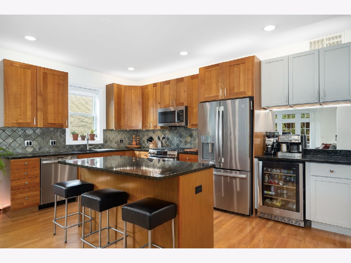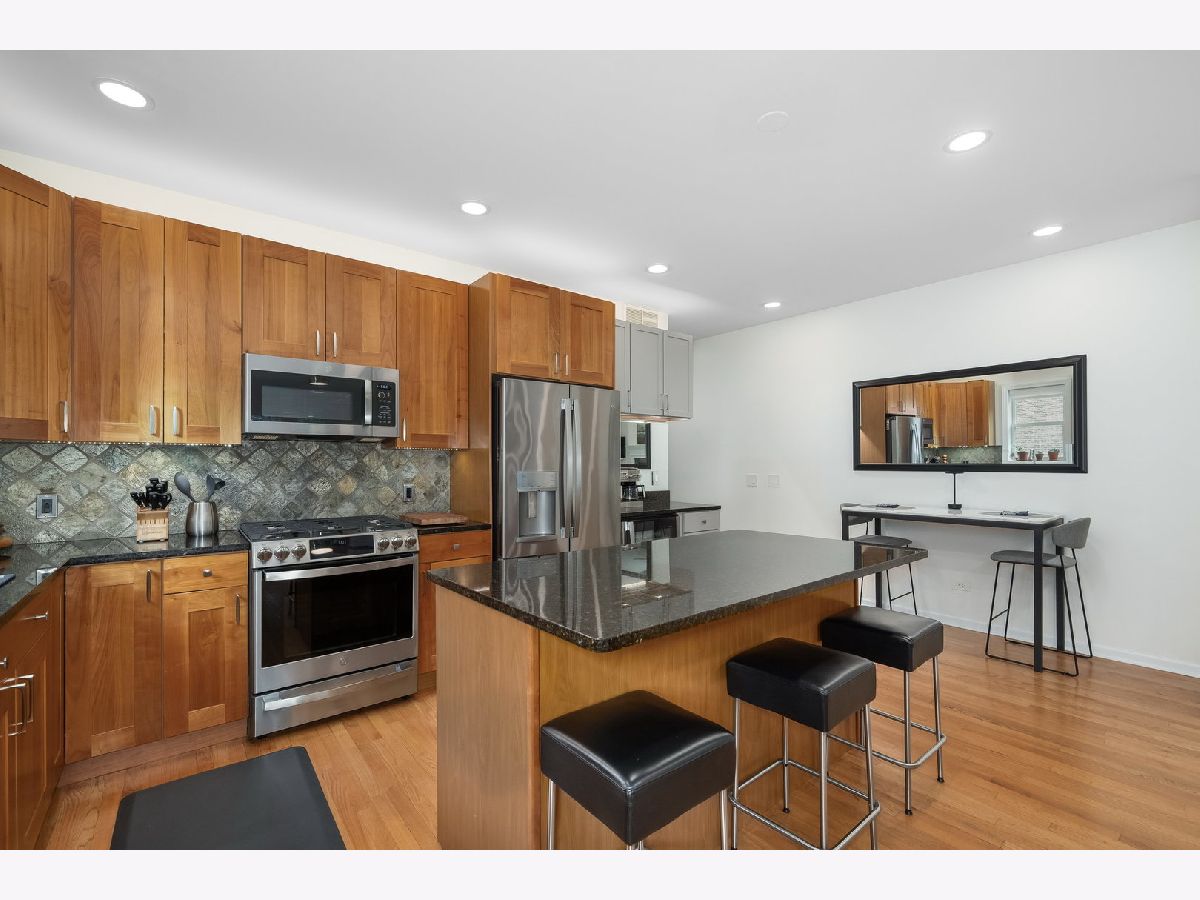 This beautifully maintained Uptown condo offers 2 bedrooms, 2 bathrooms, and thoughtfully designed living space. Perfectly situated on a tree-lined street just steps from the Red Line and Lake Shore Drive, the home blends modern comfort with neighborhood charm. A spacious front terrace with treetop views creates the perfect setting for morning coffee or evening relaxation. Inside, the open-concept living, dining, and kitchen area features a cozy gas fireplace, stainless steel appliances, hardwood floors, and a newly added coffee bar complete with a wine fridge and extra storage. Custom window treatments, including motorized shades, elevate the space with both style and convenience. The residence has been meticulously updated with brand-new windows and sliding door installed less than a year ago with a 25-year transferable warranty. All mechanicals have been replaced within the last five years, and the building itself is exceptionally well-maintained, including a new roof added in 2023. Thanks to the upgraded windows and the Lawrence stop, the train noise inside the home is minimal. Additional highlights include in-unit laundry, a massive locked private storage room in the basement, and parking for two vehicles with both a garage spot outfitted with electric car charger port and an exterior space located directly out back. Beyond the home, Uptown offers an unbeatable lifestyle with a half-acre dog park, a prized dog beach, fitness centers, coffee shops, grocery stores, popular restaurants, big-box shopping, and live music venues.