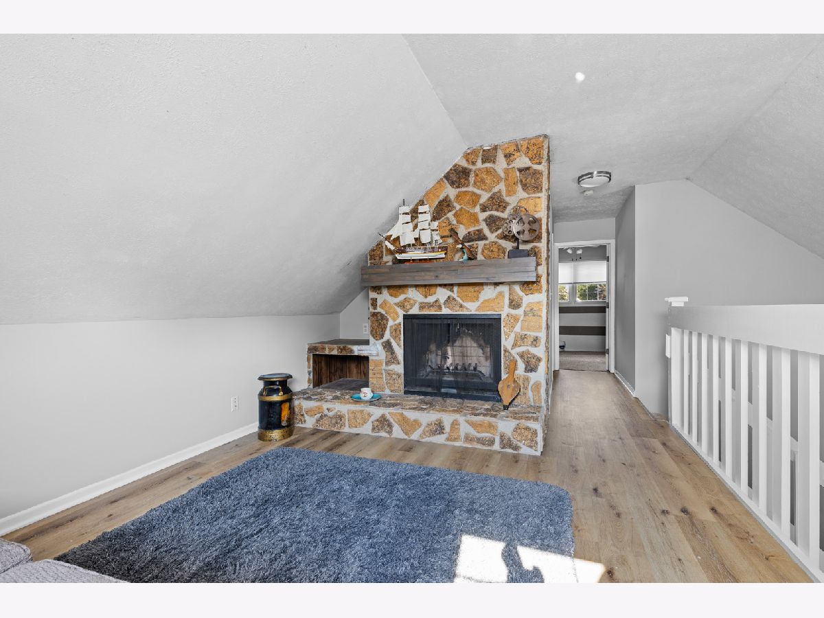 Beautifully updated 3 bedroom, 2 bathroom home featuring a versatile floor plan and modern finishes throughout. Situated on a fully fenced .59 acre lot, this home offers plenty of outdoor space, complete with a wooden deck and a garden shed-perfect for relaxing or entertaining. Step inside to find new vinyl plank flooring throughout the home, enhancing its clean, contemporary feel. The updated kitchen is a chef's dream with stainless steel appliances, a sleek glass tile backsplash, granite countertops and a convenient eat-in area. The light-filled living room features soaring cathedral ceilings, creating an open and airy atmosphere. Two bedrooms and a full bathroom are located on the main level, while the third bedroom is upstairs, adjacent to a loft area with a cozy wood-burning fireplace and full bathroom. The finished basement offers even more room to spread out, with a spacious rec room and a bonus room. Attached 2-car garage provides convenient parking and extra storage. Hononegah school district and minutes from shopping and restaurants.