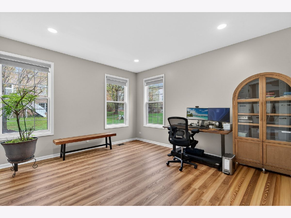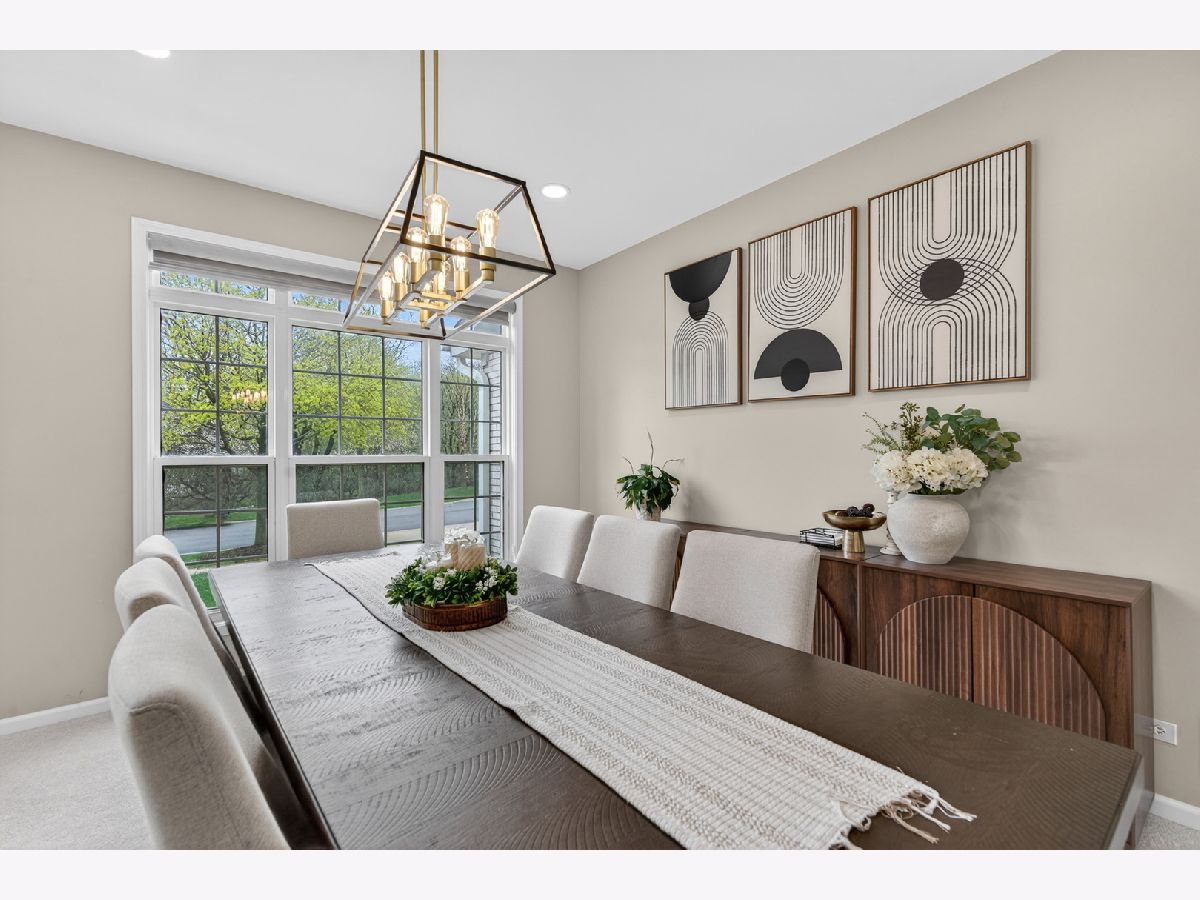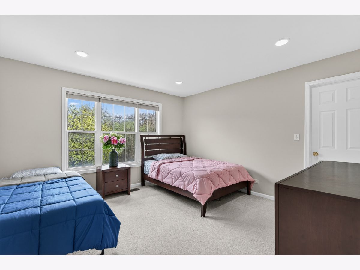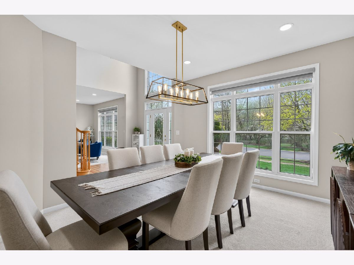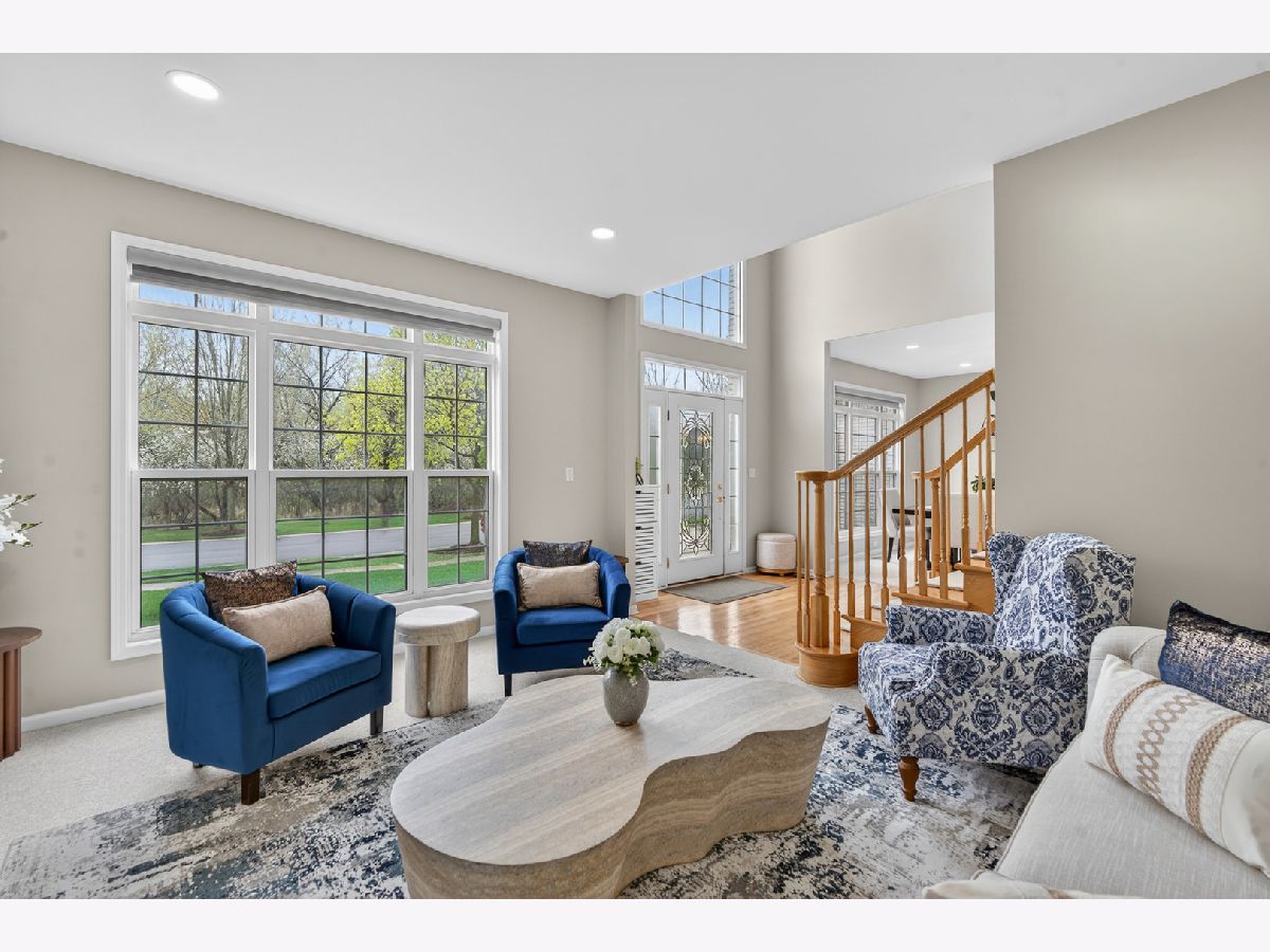 Fantastic offering in north Palatine in beautiful Dunhaven Woods. Enjoy the serenity of nature with old-growth, tree-lined drives and woods directly across the street setting the stage for this gorgeous 5-bedroom, 3-bath home. A stunner from the moment you approach, this cream-brick beauty welcomes you with over 4,000 SF of luxury space and a grand staircase as you step inside. It's updates galore! A special kitchen redesign completed in 2026 includes 42-inch, high-end, wrap-around cabinets setting the stage for the waterfall island splashed with quartz counters. You'll love the warm feel as gleaming hardwood rolls underfoot. The spacious first level carries effortlessly from room to room with separate living and dining flanking the two-story entry with vaulted ceilings extending from the second floor walk into the dramatic family room with gas log fireplace. The setting anchors with large picture windows overlooking the backyard. It's light everywhere, in abundance on both levels as a secondary staircase carries you on a short journey from the kitchen to the primary bedroom. This oversized retreat lends extra space for an interior living area & more. The massive bathroom provides two sinks, plenty of prep area plus separate soaking tub and shower. A two-sided walk-in closet is big enough to get lost in for a moment. Cross the open walk, and find three spacious bedrooms at the top of the grand staircase, encircling a shared full bath. There's a 5th bedroom on the main level situated next to the updated full bath, great for guest convenience or as an office space. Find freshly-installed ceiling lights throughout the house. Step outside to the large patio -- great for entertaining -- and enjoy the canopy of large trees shading the backyard. High & dry, this home sits well above the street and sports a 3-car garage for all your toys and extra storage. The full basement is ready for final finishing touches and includes a bathroom rough-in. Situated quietly toward the back of the neighborhood, enjoy major roads in all directions & nearby shopping. Deer Park Town Center sits just over a mile away. The neighborhood is tucked into beautiful Deer Grove Forest Preserve with woods, prairies and hiking trails just minutes from your front door. An outstanding opportunity to call home!