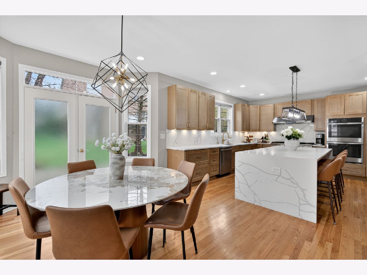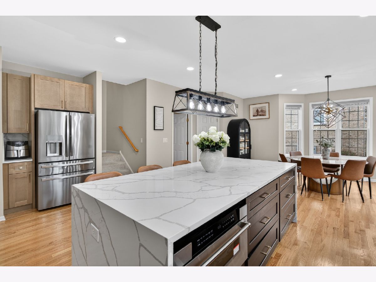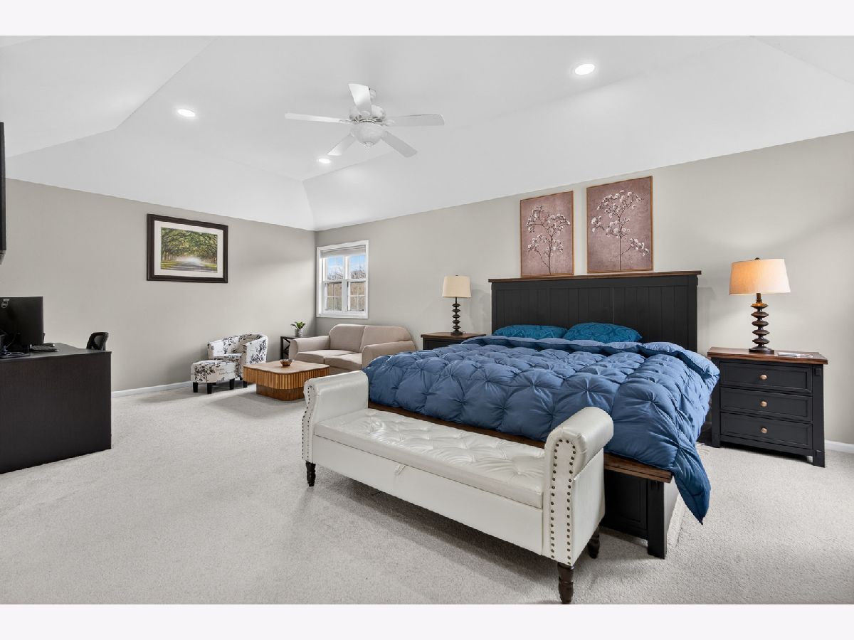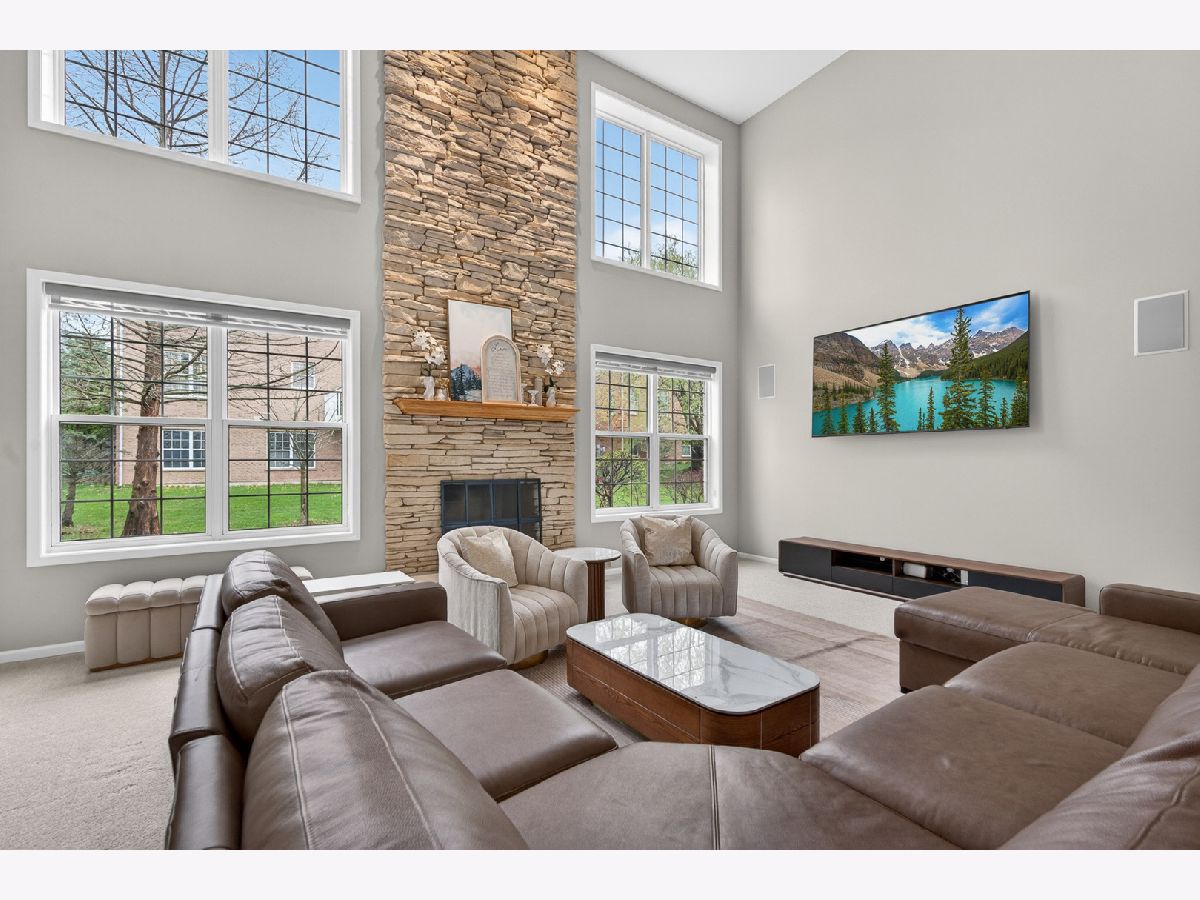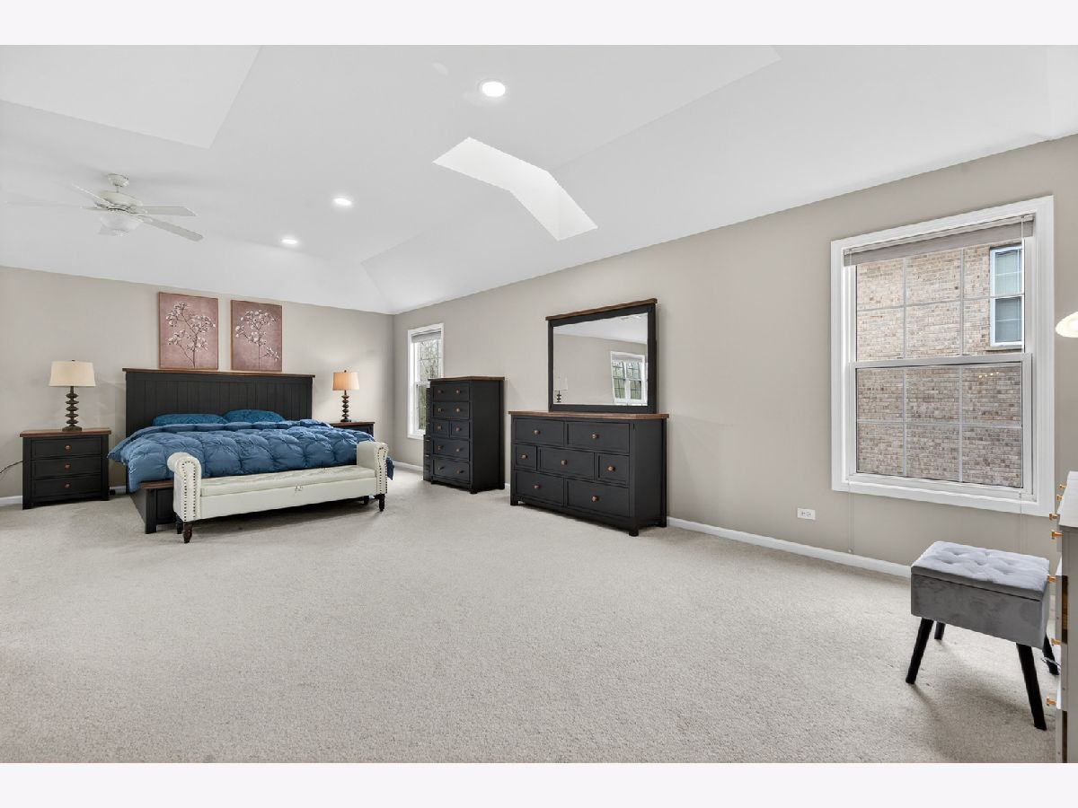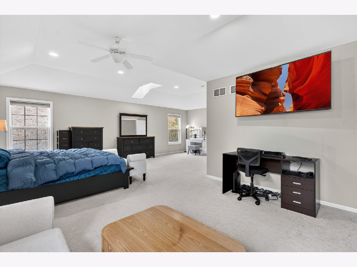 Fantastic offering in north Palatine in beautiful Dunhaven Woods. Enjoy the serenity of nature with old-growth, tree-lined drives and woods directly across the street setting the stage for this gorgeous 5-bedroom, 3-bath home. A stunner from the moment you approach, this cream-brick beauty welcomes you with over 4,000 SF of luxury space and a grand staircase as you step inside. It's updates galore! A special kitchen redesign completed in 2026 includes 42-inch, high-end, wrap-around cabinets setting the stage for the waterfall island splashed with quartz counters. You'll love the warm feel as gleaming hardwood rolls underfoot. The spacious first level carries effortlessly from room to room with separate living and dining flanking the two-story entry with vaulted ceilings extending from the second floor walk into the dramatic family room with gas log fireplace. The setting anchors with large picture windows overlooking the backyard. It's light everywhere, in abundance on both levels as a secondary staircase carries you on a short journey from the kitchen to the primary bedroom. This oversized retreat lends extra space for an interior living area & more. The massive bathroom provides two sinks, plenty of prep area plus separate soaking tub and shower. A two-sided walk-in closet is big enough to get lost in for a moment. Cross the open walk, and find three spacious bedrooms at the top of the grand staircase, encircling a shared full bath. There's a 5th bedroom on the main level situated next to the updated full bath, great for guest convenience or as an office space. Find freshly-installed ceiling lights throughout the house. Step outside to the large patio -- great for entertaining -- and enjoy the canopy of large trees shading the backyard. High & dry, this home sits well above the street and sports a 3-car garage for all your toys and extra storage. The full basement is ready for final finishing touches and includes a bathroom rough-in. Situated quietly toward the back of the neighborhood, enjoy major roads in all directions & nearby shopping. Deer Park Town Center sits just over a mile away. The neighborhood is tucked into beautiful Deer Grove Forest Preserve with woods, prairies and hiking trails just minutes from your front door. An outstanding opportunity to call home!