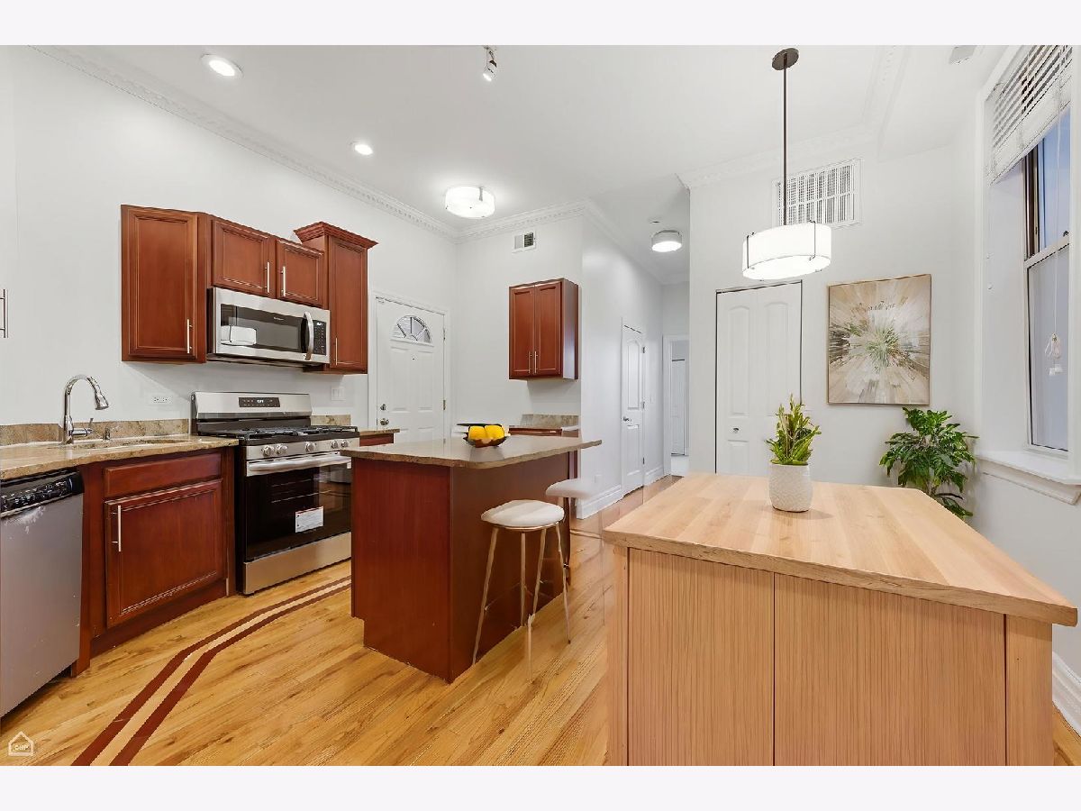Bronzeville Elegant Expansive 2 bedroom 2 bath Set in Intimate Boutique Walk Up. Offers an Exceptional Opportunity with Unparalleled Value. Intelligent Balanced Floorplan, Flooded with Natural Light, Gleaming Hardwood Floors with Cherry Border, Exposed Brick, Coiffured Ceilings, Professional Kitchen, All Stainless Appliances, Granite Countertops with Island Curated Modernist Guest Bath with Glass Shower, Sequestered Primary suite with Pro Closet System, High Style Decadent Spa Bath, Whirlpool/Shower, Vessel Bowl Sinks, Combination with Designed Lighting and Mirror. Premium Window Treatments, Closet Organizers, Laundry Center, 1 Outdoor Secured Parking Space and Achosa 1 year Home Warranty included in sale. Professionally Managed HOA, Hyper Convenient to Green Line, Lakefront, U of C, and Retail. Shows like a model. Virtually Staged and move in ready. Ask about CRA Financing options with $$ towards closing costs and low LTV down for qualified buyers