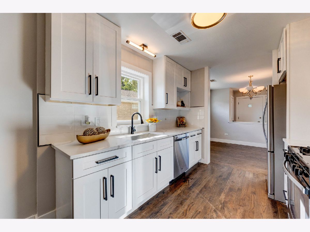 Welcome to your updated all-brick step ranch on one of Oak Lawn's peaceful, tree-lined streets! This move-in-ready 3-bedroom, 1-bath home blends modern updates with classic charm and sits directly across from St. Linus School-a prime location within a highly rated district. Step inside to an open-concept living and dining space with sun-filled windows and gleaming hardwood floors throughout the main level. The updated kitchen features stainless steel appliances, a stylish built-in coffee bar, and plenty of cabinet space. All three bedrooms and the full bath are conveniently located on the main floor, making everyday living easy. Head downstairs to the finished basement-your ultimate entertaining level. Complete with a wet bar, projector with a 126" screen, newer flooring (2020), a freshly updated laundry room (2025), a cedar closet, and multiple storage areas. There's also room to add an extra bedroom and bathroom if you're looking for more space or future value. Outside, enjoy a fully fenced yard, a 2-car garage, and a gated side driveway. Major updates include: * New main-level windows (2022) * Roof + gutters (2021) * Washer & dryer (2021) * Water heater (2019) * Sump pump & dual heating (radiant + gas-forced air) With its prime location, thoughtful updates, and solid brick construction, this home offers comfort, convenience, and long-term value in one of Oak Lawn's most desirable pockets.
