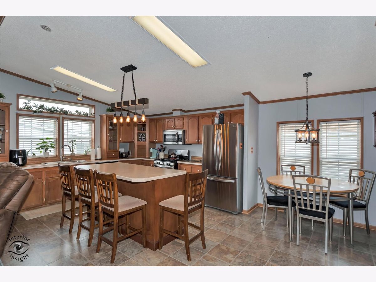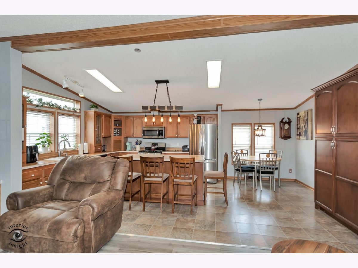 Welcome to this spacious Commodore model located in the desirable Golf Vista adult community! This beautifully maintained home offers 3 large bedrooms and 2 full bathrooms, providing plenty of space for comfortable living. The gourmet kitchen is a standout feature, complete with stainless steel appliances, a large island perfect for entertaining, and custom maple cabinetry. A skylight fills the space with natural light, creating a warm and inviting atmosphere. Updated flooring and built-in shelving add both style and functionality throughout the home. Step outside to enjoy the large covered wood deck-ideal for relaxing or hosting guests year-round. Additional highlights include an updated furnace, and water heater. A 1.5-car detached garage, perfect for your vehicle or golf cart.Residents of Golf Vista enjoy access to a vibrant clubhouse featuring a fitness center, billiards hall, and a wide variety of social activities. This is low-maintenance living at its finest-don't miss your chance to call this home!