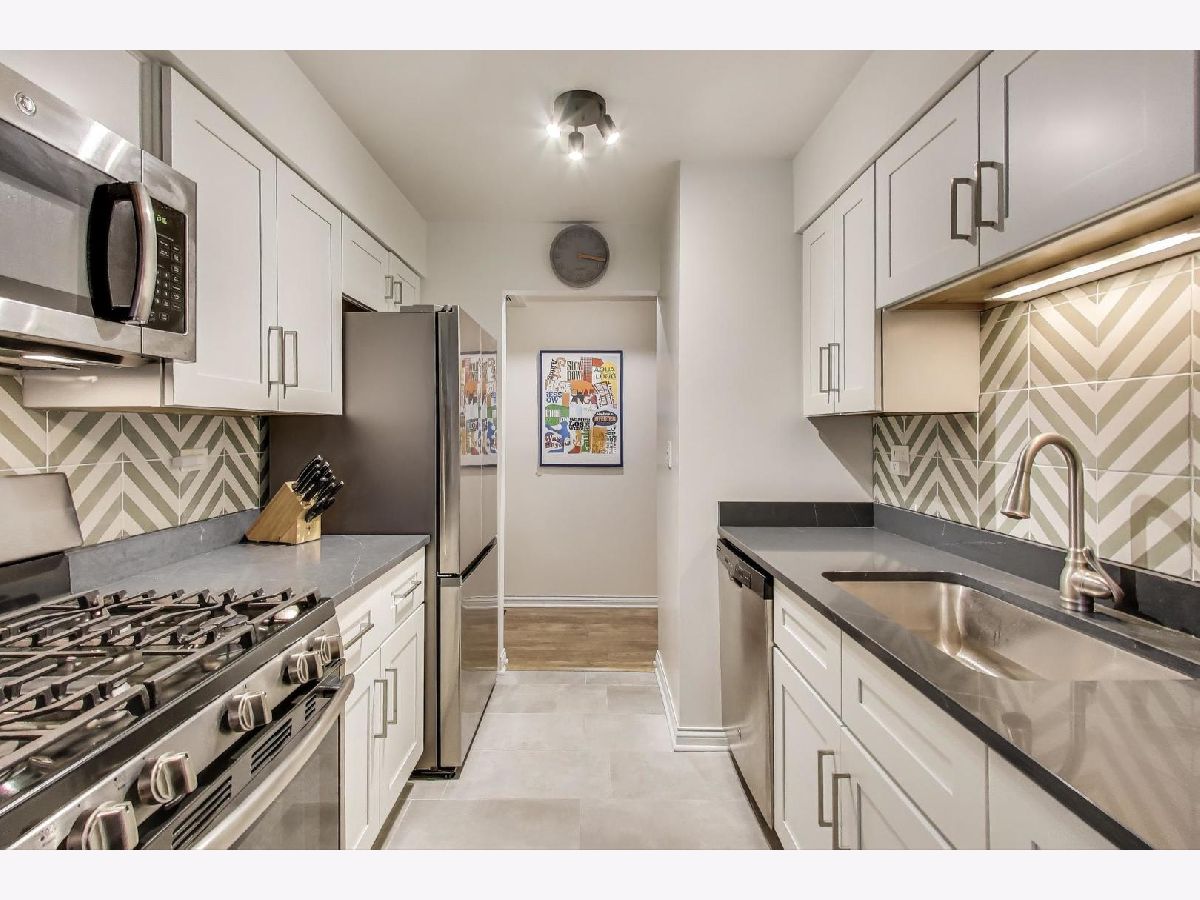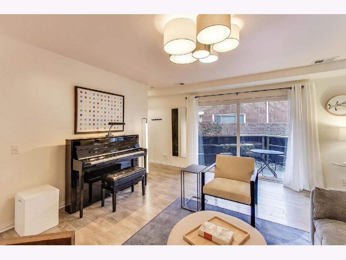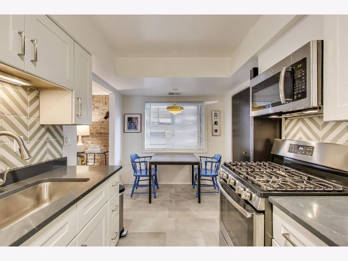 PRIME RAVENSWOOD LOCATION - WELCOME TO 4876 N. HERMITAGE, 102. This fabulous 1-bedroom, 1-bath has parking included, a private patio with table and grill space in a shared courtyard and has been beautifully updated, shows like a model home! Step into the spacious living room with exposed brick accent wall and enjoy the warmth of a gas fireplace. Natural light pours in through large windows, creating an inviting and airy atmosphere perfect for relaxing or entertaining guests. Bright and modern eat-in kitchen with white cabinetry, custom backsplash, quartz countertops, and stainless-steel appliances with a new side-by-side refrigerator in 2024. The bedroom is spacious with plenty of room for a home office desk. Bathroom features custom tile tub surround, granite counters, cherry cabinetry and has heated floors! Additional highlights include central heating and air conditioning and washer/dryer in unit! Great location with easy access to Ravenswood, Lincoln Square, and Andersonville shops, dining, and entertainment. Just a short distance to public transportation, including the Metra and CTA trains. This is a MUST-SEE home, schedule your showing today!