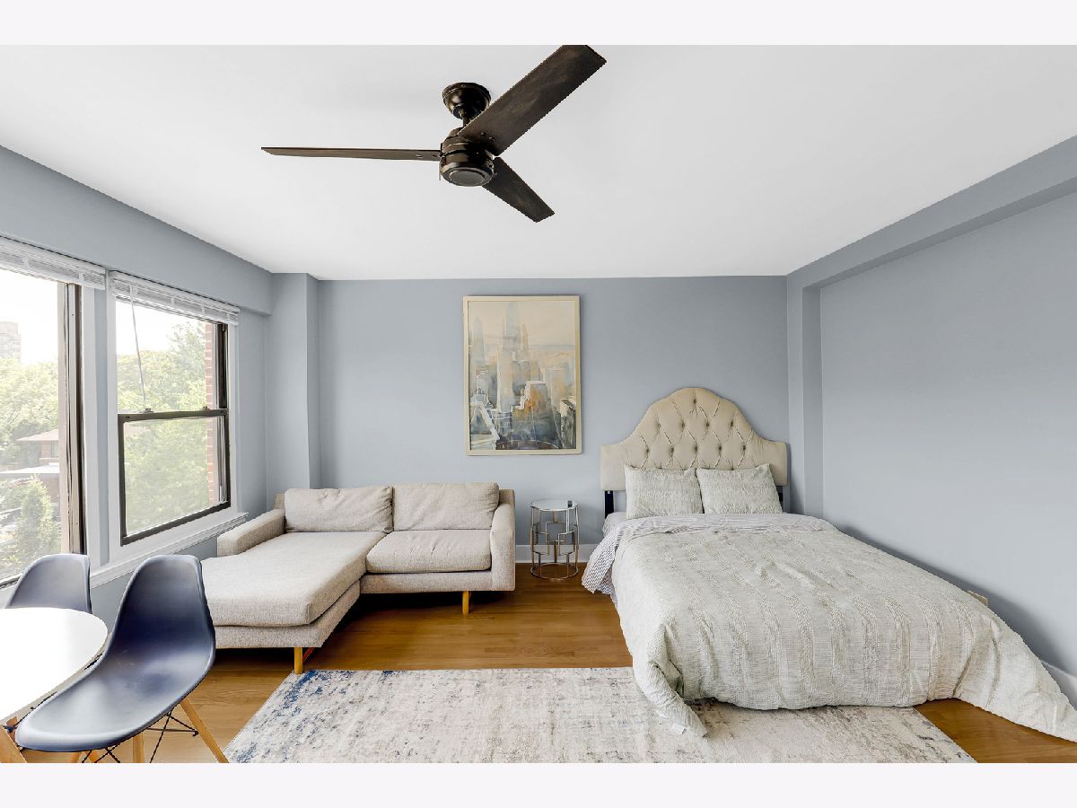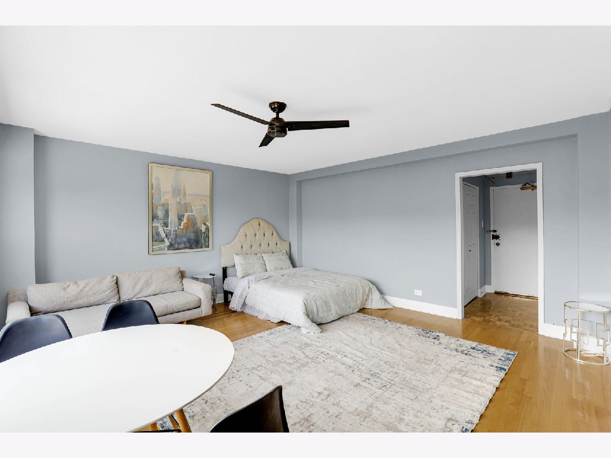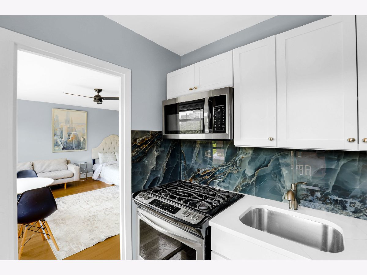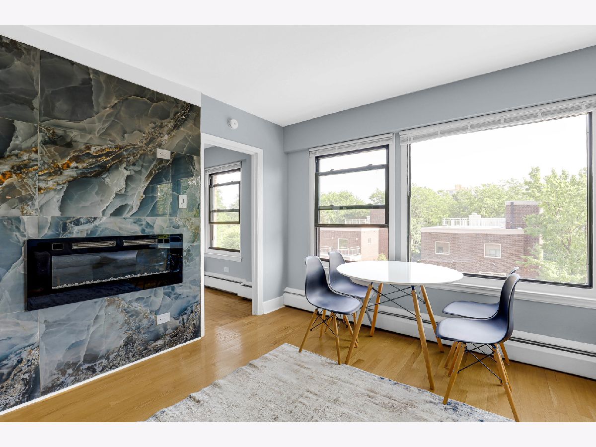 Welcome to this beautifully renovated studio condo steps from Lake Michigan in prime Uptown neighborhood! This unit perfectly blends modern comfort with functional living. Upon entry, you're greeted by a spacious coat closet, offering generous storage and an organized, welcome home. The expansive living area can accommodate a king-sized bed, a cozy couch, dining table, and a workspace-ideal for both relaxing and entertaining. Rich hardwood floors, a wall-mounted electric fireplace, and a spot above for a TV mount create a warm and inviting ambiance. Off the main living space, a versatile bonus room awaits-complete with a large linen closet, bench seating, and new floor tiles-leading into a fully updated bathroom. Enjoy sleek upgrades including a brand-new toilet, vanity, mirror, shower, and tile flooring. The kitchen features brand-new quartz counters, stylish backsplash, all-new cabinets, and stainless steel appliances. This unit is move-in ready with all the right upgrades. Walking distance from parks, public transportation, and Lake Michigan. Don't miss the opportunity to own this thoughtfully updated gem!