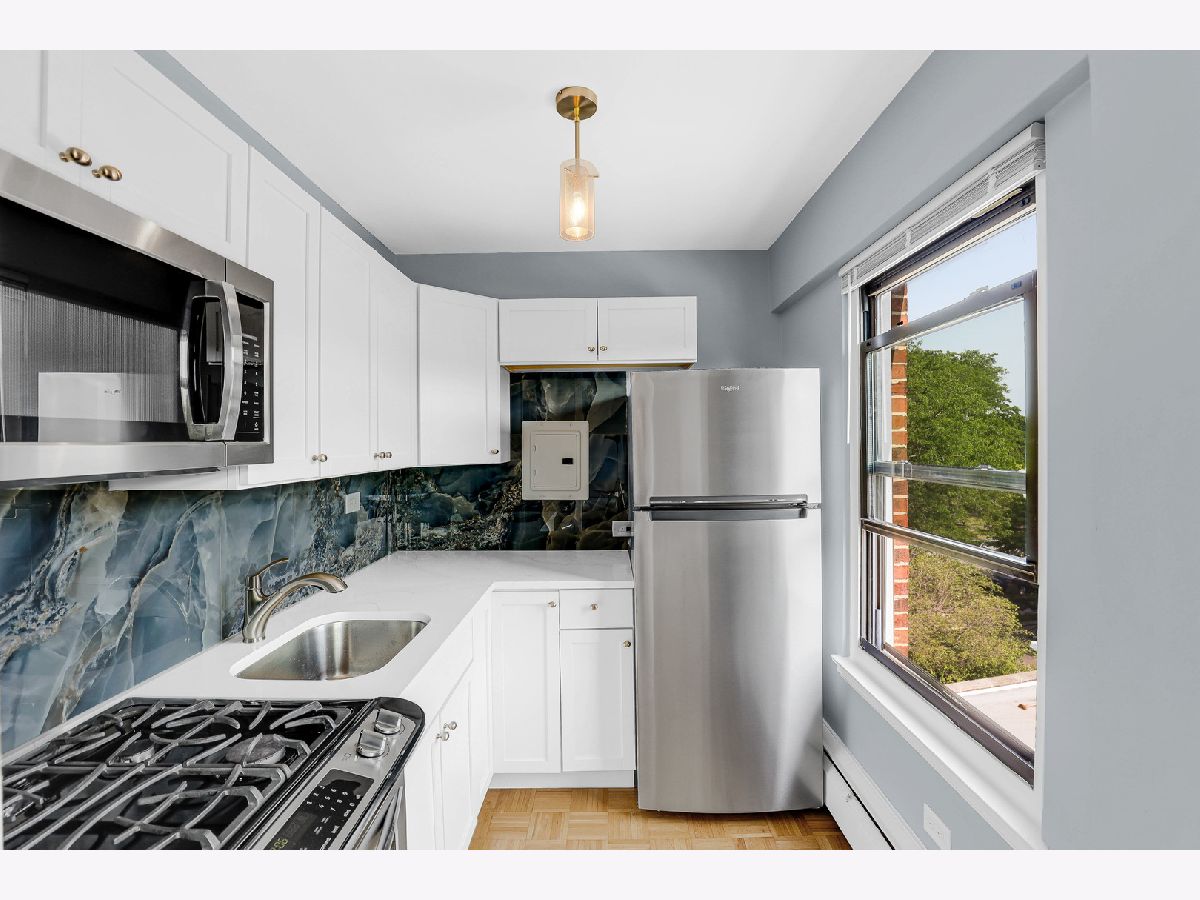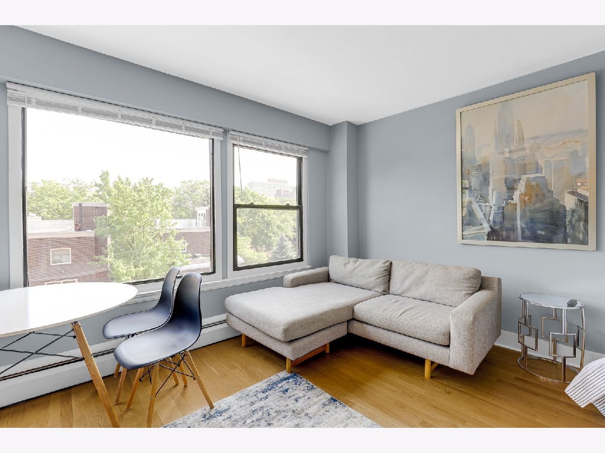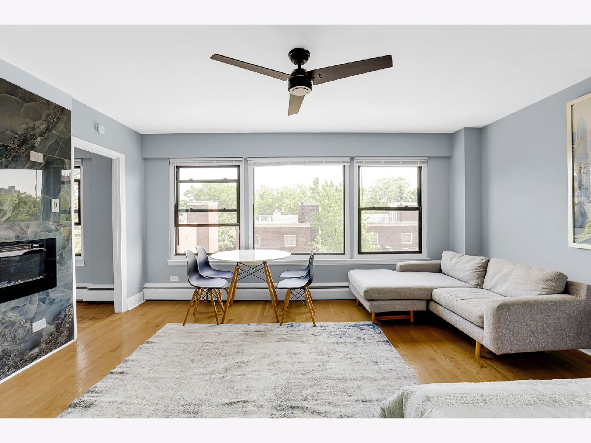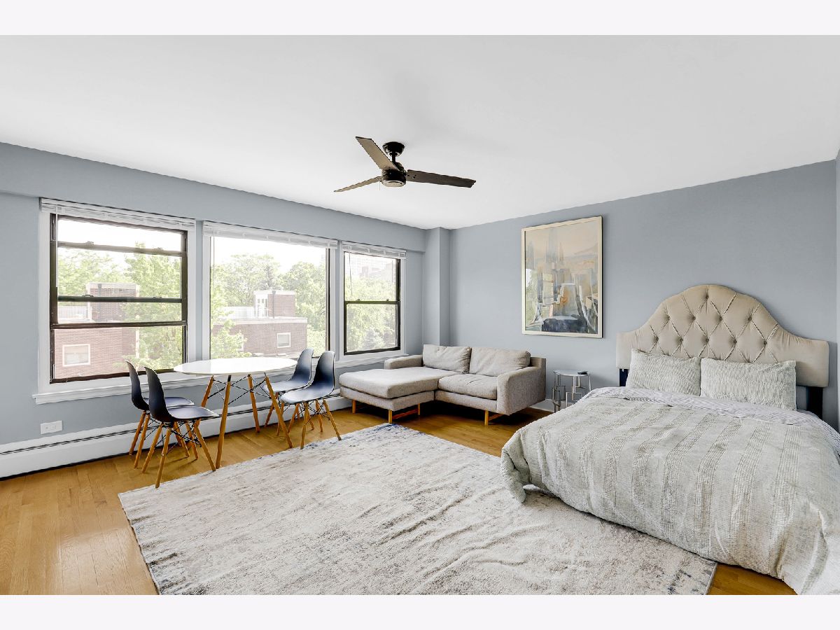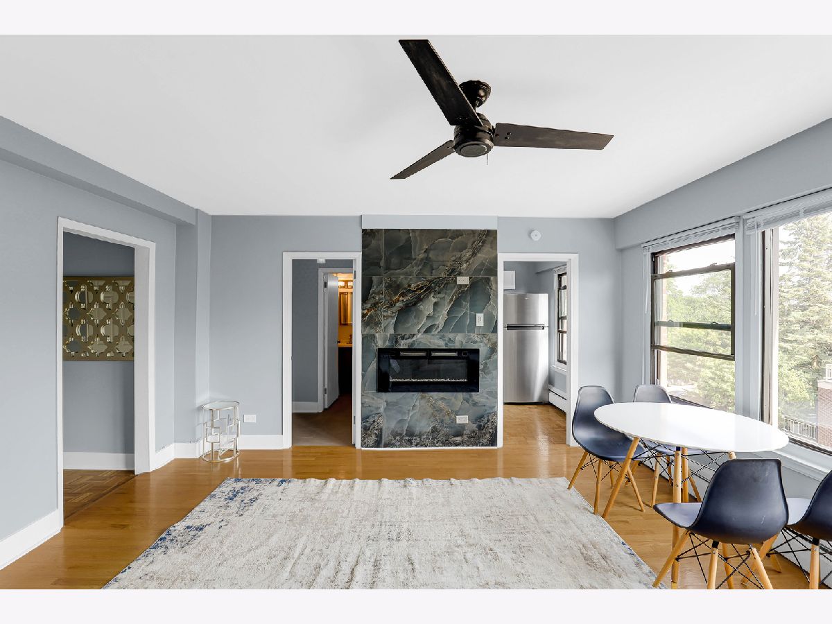 Welcome to this beautifully renovated studio condo steps from Lake Michigan in prime Uptown neighborhood! This unit perfectly blends modern comfort with functional living. Upon entry, you're greeted by a spacious coat closet, offering generous storage and an organized, welcome home. The expansive living area can accommodate a king-sized bed, a cozy couch, dining table, and a workspace-ideal for both relaxing and entertaining. Rich hardwood floors, a wall-mounted electric fireplace, and a spot above for a TV mount create a warm and inviting ambiance. Off the main living space, a versatile bonus room awaits-complete with a large linen closet, bench seating, and new floor tiles-leading into a fully updated bathroom. Enjoy sleek upgrades including a brand-new toilet, vanity, mirror, shower, and tile flooring. The kitchen features brand-new quartz counters, stylish backsplash, all-new cabinets, and stainless steel appliances. This unit is move-in ready with all the right upgrades. Walking distance from parks, public transportation, and Lake Michigan. Don't miss the opportunity to own this thoughtfully updated gem!
