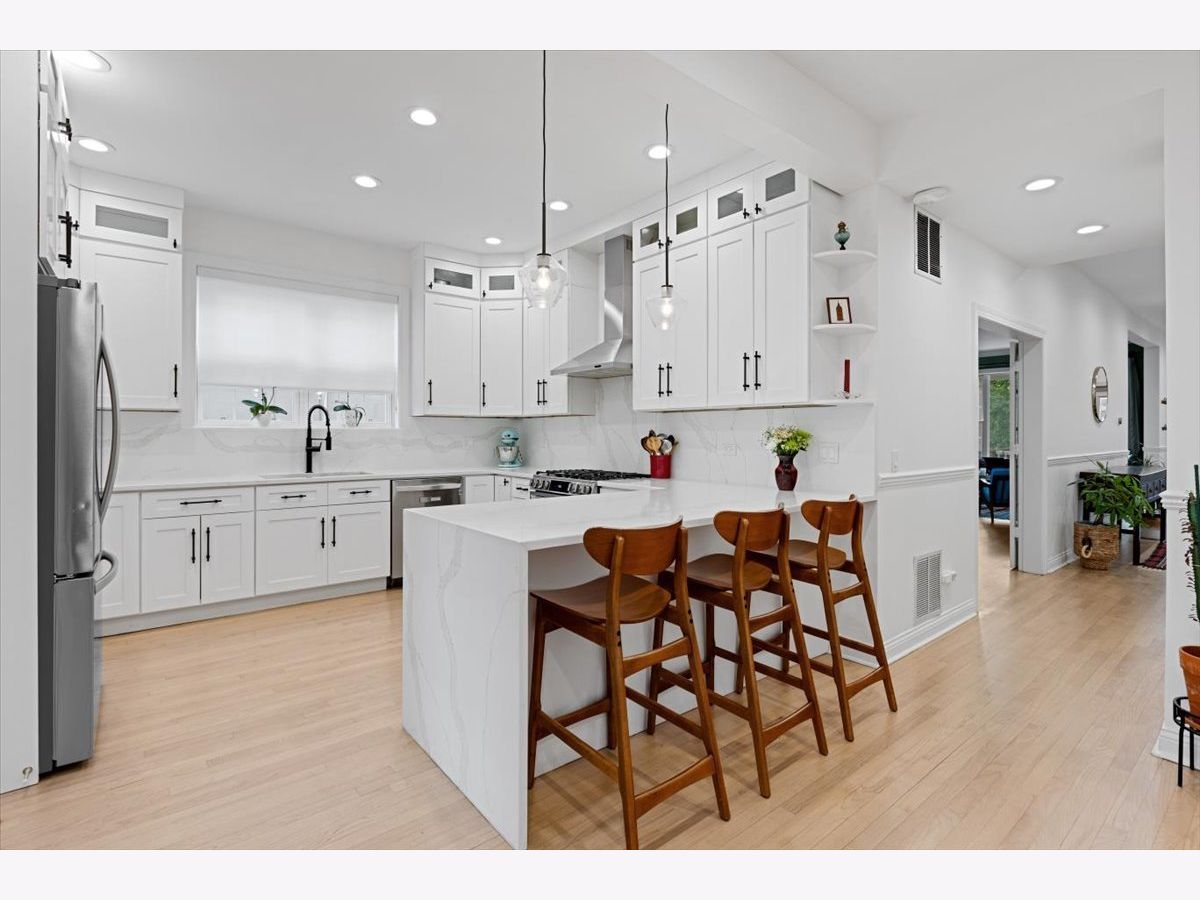 Introducing a rare Ravenswood masterpiece: a 4-bedroom, 4.5-bath luxury single-family home on one of the neighborhood's most beautiful, tree-canopied blocks. Set on an extra-wide 33x165 ft lot, this residence delivers the perfect blend of timeless architecture, elevated finishes, and sophisticated modern living-all in one of Chicago's most walkable, character-rich communities. This home was nearly gut rehabbed before the current sellers purchased in January of 2024. Step inside and you can feel the quality of the workmanship. Sunlight pours through oversized windows into the spacious living and dining rooms. In this expansive but cozy space, admire the elegant gas fireplace, lovely molding, pretty lighting, and soaring ceilings. The stylish powder room and large entry hall add to the elegance. The heart of the home is the huge chef's kitchen-an entertainer's dream, featuring premium stainless-steel appliances, quartz counters, custom cabinetry, and a generously-sized peninsula. Just outside the kitchen door is a large back deck overlooking the lush, landscaped backyard with its distinctive pergola and wide 2.5-car garage. Upstairs on the second level, you'll find three good-sized bedrooms and two beautifully renovated full baths, along with a convenient upper-floor laundry room to ease everyday living. Occupying the entire 3rd floor, you'll discover a serene primary suite with a spa-inspired bath, walk-in shower, double vanity, and walk-in closets, with a front balcony and lovely rear deck providing privacy and tranquility. Downstairs, the huge, fully finished lower level with another full bath offers incredible versatility as a recreation room, guest suite, office, or fitness space. There is also abundant storage. This home has been meticulously improved inside and out. Inside, you'll find upgraded mechanicals, new custom closets throughout, and wired high-speed internet routers on every floor. Outside, note the refreshed exterior, totally fenced in back yard (great for dogs), and a professionally landscaped native "pollinator garden" in the front yard that attracts many butterflies and bees much to the delight of neighbors. Set in the heart of Ravenswood, you're just moments from beloved parks, restaurants, boutique shops, Mariano's, LA Fitness, the Metra, the Brown Line, and the vibrant energy of Andersonville, Lincoln Square, and Southport Corridor. 4889 N Hermitage is a refined, move-in-ready home in one of Chicago's premier residential enclaves.