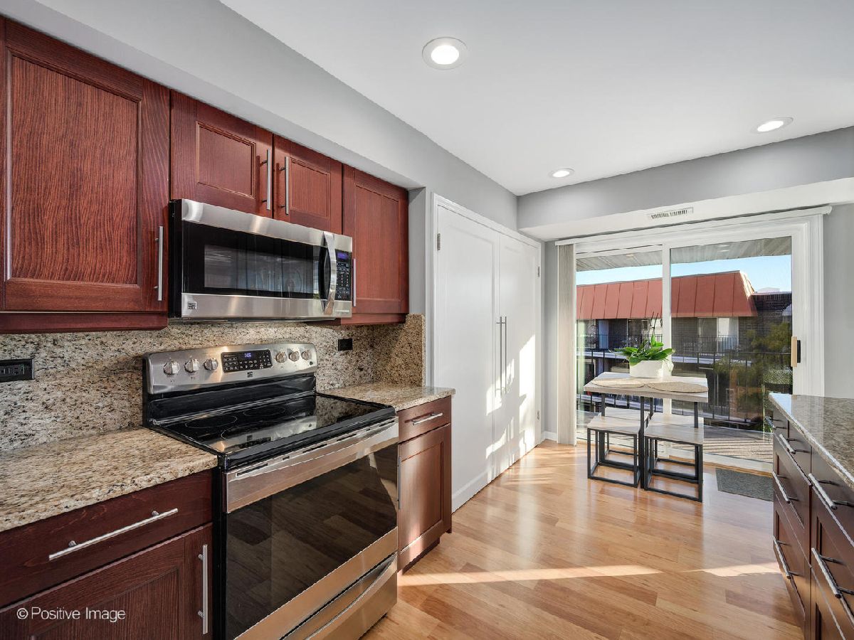 Absolutely stunning, all remodeled, 2 bedroom and 2 full bathroom top floor condo at The Barcelona in Skokie with almost 1600 square feet of living space. Stunning kitchen with solid wood, Cherry Cabinetry blended with granite countertops, stainless steel appliances, breakfast area and sliding doors to your balcony overlooking the gorgeous courtyard. Sun-drenched, large living room with balcony overlooking the courtyard. Perfectly positioned dining room. Master suite with beautiful ensuite bathroom and huge walk-in closet with custom california closet shelving. Large guest Bedroom and beautiful guest bathroom. Laundry room. Gleaming hardwood floors throughout. New HVAC system (furnace and AC). Building has party room, outdoor pool, storage locker and more. Situated just moments from Westfield Old Orchard Mall's 150+ luxury retailers and fine dining, with the extensive Skokie Park District and convenient CTA Yellow Line access to downtown Chicago just a short distance away. Minutes from major expressways. Experience the perfect blend of comfort, style, and convenience at 4901 Golf Road - your new home awaits.