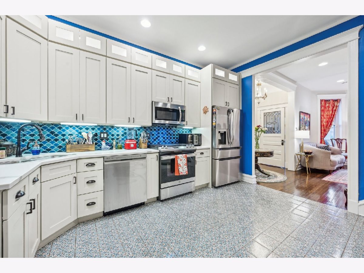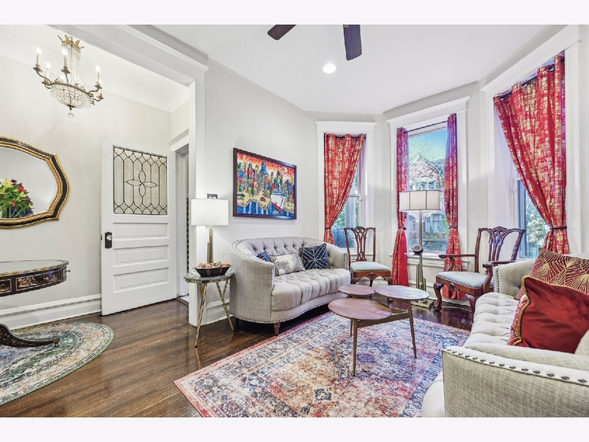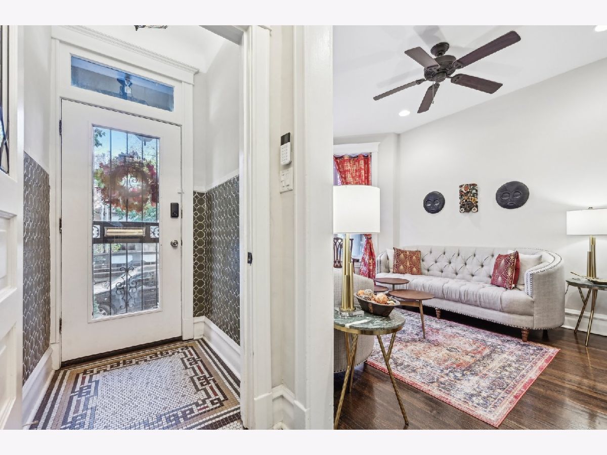 Completely rehabbed in 2018, this stunning 4-bedroom, 3.5-bath Greystone beautifully blends classic Chicago architecture with thoughtful modern updates. Rich original woodwork and early 1900s character remain intact while stylish upgrades throughout create a comfortable, move-in-ready home. The main level offers an inviting layout with a spacious living room, formal dining room with a convenient dry bar, an updated kitchen (2021) with modern finishes, and a cozy family room perfect for everyday living and entertaining. Upstairs, you'll find three bright, generously sized bedrooms and two full bathrooms, including a beautifully refreshed primary en-suite completed in 2022. The finished basement expands the living space with a fourth bedroom, full bathroom, and a large recreation area ideal for entertaining, relaxing, or hosting guests. Outside, enjoy the rear deck added in 2022, perfect for summer gatherings, along with a secure parking pad featuring an automated electric gate that accommodates a mid-size car or SUV. Situated on the charming, landmarked Washington Park Court block, this home offers close proximity to parks, schools, and convenient access to I-90. A rare combination of historic charm, modern updates, and a fantastic location!
