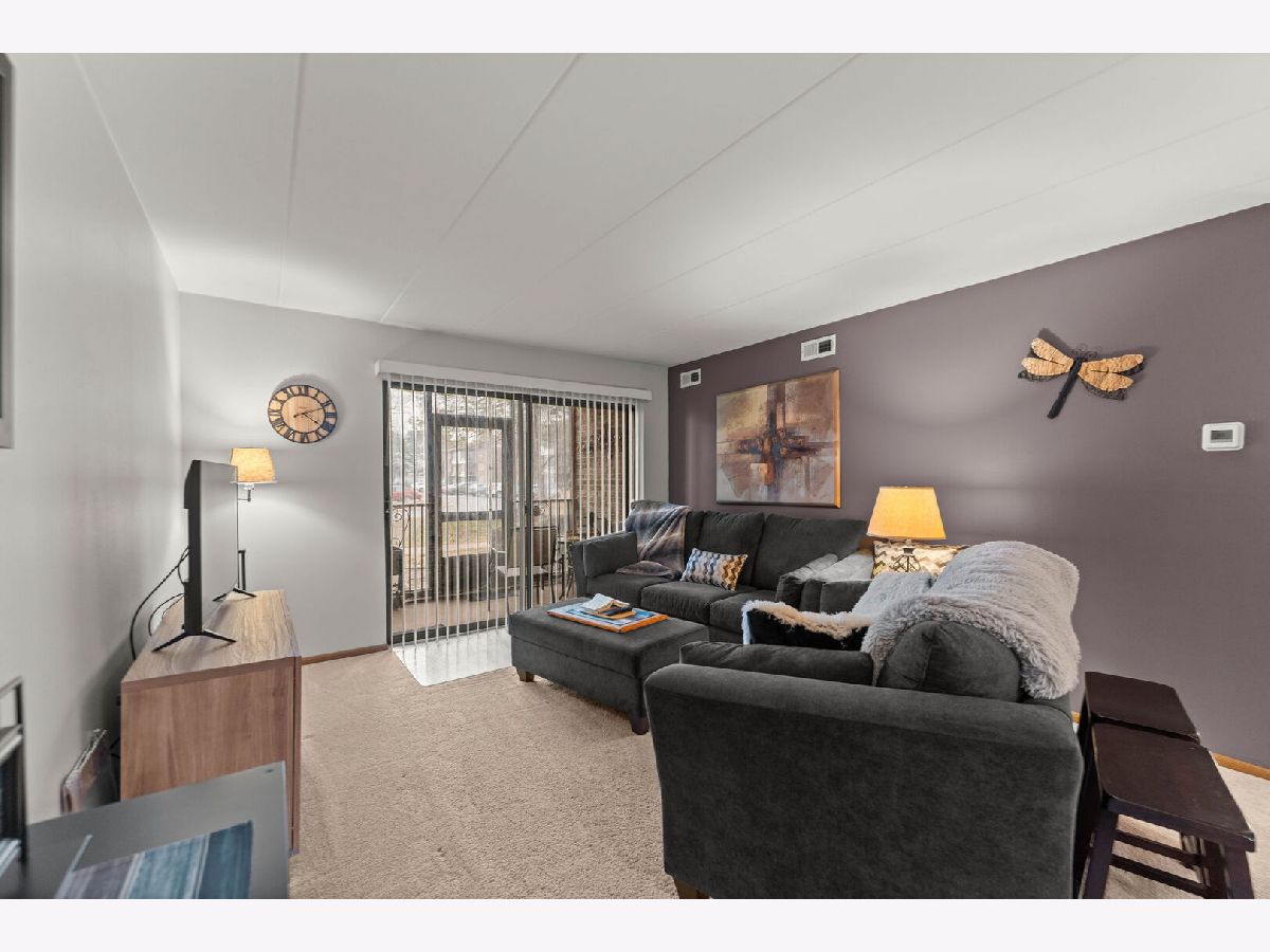 Beautiful 1st-floor condo featuring 2 bedrooms, 2 bathrooms, and a 1-car garage, plus an additional assigned parking space number 17. This clean, well-maintained home is truly move-in ready with fresh paint, a new furnace, and new stainless-steel refrigerator and range. The spacious primary bedroom includes a walk-in closet and private bath with a vanity and dressing area. A second full bathroom in the hall is perfect for guests or the second bedroom. Enjoy relaxing on the screened-in porch overlooking the beautifully manicured lawn, complete with a convenient storage closet. Additional highlights include in-unit laundry, Flexicore ceilings for added peace and quiet, and an owner-occupied building with no rentals allowed. 2 PIN numbers. Furnace is 2 Years old, Appliances 3 years old, Washer/Dryer 1 year old. Ideally located close to shopping, dining, and everyday conveniences, yet set within a quiet, well-maintained community. A wonderful opportunity for comfortable and convenient living!