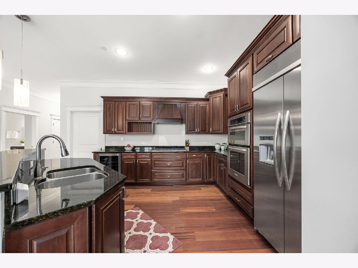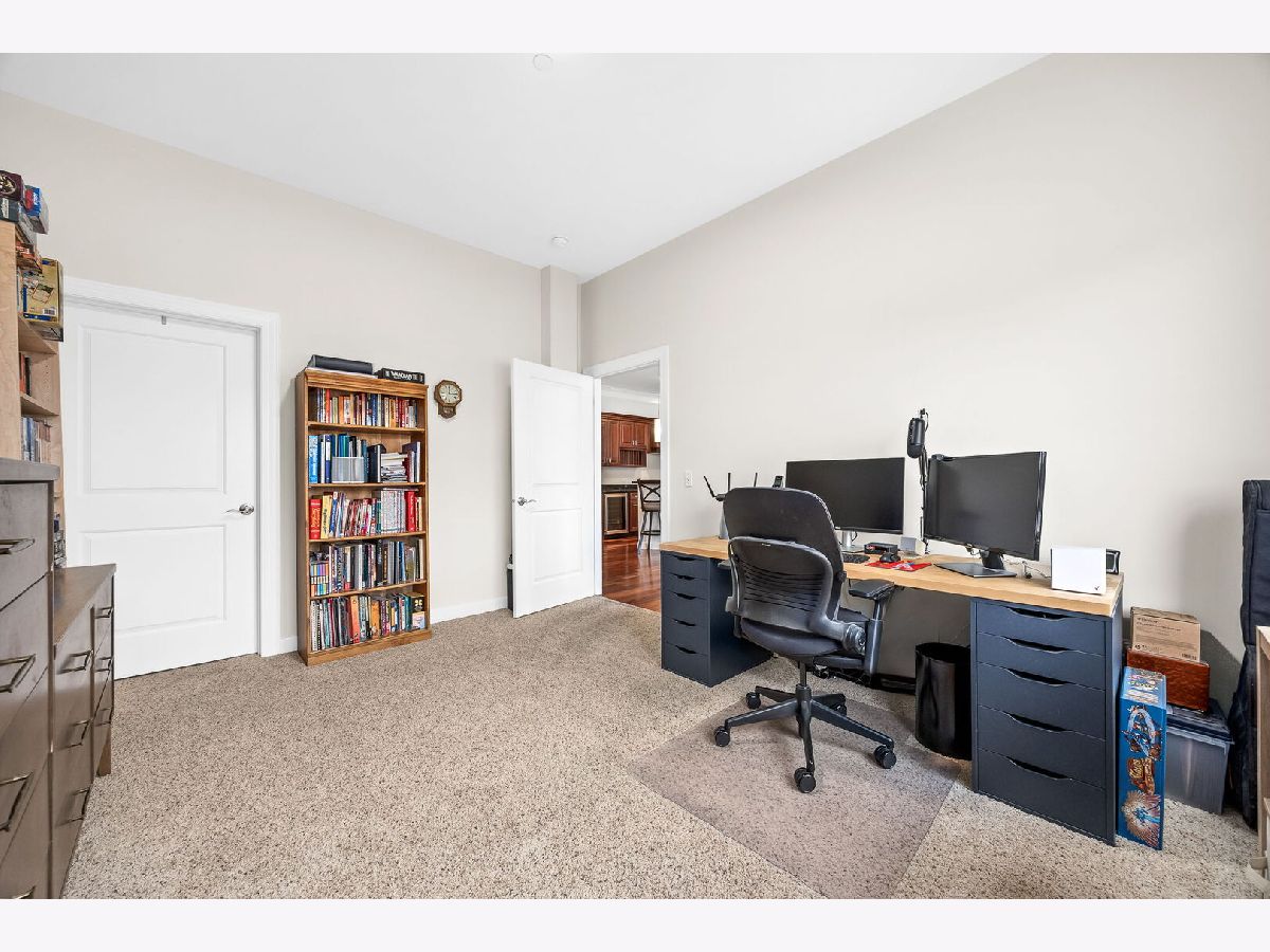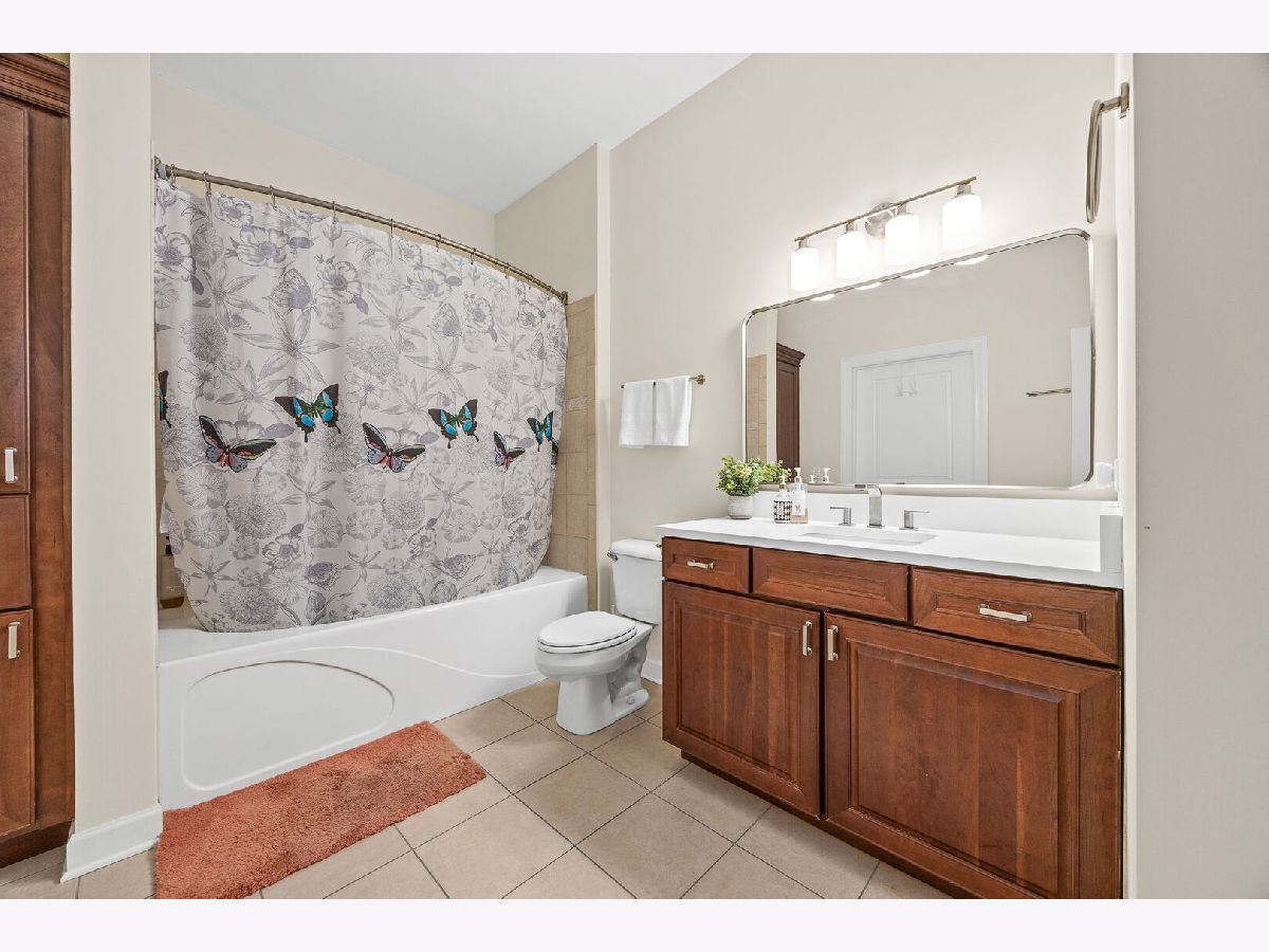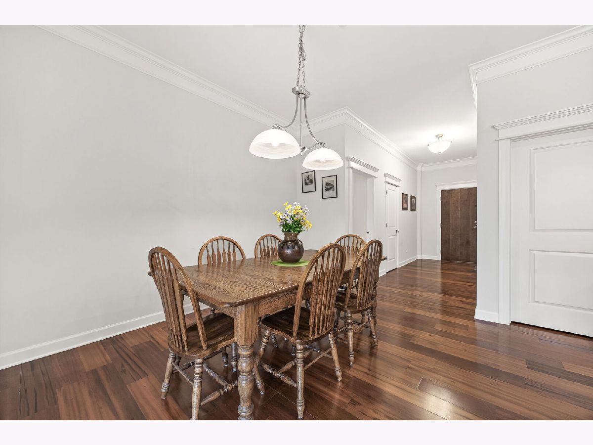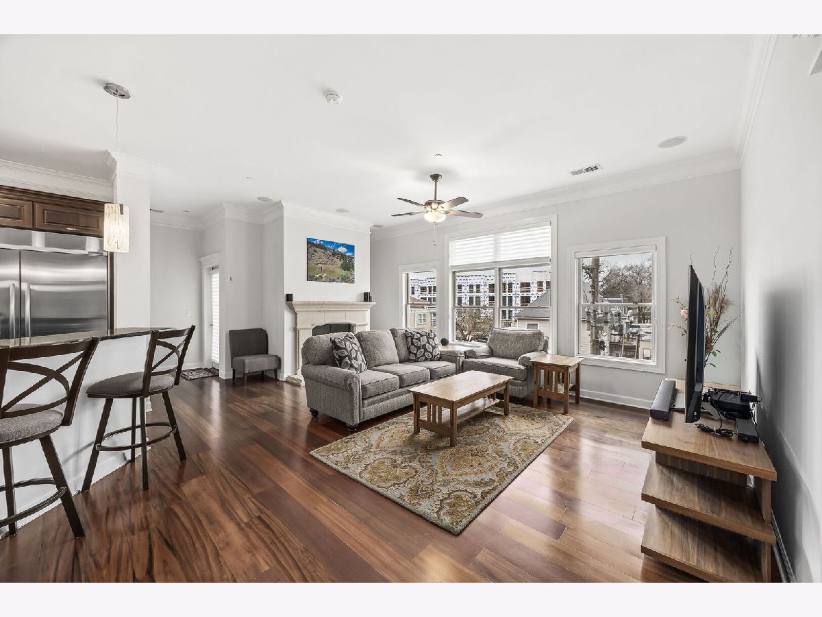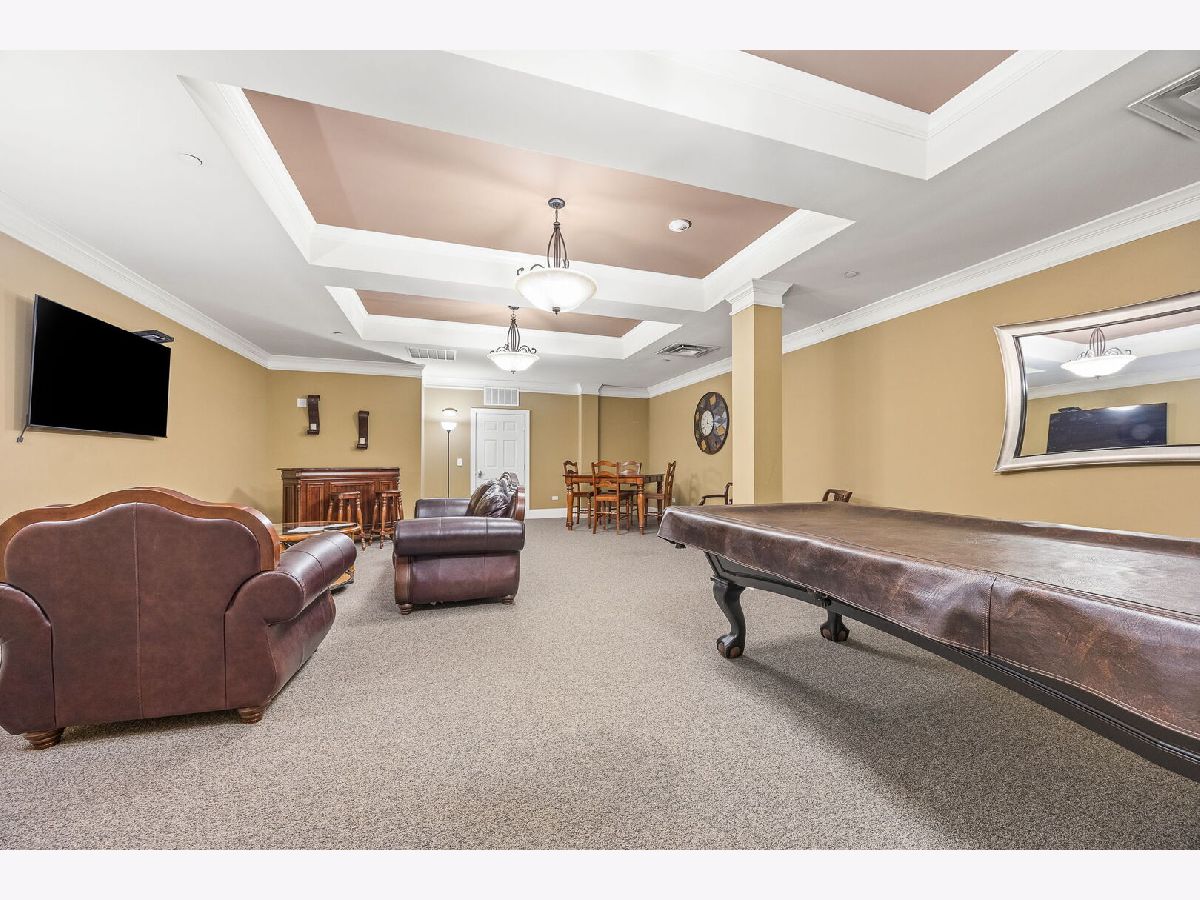 Sophisticated and spacious 2-bedroom, 2-bathroom condo offers refined city-style living in the heart of Downers Grove. Within the generous 1,890 sq ft open floor plan, soaring 10-foot ceilings and Brazilian Cherry wood laminate flooring (main living areas) set an elevated tone from the moment you enter. Gourmet kitchen impresses with stainless steel appliances-including a wine fridge-granite countertops, custom cabinetry, a center island with breakfast bar, and a large walk-in pantry. Living area features a cozy gas fireplace with impressive mantel and oversized windows that flood the space with natural light. Expansive primary suite serves as a true retreat, offering space for a reading nook or desk, and newly remodeled en-suite bathroom showcasing double vanities, a walk-in shower with dual shower heads, custom tile and glasswork and a bench seat, plus an oversized custom walk-in closet with laminate organizers. Second bedroom includes private access to a hall bathroom (tastefully updated in 2025 with a new countertop, mirror, and lighting) and features a versatile tandem room ideal for an additional walk-in closet, home office, or hobby space. Premium finishes elevate the home, including oversized crown molding, Pella windows, and an integrated surround sound system with built-in speakers. East-facing balcony provides peaceful morning light and a relaxing outdoor escape. In-unit laundry and dedicated storage space located on the same floor as the unit add everyday convenience. Heated indoor parking plus an additional exterior parking space are included. Building amenities enrich daily living with a putting green, fitness room, lounge with game area, and meeting rooms on each floor. Prime location just one block from the Metra station and vibrant downtown Downers Grove-home to the historic Tivoli Theatre, restaurants, cafes, and boutique shopping along Main Street. Schedule your showing today and experience the elevated lifestyle this home offers.