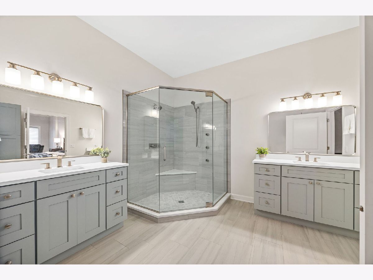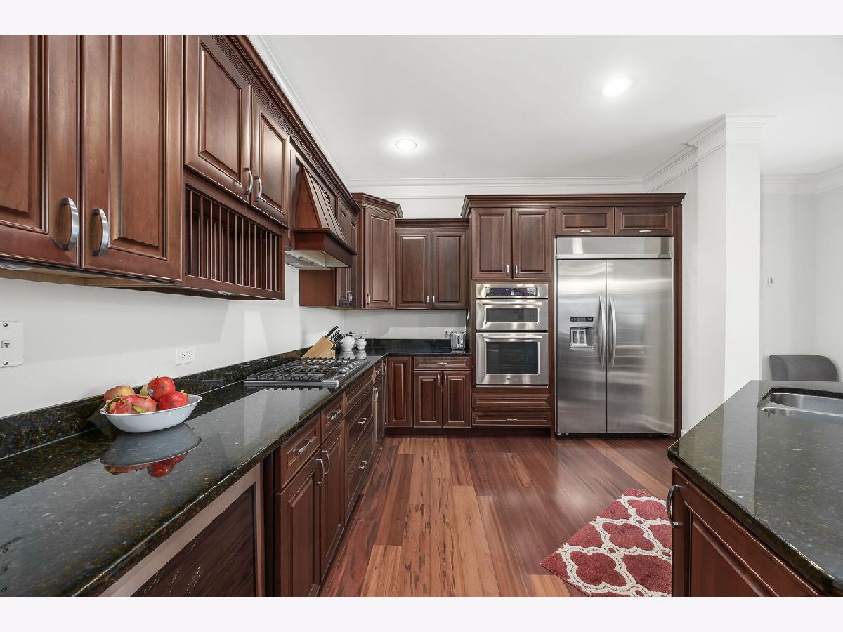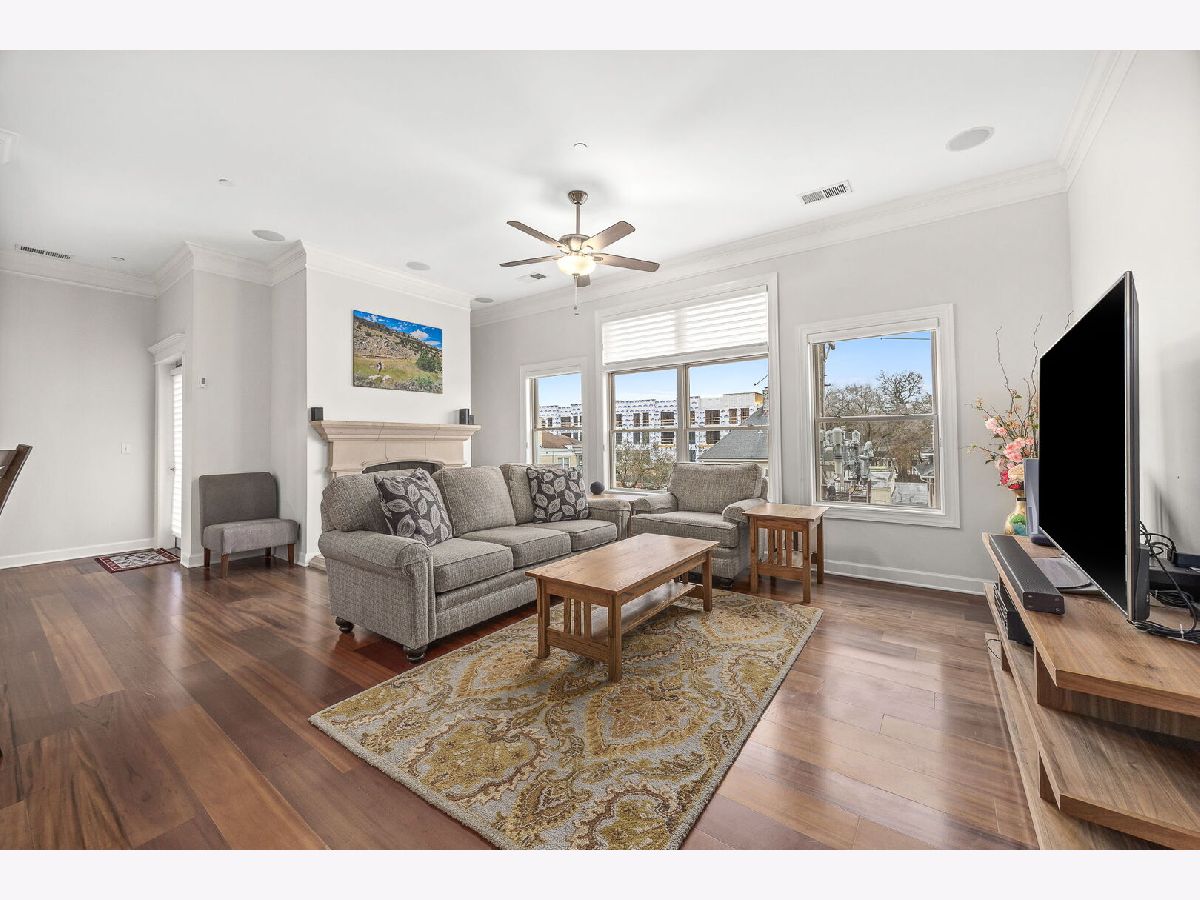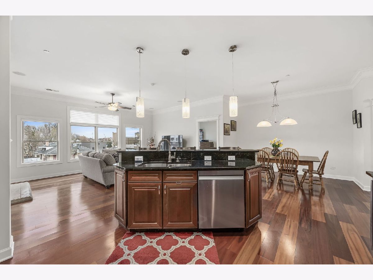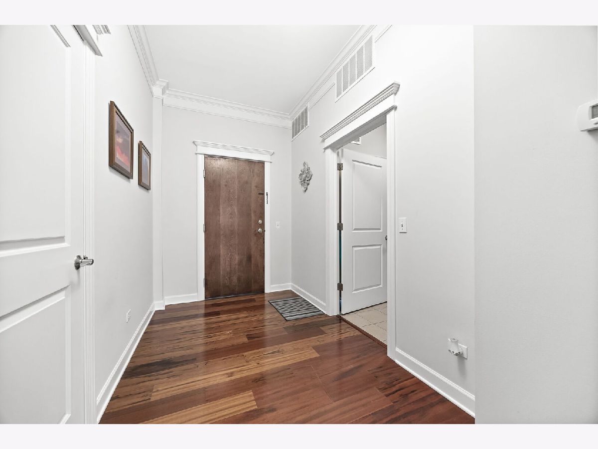 Sophisticated and spacious 2-bedroom, 2-bathroom condo offers refined city-style living in the heart of Downers Grove. Within the generous 1,890 sq ft open floor plan, soaring 10-foot ceilings and Brazilian Cherry wood laminate flooring (main living areas) set an elevated tone from the moment you enter. Gourmet kitchen impresses with stainless steel appliances-including a wine fridge-granite countertops, custom cabinetry, a center island with breakfast bar, and a large walk-in pantry. Living area features a cozy gas fireplace with impressive mantel and oversized windows that flood the space with natural light. Expansive primary suite serves as a true retreat, offering space for a reading nook or desk, and newly remodeled en-suite bathroom showcasing double vanities, a walk-in shower with dual shower heads, custom tile and glasswork and a bench seat, plus an oversized custom walk-in closet with laminate organizers. Second bedroom includes private access to a hall bathroom (tastefully updated in 2025 with a new countertop, mirror, and lighting) and features a versatile tandem room ideal for an additional walk-in closet, home office, or hobby space. Premium finishes elevate the home, including oversized crown molding, Pella windows, and an integrated surround sound system with built-in speakers. East-facing balcony provides peaceful morning light and a relaxing outdoor escape. In-unit laundry and dedicated storage space located on the same floor as the unit add everyday convenience. Heated indoor parking plus an additional exterior parking space are included. Building amenities enrich daily living with a putting green, fitness room, lounge with game area, and meeting rooms on each floor. Prime location just one block from the Metra station and vibrant downtown Downers Grove-home to the historic Tivoli Theatre, restaurants, cafes, and boutique shopping along Main Street. Schedule your showing today and experience the elevated lifestyle this home offers.