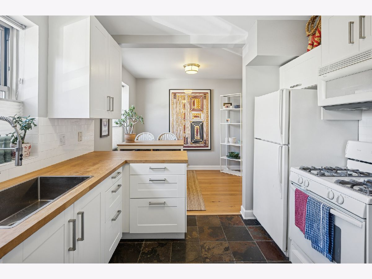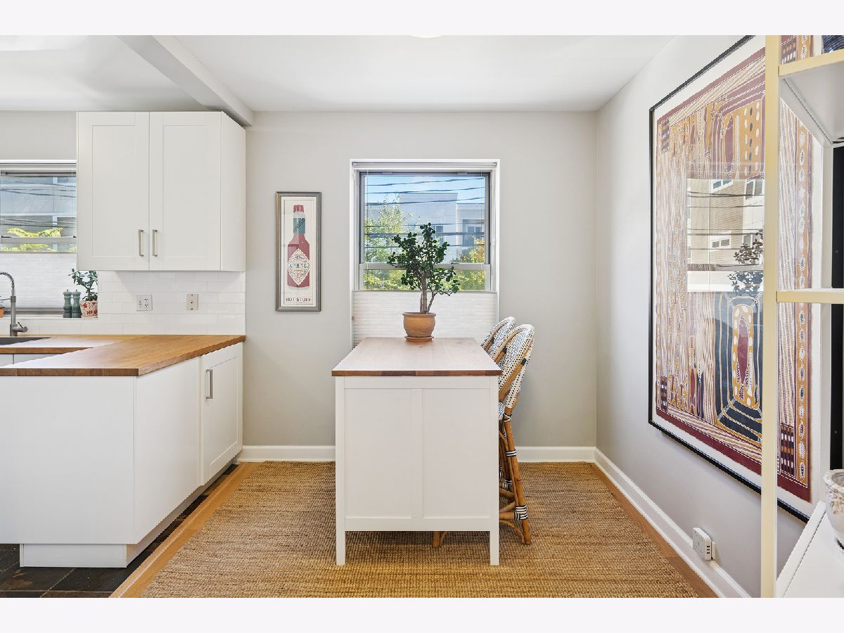 Welcome to Wolcott Village - a peaceful community in the heart of Ravenswood. This beautifully updated 2-bedroom, 1-bath condo offers comfort, charm, and convenience. Upgraded flooring and subflooring ensure a solid, quiet feel underfoot - no creaks or noise as you walk. A refreshed kitchen showcases updated cabinetry, butcher block countertops, a deep sink, and thoughtful storage additions. The bathroom has also been updated with a new toilet, vanity, sink, tile, and lighting for a crisp, refreshed finish. You'll appreciate the layout with two nicely sized bedrooms and separate living and dining areas that make the space feel open yet functional. Add in-unit laundry, central HVAC, and an extra storage unit for effortless living. Enjoy peace of mind with a professionally managed and well-maintained association. Wolcott Village residents love the two expansive outdoor areas - perfect for movie nights and lounging with friends. Current owner rents a garage parking spot less than two blocks away that is transferrable to the new owner along with easy street parking (free and permit) available. This unbeatable location just moments from restaurants, grocers, gyms, parks, shopping, the Ravenswood Metra, and the Brown Line make this home an exceptional find in one of Chicago's most charming neighborhoods.