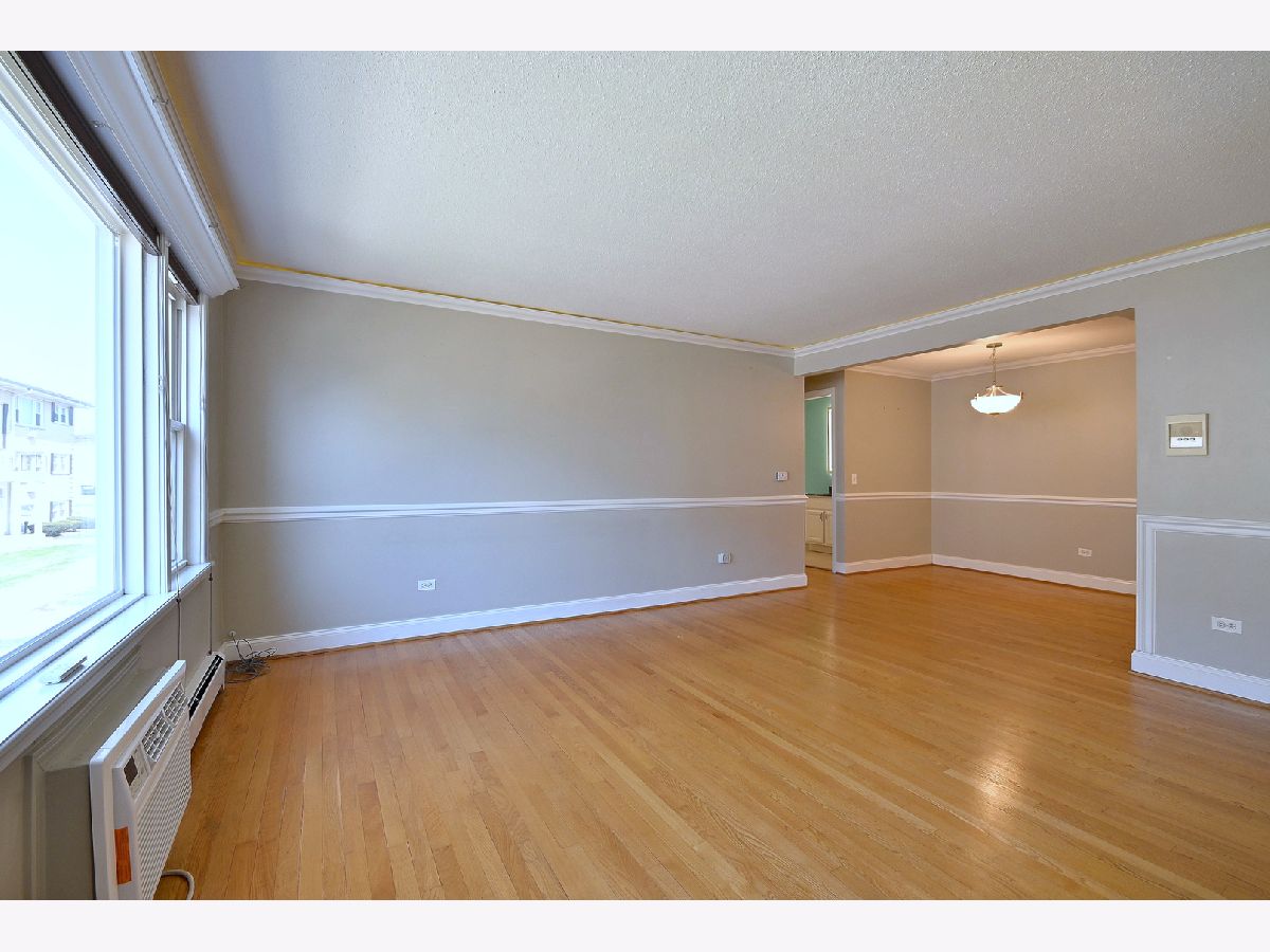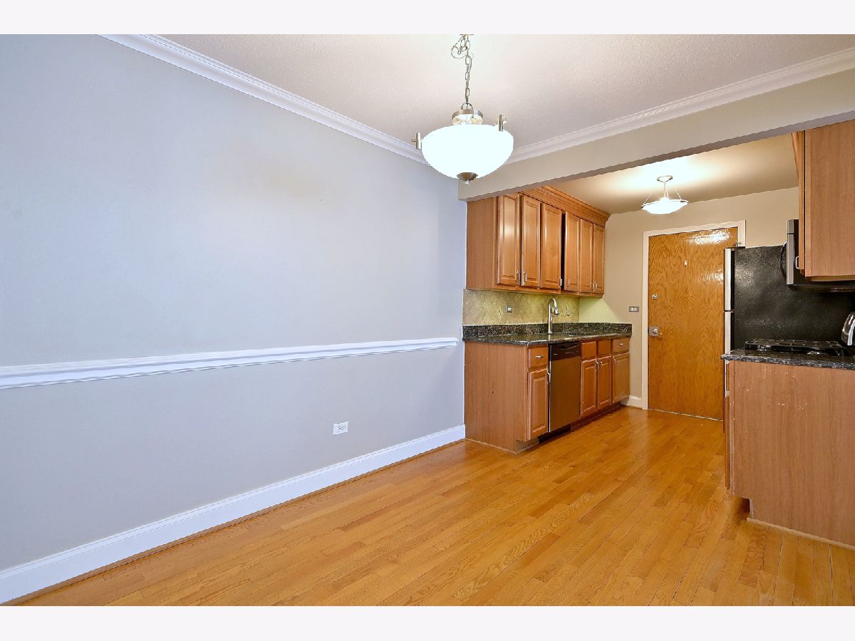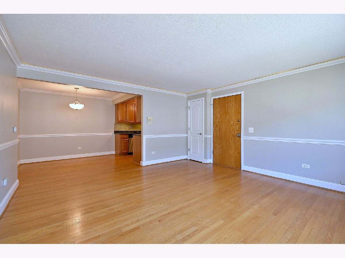 Updated and well-maintained 2nd-floor condo offering comfort and convenience. This 1-bedroom, 1-bath unit features hardwood floors throughout and a large, bright living room that flows seamlessly into a separate dining area-perfect for everyday living and entertaining. The updated kitchen is equipped with granite countertops and stainless steel appliances. The spacious bedroom includes a walk-in closet with custom organizers, while the updated bathroom offers ample storage. Additional features include access to a common area laundry room, a private storage closet, and unassigned parking. Ideally located near shopping, dining, public transportation, expressways, O'Hare Airport, and nearby forest preserves, this home combines modern updates with a highly convenient location.