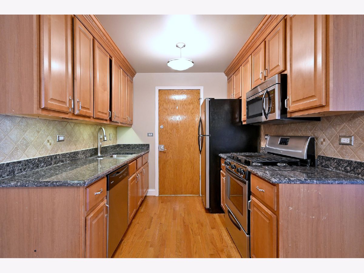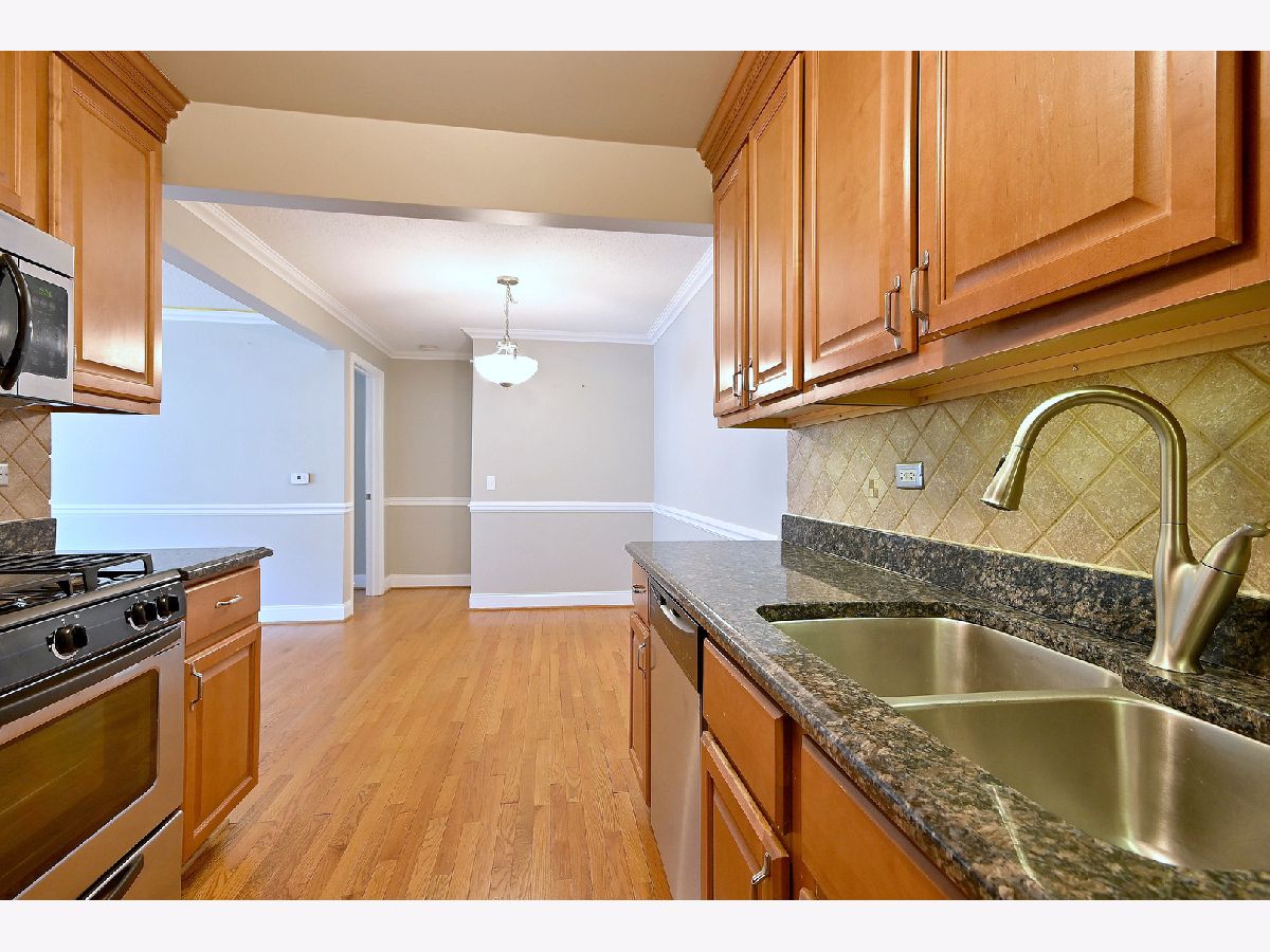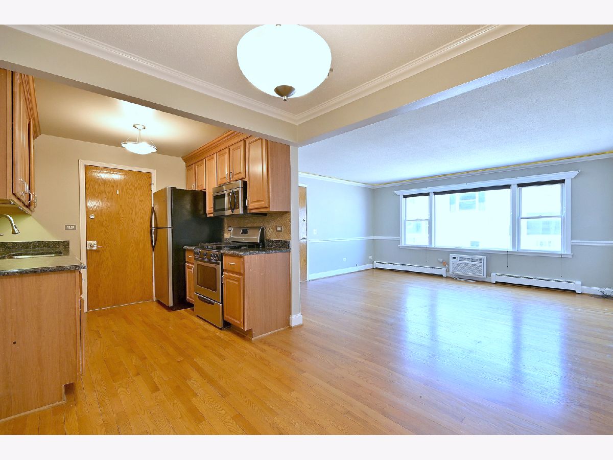 Updated and well-maintained 2nd-floor condo offering comfort and convenience. This 1-bedroom, 1-bath unit features hardwood floors throughout and a large, bright living room that flows seamlessly into a separate dining area-perfect for everyday living and entertaining. The updated kitchen is equipped with granite countertops and stainless steel appliances. The spacious bedroom includes a walk-in closet with custom organizers, while the updated bathroom offers ample storage. Additional features include access to a common area laundry room, a private storage closet, and unassigned parking. Ideally located near shopping, dining, public transportation, expressways, O'Hare Airport, and nearby forest preserves, this home combines modern updates with a highly convenient location.
