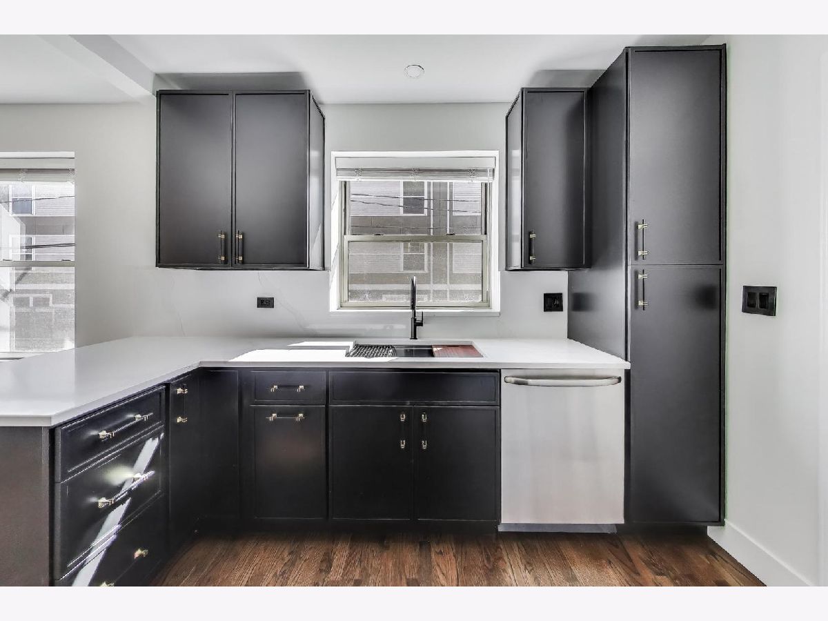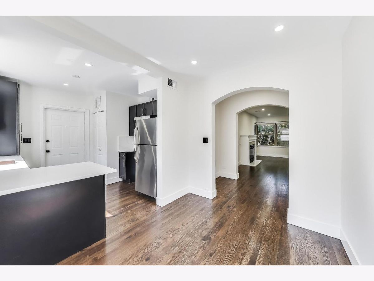 Welcome to this exceptional one-bedroom residence, perfectly designed for comfort and style, and now offering unmatched peace of mind. Perched on a high first floor and set back from the street, it offers a serene, park-like setting that feels worlds away from the city. Step inside to discover a spacious layout filled with character-graceful archways, rich hardwood floors, and thoughtful architectural details. The inviting living room centers around a cozy gas fireplace, while a separate dining area provides the ideal space for entertaining. The newly renovated kitchen is a true highlight, featuring generous space, sleek stainless steel appliances, and contemporary finishes. The luxurious, spa-inspired bathroom adds another touch of sophistication, designed for ultimate relaxation. Modern comfort is ensured with central air and an in-unit washer and dryer. Best of all, this unit comes with an applies home warranty for major systems and appliances, and includes two substantial storage units in the building. Enjoy the ultimate convenience of on-site parking available for $160 per month. Conveniently located near the Brown Line, Metra, boutique shops, and acclaimed restaurants, this home blends tranquility with easy access to all the best the neighborhood has to offer.