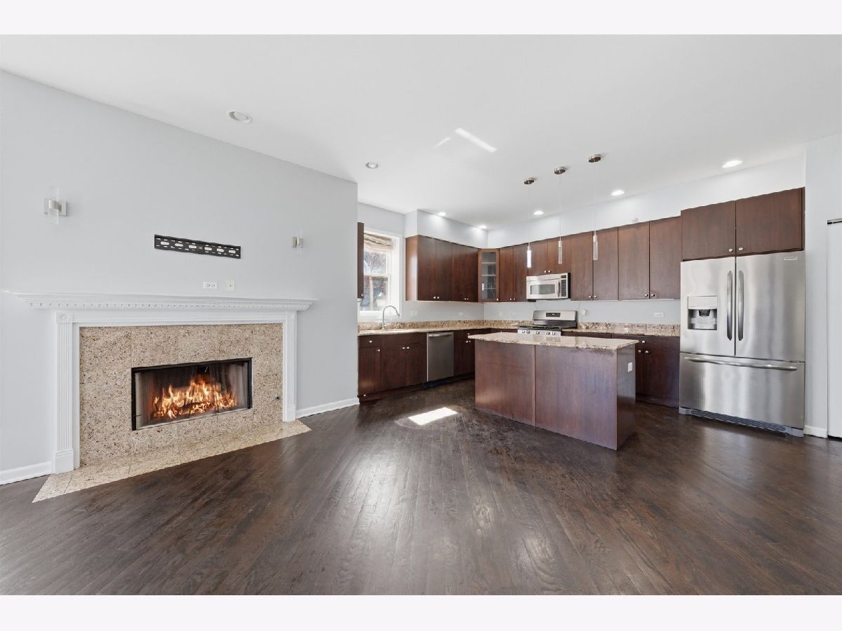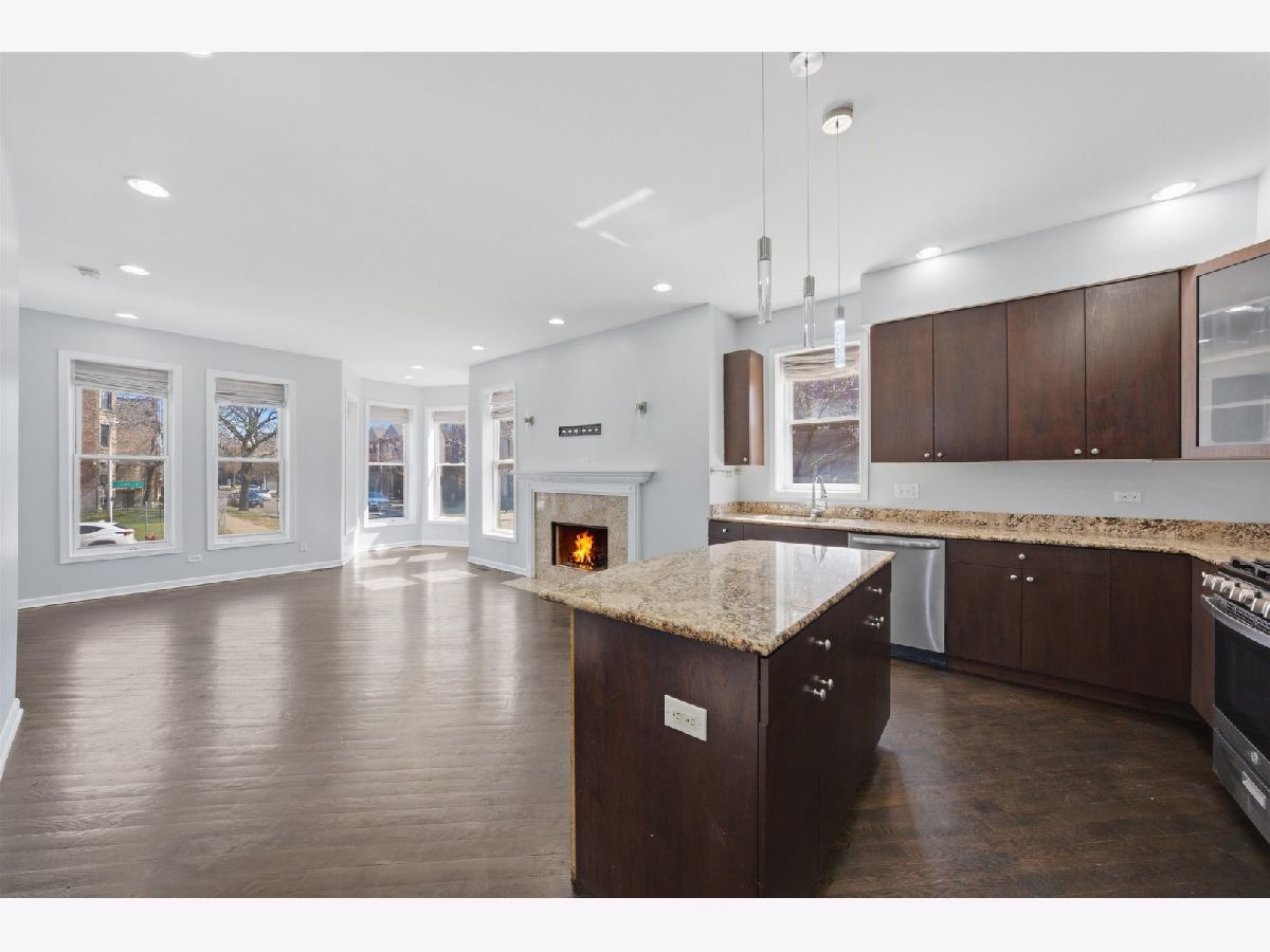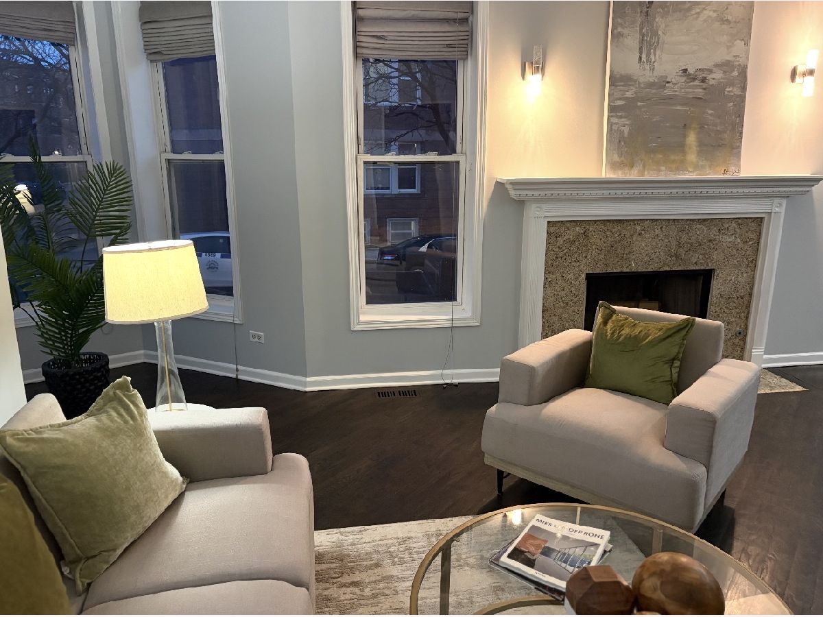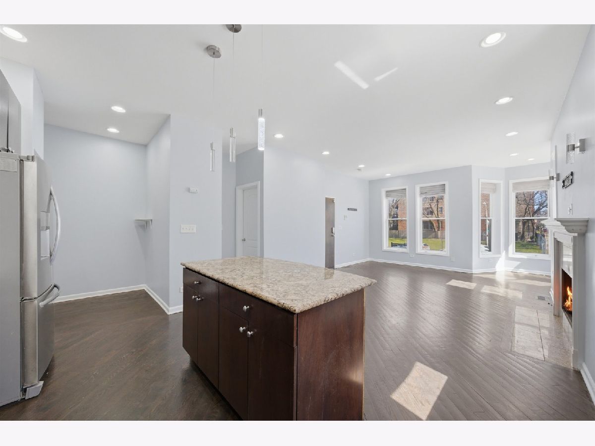 Welcome to this expansive 4-bedroom, 4-bathroom duplex located in the historic Bronzeville neighborhood of Chicago. The first floor features an open-concept layout with hardwood floors and recessed lighting throughout, complemented by large windows that fill the space with natural light and a cozy gas fireplace that anchors the living area. The chef's kitchen offers custom cabinetry, granite countertops, stainless steel appliances, and a spacious island with additional seating, making it perfect for both everyday living and entertaining. The home includes two primary suites, each with a walk-in closet, while the owner's suite boasts a spa-like en-suite bath complete with a jetted soaking tub and dual vanities. The large lower level provides additional living space with a generous family room and a second fireplace. This freshly painted property also includes a one-car garage with plenty of street parking available. Conveniently located near Lake Michigan, as well as shops, restaurants, and public transportation, this home offers comfort, space, and easy access to everything the city has to offer.