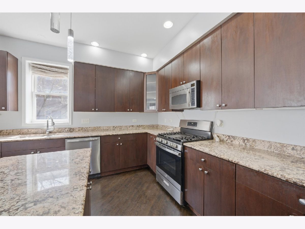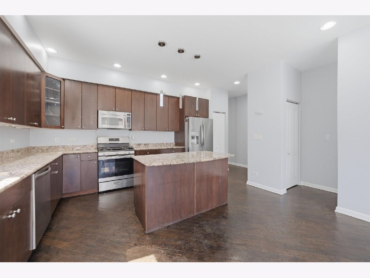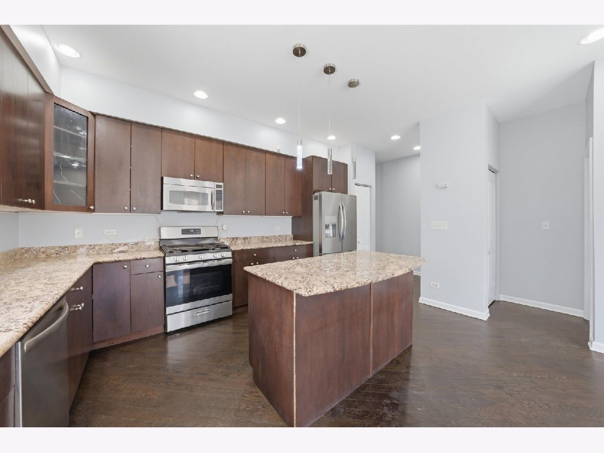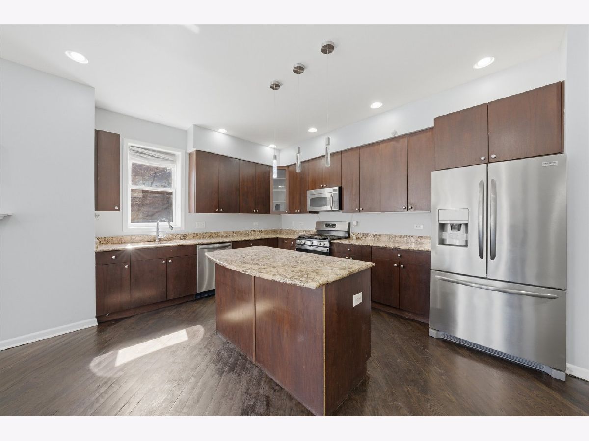 Welcome to this expansive 4-bedroom, 4-bathroom duplex located in the historic Bronzeville neighborhood of Chicago. The first floor features an open-concept layout with hardwood floors and recessed lighting throughout, complemented by large windows that fill the space with natural light and a cozy gas fireplace that anchors the living area. The chef's kitchen offers custom cabinetry, granite countertops, stainless steel appliances, and a spacious island with additional seating, making it perfect for both everyday living and entertaining. The home includes two primary suites, each with a walk-in closet, while the owner's suite boasts a spa-like en-suite bath complete with a jetted soaking tub and dual vanities. The large lower level provides additional living space with a generous family room and a second fireplace. This freshly painted property also includes a one-car garage with plenty of street parking available. Conveniently located near Lake Michigan, as well as shops, restaurants, and public transportation, this home offers comfort, space, and easy access to everything the city has to offer.