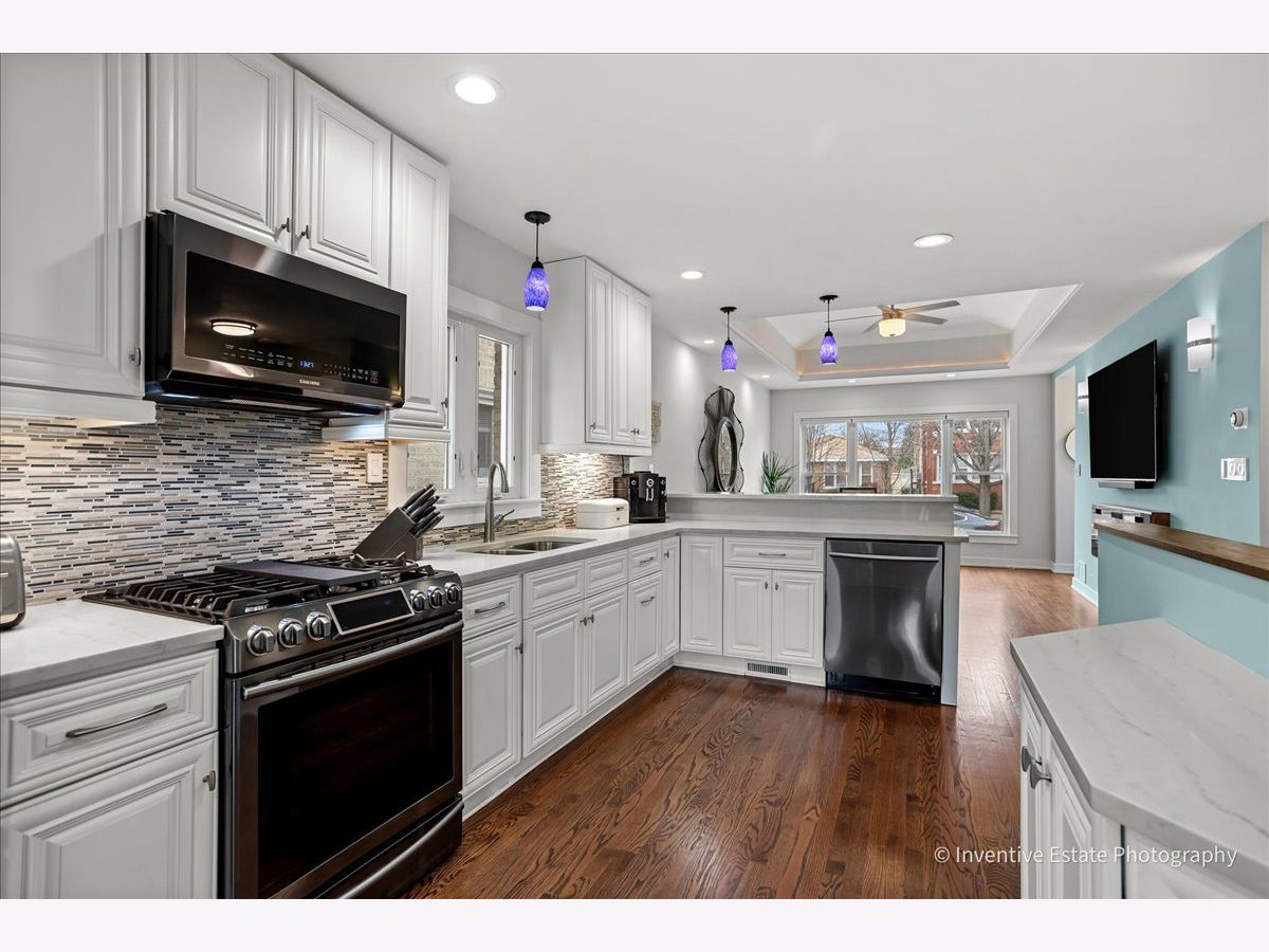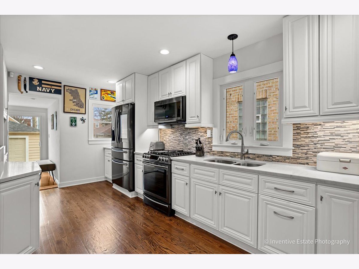 Totally renovated, high-end home in Chicago's desirable Jefferson Park neighborhood offering modern updates, thoughtful design, and convenient access to everything the northwest side has to offer. This beautifully maintained home underwent a complete gut renovation approximately seven years ago and features updated electrical, mechanicals, insulation, windows, and finishes throughout. The flexible layout is ideal for today's lifestyle and especially well suited for working from home with Ethernet wiring throughout the house for reliable connectivity. The inviting living space includes an electric fireplace and flows seamlessly into comfortable living and entertaining areas. The updated kitchen is a cook's dream designed for both everyday living and entertaining, featuring quality finishes, excellent workspace, and a convenient breakfast bar for casual dining and gathering. The home features two fully renovated bathrooms with electric radiant heated floors for added comfort. Major infrastructure improvements include a 2021 tear-off roof with 30-year architectural shingles, insulated walls and attic for improved energy efficiency, updated windows (approximately seven years), all new electrical with 100-amp service, and copper plumbing throughout. Mechanical upgrades include a tankless water heater, HVAC system with annual maintenance plan, and a new sump pump installed in 2024. Smart home features include Nest thermostat, Ring security system, and electronic door locks, all included. Exterior masonry improvements include tuckpointing completed approximately seven years ago, and a new front flower bed retaining wall installed in 2025. Additional exterior features include a flood control system located in the front yard (not currently active), plus gas lines serving both the outdoor grill and a fire table (fire table negotiable). The detached garage is a car lover's dream and an exceptional additional entertainment space for year-round enjoyment, renovated approximately 2.5 years ago and featuring a gas heater, polypropylene flooring, an additional overhead door opening to the rear yard, and negotiable audio/media components. The home also includes a practical mudroom closet with additional audio/media components negotiable. Long-time owner of seven years reports no water issues and no insurance claims during ownership other than the roof replacement. Exceptionally low property taxes just over $5K annually add to the value. Located in the highly sought-after Jefferson Park community with convenient access to parks, restaurants, shopping, public transportation, the Metra and CTA, and major expressways, making commuting and daily living easy.