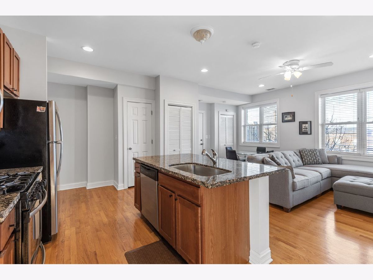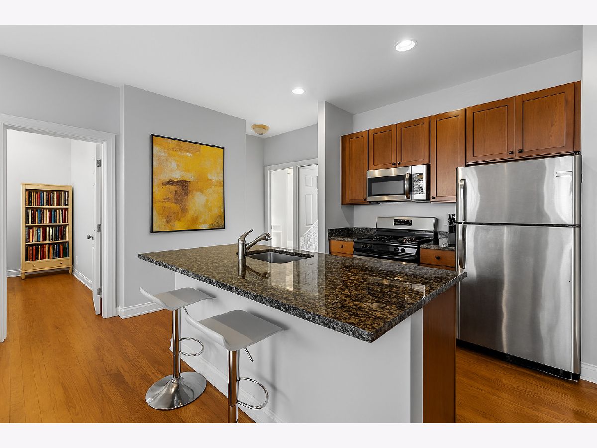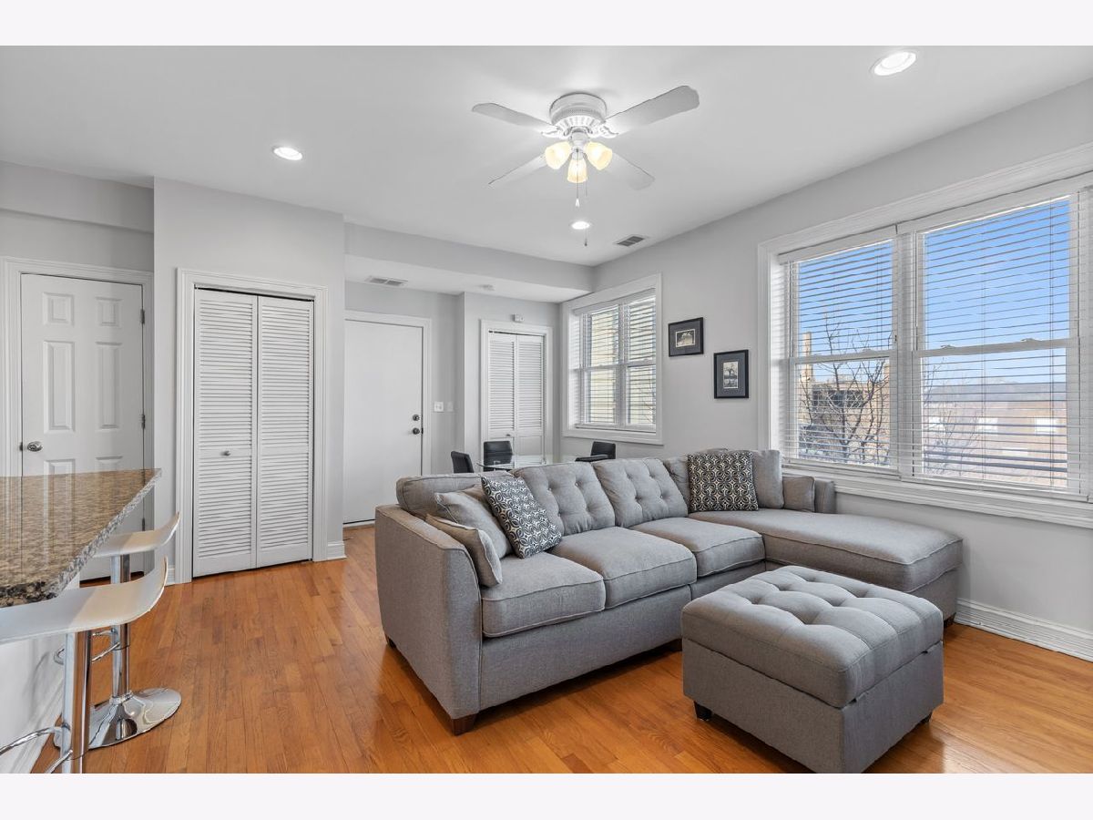 Welcome home to this sunfilled topfloor condo in the heart of Albany Park/ North Park where comfort meets style and neighborhood charm is part of everyday living. This spacious 2 bedroom, 2 bath layout offers an open floor plan with high ceilings and beautiful hardwood floors that flow throughout the entire home. The kitchen is designed for both cooking and connection, featuring granite counters, a generous island, cherry cabinets, and SS appliances. Both bedrooms are well-sized, and the primary suite provides the privacy and ease you've been looking for. Natural light pours into every corner, creating a bright, uplifting atmosphere all day long. Home features in-unit laundry, extra storage, and the Brown Line is just a few blocks away so commuting is easy. Unit is meticulously maintained, Move- In Ready and conveniently close to North Park University, neighborhood parks, and all the local spots that make this area feel so welcoming.