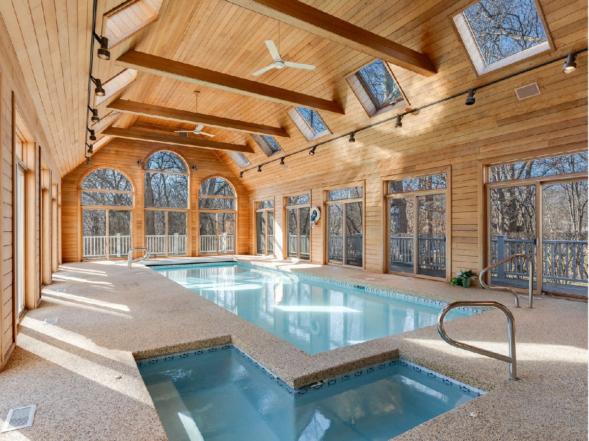 Incredible estate home on a lush & private 2 acre site: 100+ year old oaks offer shade & incredible views. This stately 10,000 sq. ft. residence is bright, open & expansive. The quality of construction is evident from your first steps inside the home: the Grand Foyer has 19' ceilings & features a curved staircase to the 2nd floor, intricate millwork & detailing at every turn. The spacious gourmet Kitchen (2024 full remodel): 42" white custom cabinetry, oversized island, quartz countertops & generously sized eating area with views of the wooded backyard. The Kitchen is open to the 2-Story Family Room with floor to ceiling windows, fireplace, and balcony overlook from the 2nd Floor. The executive office offers cherry raised panel wall treatments, oversized cherry crown mouldings, fireplace, as well as custom built-in bookcases & display cabinets. Enjoy the convenience of the 1st Floor Primary Bedroom Suite: incredible wooded views, volume ceilings, Dressing Room, and private bath with travertine tile floors, oversized shower & Kohler whirlpool tub. Enjoy entertaining options at home: the paneled Nanatorium is bright & open, with wet bar, sauna & bath/changing room (no 3 month pool season for you!!). 5 or 6 Bedrooms available for a larger family or those needing In-Law options, nanny quarters, or extended stay guests. Full, deep pour walkout lower level with full wet bar, 2nd Family Room, Game/Rec Room, Bedroom Suite, full bath, and generous storage space. Oversized 4-Car Garage with epoxy coated floors. Need even MORE space? (doubtful), but in case: HUGE walk-in attic (2nd Floor) - 44'x21' offers additional future living space or practical storage space. Want even MORE land? Contiguous 2 acre lot available for $350K. Too much to list: 59+ page eBrochure.