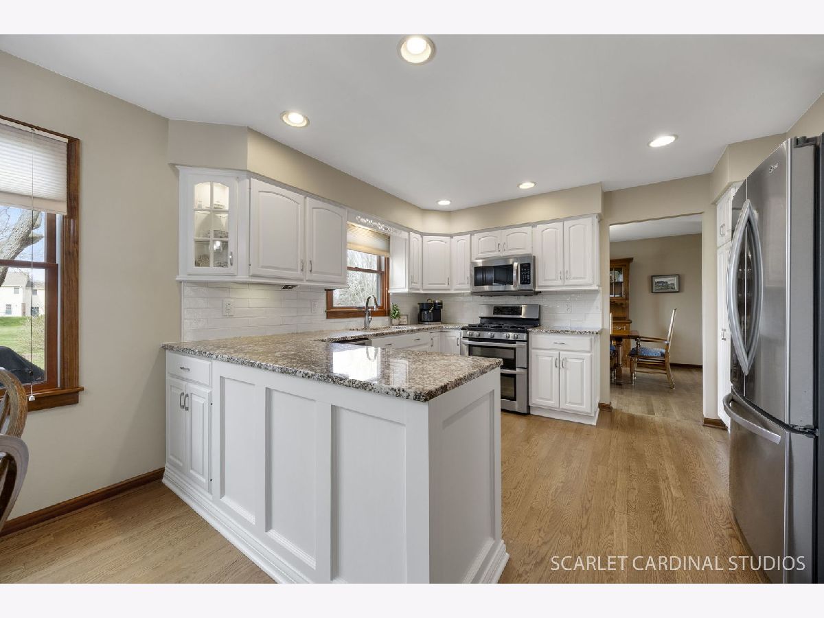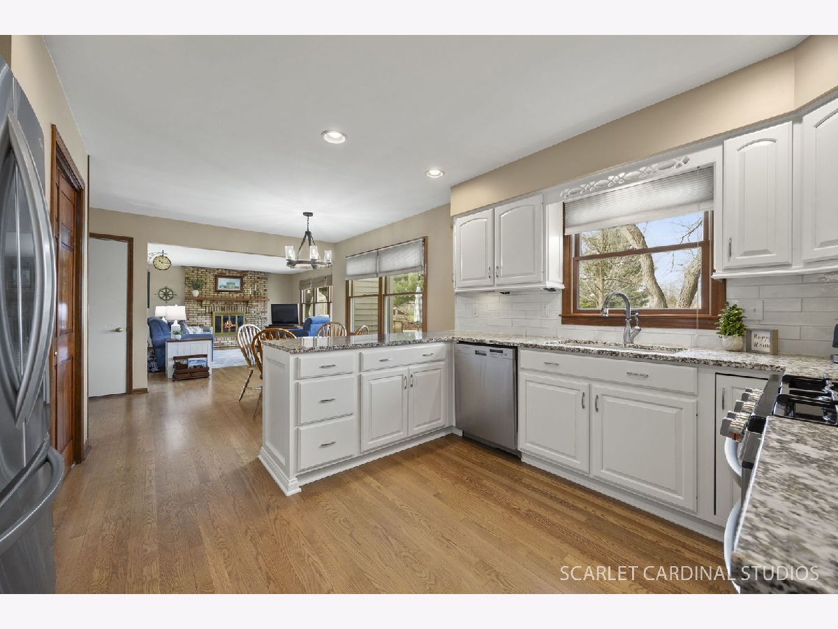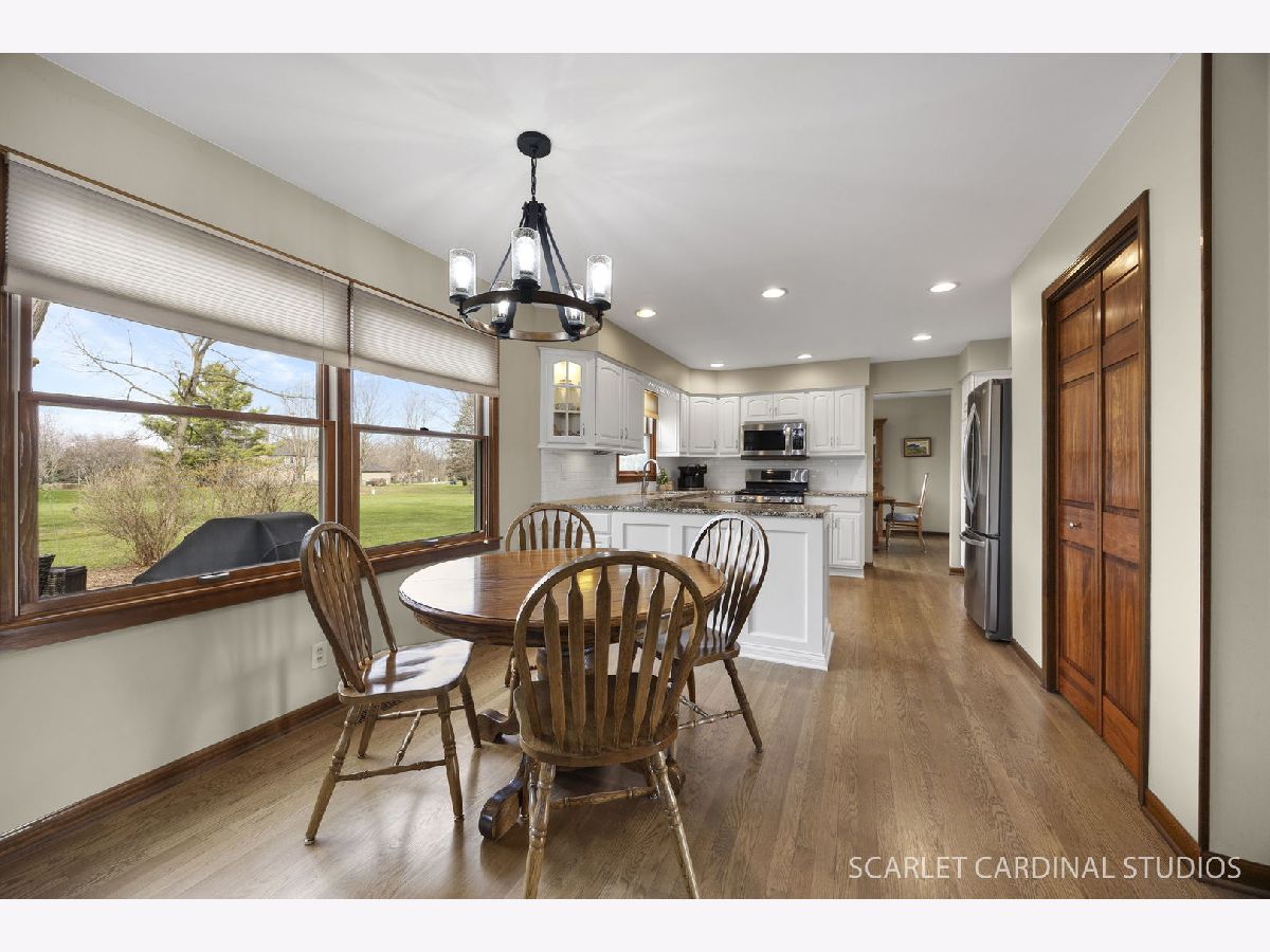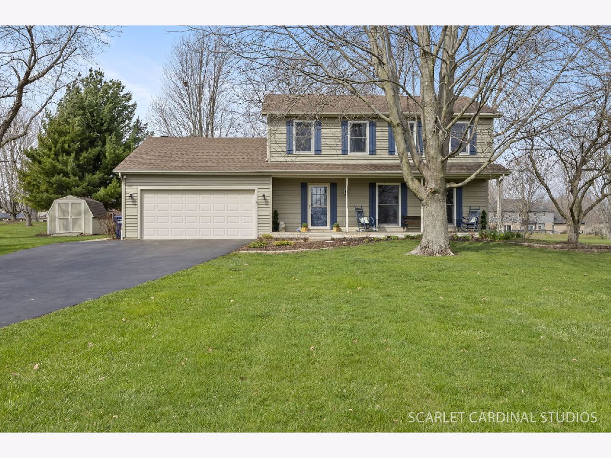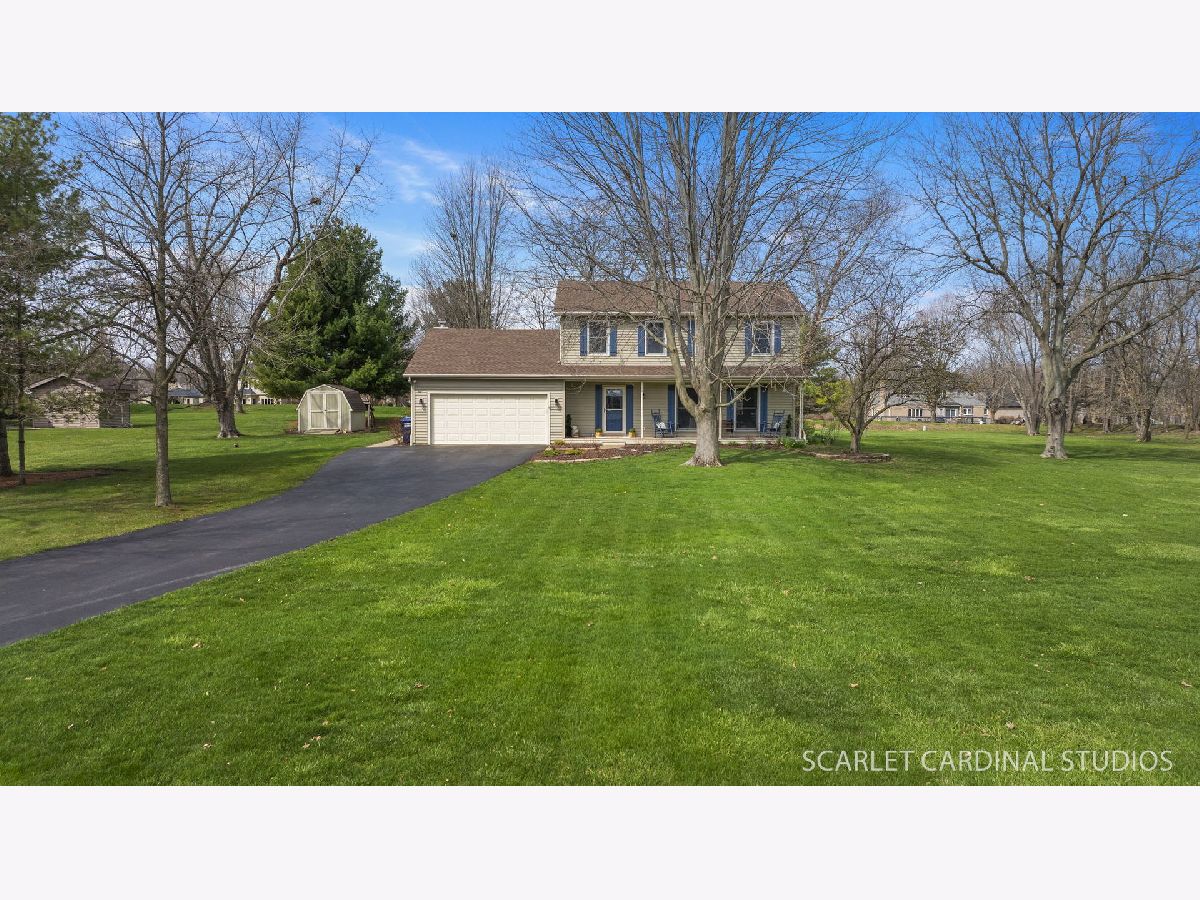Say hello to your charming farmhouse-inspired traditional 2-story home in Campton Hills, perfectly set on 1.3 acres with beautiful landscaping, amazing cub appeal, and a long, welcoming front porch. Fall in love the moment you walk in with REAL hardwood floors throughout the entire first floor and a layout that just makes sense. The traditional floor plan allows the living and dining rooms to flow seamlessly together-perfect for everyday living and entertaining. The fully updated kitchen is right in line with today's style, featuring white cabinetry, granite countertops, stainless steel appliances (including a double oven), an eat-in area, and plenty of counter space for prep and hosting. You'll also love the storage with both a pantry closet and additional cabinet pantry space. The kitchen opens directly into the cozy family room, complete with a wood-burning fireplace and access to the backyard. The outdoor space is truly something special-your own private oasis with a stamped concrete patio, string lights, fire pit, shed, and wood shed. There's plenty of room to relax, entertain, or simply enjoy the peaceful setting. The main level also offers a first-floor laundry room and powder room for everyday convenience. A 2-car attached garage and oversized driveway provide plenty of space for parking and guests. Upstairs, you'll find four spacious bedrooms, including a primary suite with beautiful backyard views and a private bath featuring a walk-in shower. The additional full bathroom has been tastefully updated with gorgeous tile work and a shower/tub combo. The finished basement is a huge extra, offering flexible living space, a dedicated workshop area, and plenty of additional storage, including a crawl space. Located in highly sought-after St. Charles School District 303, this home offers the best of both worlds-a private, rural feel while still being just minutes from Randall Road and all the shopping, dining, and amenities the Tri-Cities have to offer. Additional updates include Anderson windows throughout, roof (2020), and furnace & A/C (2022) with a transferable warranty. This home has been lovingly cared for over the past 30+ years. While it's hard for the current owners to say goodbye, they're ready to pass it along to the next buyer to start their next chapter and create lasting memories.