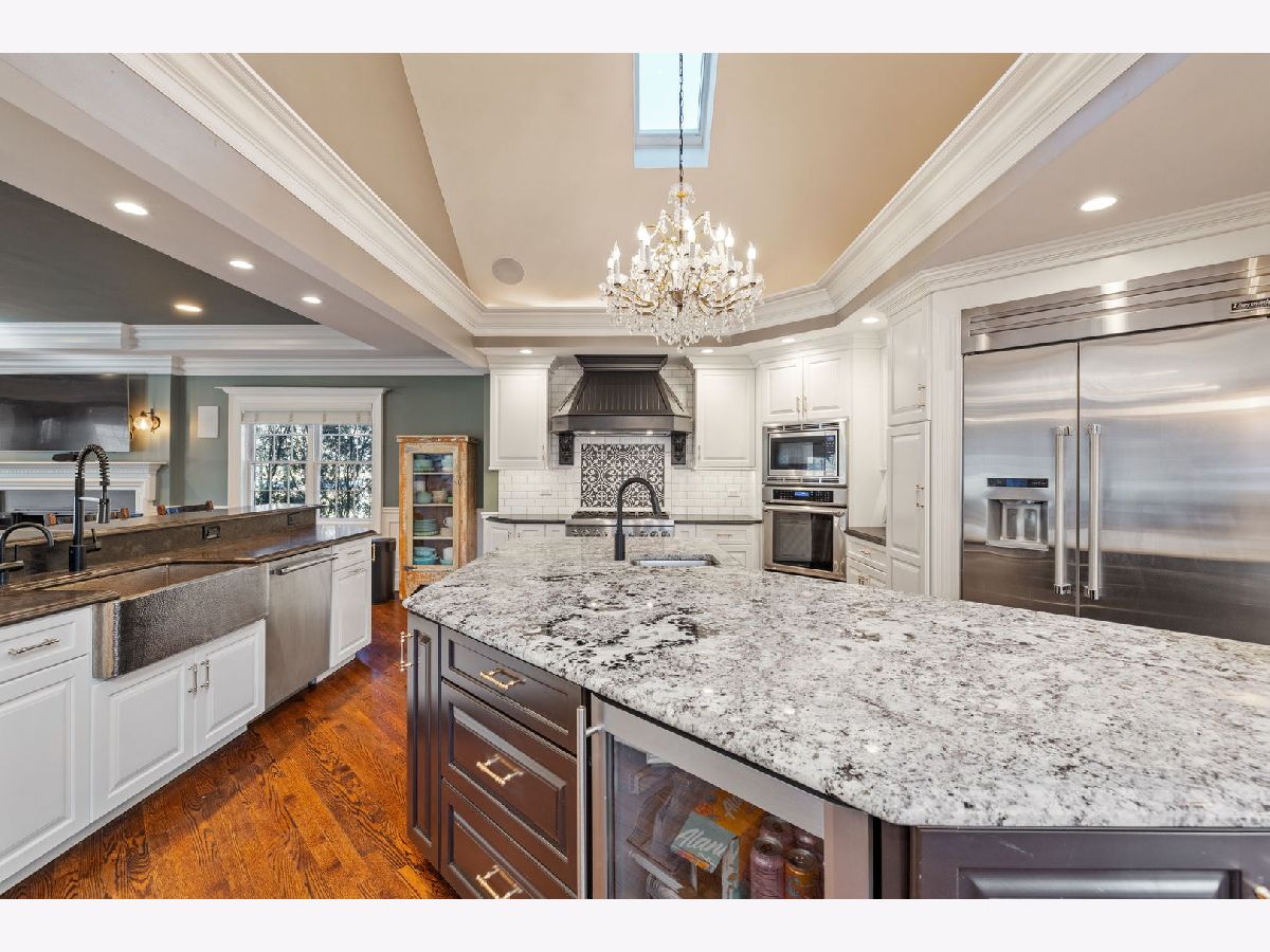 Welcome! This has the feel of a "Country Estate" and just minutes from all that north Naperville has to offer (with District 203 Schools), with an estate-sized 1+ acre yard! It is a seamless blend of charm and a modern feel from the classic covered front sitting porch into a spectacular "on point" spacious home with all of today's desired amenities. Bright and airy with volume ceilings, skylights and amazing millwork trim detail that is outstanding in its intricacy! stunning The gourmet kitchen offers higher-end appliances, large granite island + an a great conversation/snack bar seating area. The sunny southern exposure splashes natural light into the living/gathering room, kitchen and dining area. The kitchen features ALL Thermador Professional Series Stainless Steel appliances w/a Thermador 6-burner oven/range, professional exhaust hood, a 2nd oven, microwave & warming drawer & dishwasher. The center island has a wine fridge & two refrigerated drawers & plenty of cabinet storage. Note the leathered granite counters & the copper farm sink on the main work counters. Open to the generously sized family room with a gas fireplace, and leading out to the outside entertaining area complete with a covered brick patio, heaters, an outdoor kitchen, and an outdoor flat screen TV. There is a full masonry fireplace, plenty of sitting space, a covered hot tub area, and an amazing play yard. Back inside, the main level is completed with a living/gathering room with its own fireplace, office or music room, a laundry center, and two 1/2 baths; one a more formal one and a 2nd one closer to the backyard entry. The garage is an oversized 3+ garage (heated) to hold all of your toys and complete with cubbies/lockers. The second floor is reached via the sweeping staircase. The primary/master suite offers a sitting room with 3 closets and a window seat, fireplace, and a luxurious bath retreat with dual sinks, jetted tub and shower with custom tile/stone detailing. The other 3 bedrooms all have generous walk-in closets. A well-detailed family bath is easily accessible from the additional bedrooms. Each of the bedrooms offers a ceiling fan with lights and lofted ceilings. And there is more... the finished basement is a whole other story: a comfortable rec/game/media room (surround sound) and an English-Style "pub". The bar is richly detailed in wood and has the feel of one's gathering spot! There is a "secret play room" behind the "movable" bookcase that is fun for the little ones. Note the beautiful full bath in the finished basement. You will find plenty of storage in the unfinished portion. Both furnaces are new/newer (24' & '25), and one of the CAC units is new. 3 tankless water heaters were installed in 2020 & the well and septic purification systems have been kept up to date. Truly a property unlike any other and presented in first-class style! Easy access to I-88, the train, downtown Naperville and Costco (which is less than 1 mile from your front door). Part of the highly acclaimed District 203 School System (Beebe GS, Jefferson JH, and Naperville North HS).