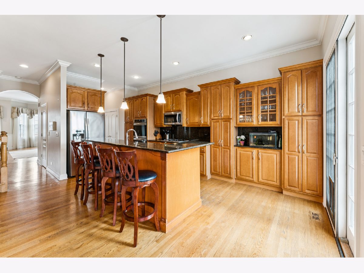 Rarely available!!! Chicago-style row home in a desirable Schaumburg location, walking distance to shopping and dining. This home offers approximately 3,000 sq ft of beautifully updated living space across three levels plus a basement! Many options for adding additional bedrooms if needed! The main level showcases 10-foot ceilings, recessed lighting, hardwood floors, oversized windows that fill the home with natural light, and a spacious living area perfect for entertaining. The open kitchen and dining area features maple cabinetry, a pantry, granite countertops and island, stainless steel appliances, and a cozy fireplace. French doors lead to a private patio and deck surrounded by mature landscaping. The upper level offers 9-foot ceilings and a generously sized primary suite with a walk-in closet and a well-appointed ensuite bath with dual vanities, a jet tub, and a walk-in glass shower. Two additional bedrooms and a convenient laundry closet complete the level. The lower level provides a comfortable family room, full bathroom, and access to a second outdoor deck. An additional basement level includes a finished space with a custom designer bar and additional space to entertain. Featured highlights include three bedrooms, five bathrooms (3.2), an attached two-car garage, and a newer roof (2 years old). 2 additional guest spaces also available. Conveniently located near Schaumburg Town Square, the public library, Woodfield Mall, dining, entertainment, schools, parks, golf courses, and the train.