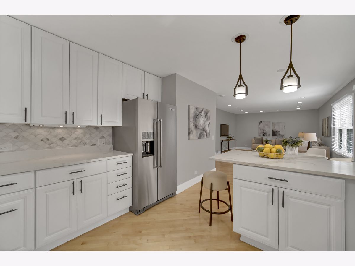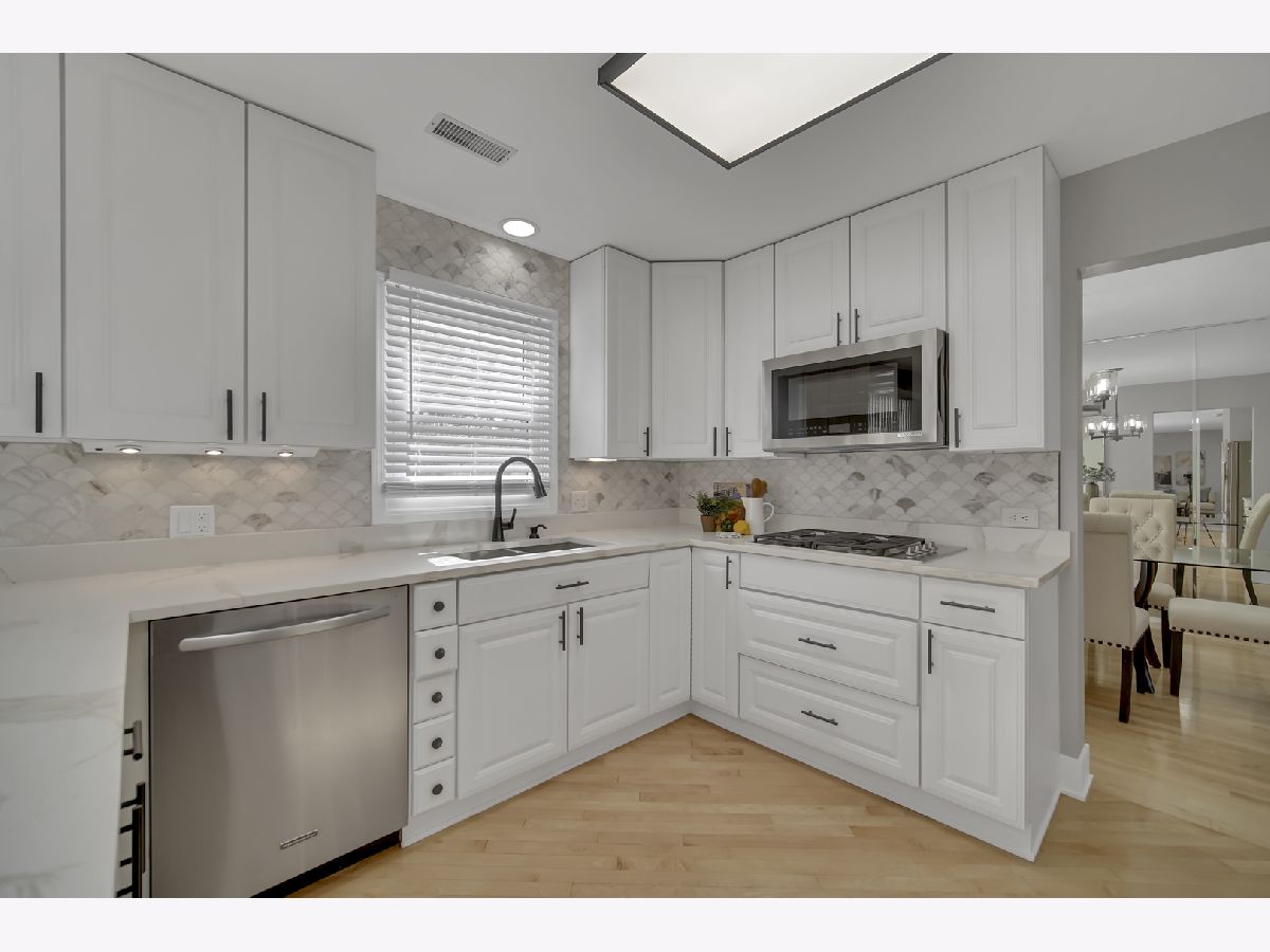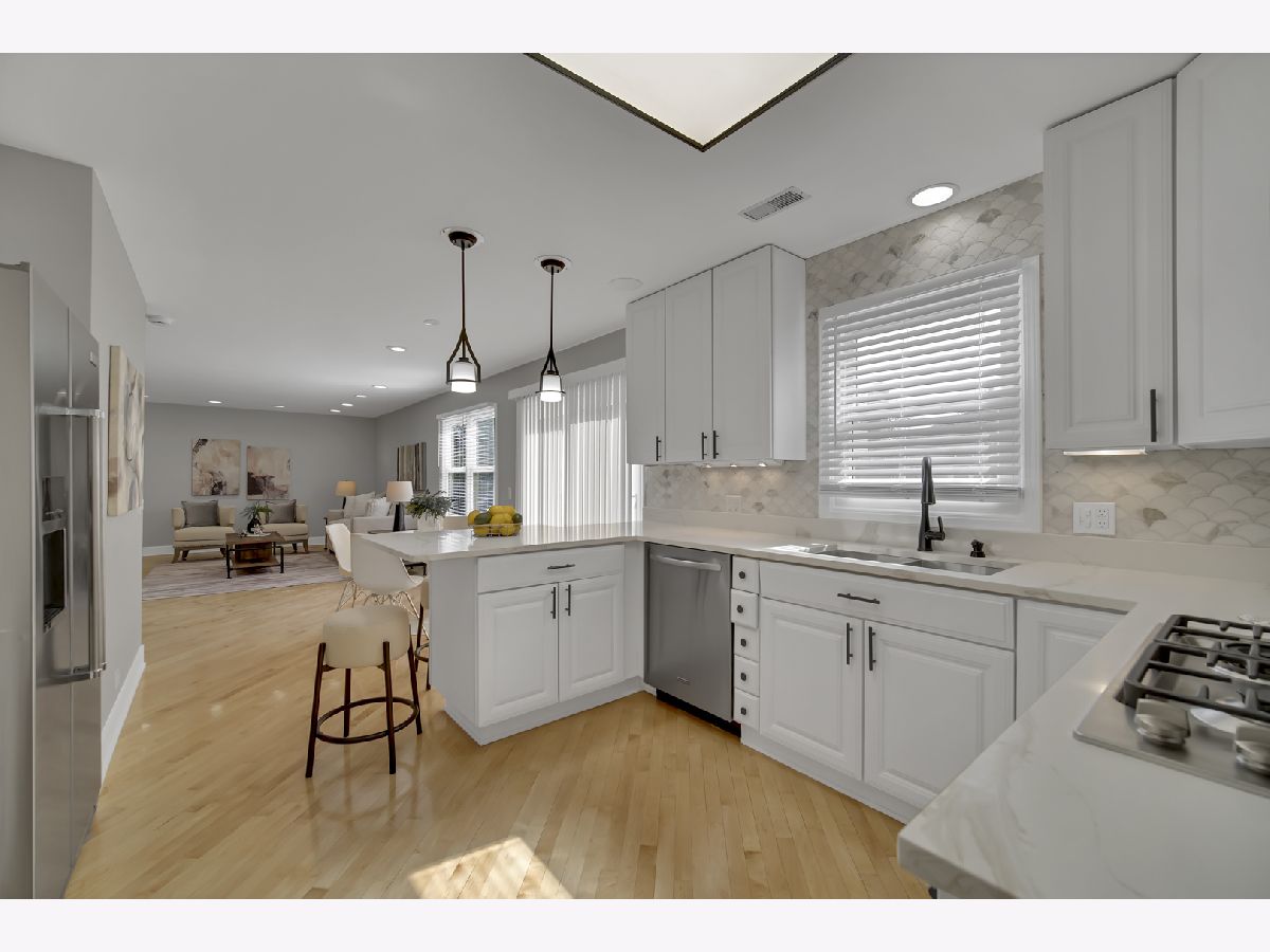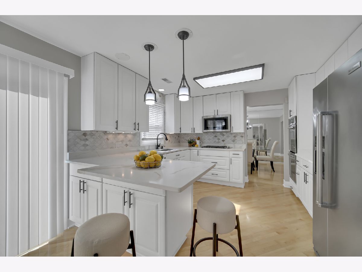 Beautifully updated and move-in ready, this spacious 4-bedroom (5th bedroom in basement), 2.1-bath home is located in one of Buffalo Grove's most sought-after neighborhoods, all within the highly acclaimed Stevenson High School district. Step inside to a bright, open floor plan featuring a dramatic two-story foyer, expansive living room, inviting family room, and a separate dining room-perfect for both everyday living and entertaining. The updated eat-in kitchen showcases new quartz countertops, modern lighting, and newer high-end stainless steel appliances. Extensive recent improvements provide peace of mind, including a brand New Roof, HVAC system (brand New Furnace and A/C), brand New Water Heater, updated lighting, and new flooring throughout-Maple Hardwood on the main level and luxury vinyl plank on the 2nd floor and basement. The finished basement offers incredible flexibility with a 5th bedroom, wet bar with new quartz countertop and sink, and abundant storage-ideal for guests, a home office, or recreation space or a space for Meditation or a mini home theater. Gas grill and security system in ASIS condition. Enjoy outdoor living in the Fenced Yard featuring a brand-new concrete patio and underground sprinkler system. Additional highlights include an attached epoxy flooring - two-car garage and windows approximately 10 years old.