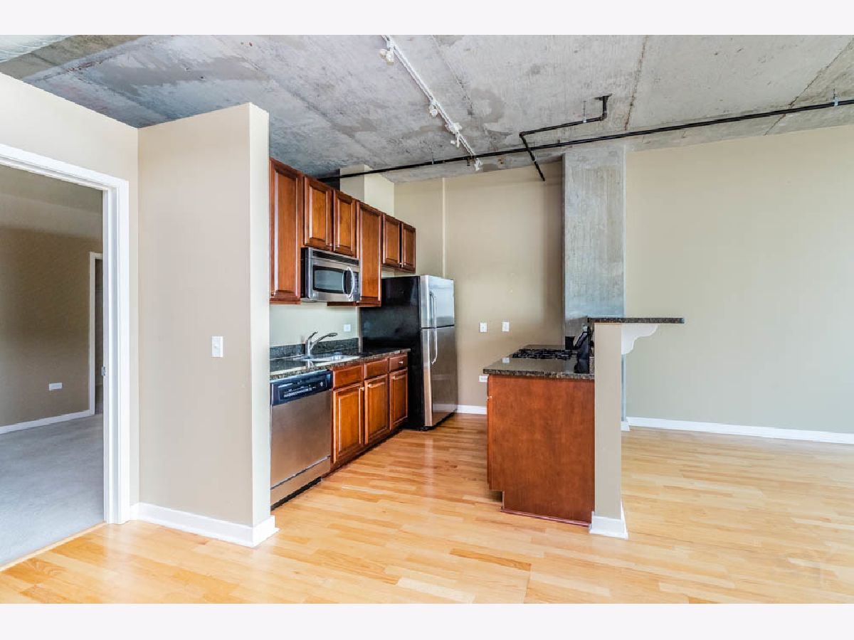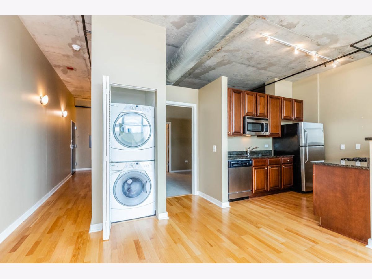 Excellent South Loop Condo location in The Guild with 10' Soaring Concrete Ceilings, One Bedroom with large Walk-In-Closet and a bathroom accessible from both the bedroom or hallway. Wood laminate floors, SS Appliances, Granite Counter Tops, In-Unit Washer & Dryer, small office area off the dining room ideal for "Work from Home" job. Great sized balcony off the living room and dining room with great sunset views to the west. Large fitness room and Lobby/Front Entry. Storage unit included in the sale price. Prime Indoor Parking Spot near the elevator at an ADDITIONAL cost of $30,000. Common Area Outdoor Space on 3rd Floor. Walk to Dog Park, Restaurants, Museums, Soldier Field, Lakefront, Grocery Stores, CTA and more. Available Immediately.
