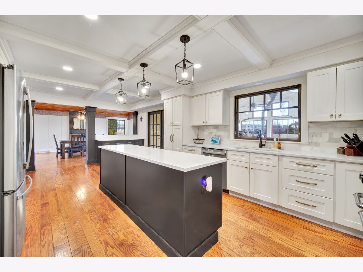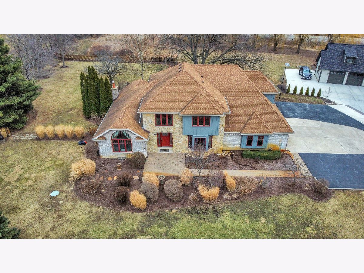 Beautiful and unique 5 bedroom 4 bath home located on a tranquil 1.5 acre lot. This home boasts a gorgeous entryway, with living room, office/den, stunning updated kitchen, grand dining room, and a large sun room to enjoy! A recently renovated bedroom, full bathroom, and laundry room are found on this main floor as well and easy access to the 3 car garage complete with electric car charger (Tesla). Upstairs are 3 more bedrooms, a full bath, along with the spacious Master bedroom with its many closets and own ensuite. The full unfinished basement has so much space and potential to complete as you wish. It already includes a partially finished full bath as well. This home is set back, off the main road, and is gorgeous when in bloom with its vast landscape. Seller has invested in a few recent updates and improvements such as new Hardie board exterior, a new 75 gal Bradford White water heater, and new washing machine, all completed in 2025. Installation of new basement windows and wells, new American Standard dual speed furnace, renovated main floor bedroom (floors, walls), and sealed the basement foundation, all completed in 2024. Great schools, great location, near to parks, restaurants, shopping, Metra, expressways, and more! Move in ready and waiting for you! Come see for yourself!