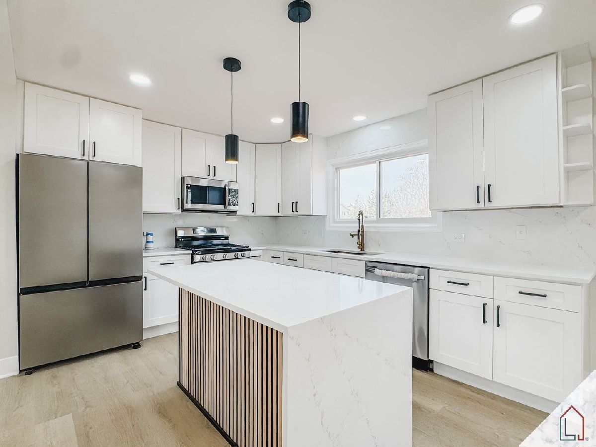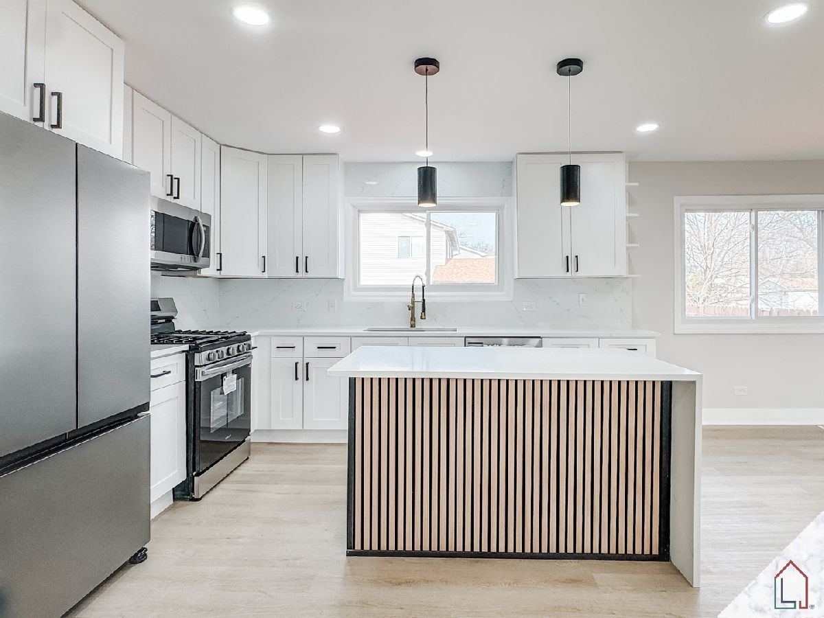 Welcome home to this beautifully renovated 4-bedroom, 2.5-bath residence in the heart of Matteson, where modern design meets everyday livability. Featuring a 2-car attached garage and a generously sized, fully fenced backyard, this home offers the perfect balance of comfort and functionality-ideal for both entertaining and quiet evenings at home. Step outside to enjoy a newly painted deck and a built-in firepit, creating the perfect setting for outdoor gatherings year-round. Inside, you'll find recessed lighting throughout, a soft neutral designer palette, and new luxury plank flooring that creates a seamless, upscale feel from room to room. The centerpiece of the home is a stunning custom white kitchen, complete with shaker-style cabinetry, soft-close doors and drawers, Samsung appliances, and sleek quartz countertops paired with a full-height quartz backsplash for a clean, elevated finish. All renovations were completed with permits, offering peace of mind, and include major updates such as NEW windows and a newer hot water tank and a NEW asphalt driveway will be installed prior to closing. Two electric fireplaces add warmth and modern character, while the primary suite provides a private retreat with its own en-suite bath and walk-in closet. The lower level features a custom-designed powder room, adding both convenience and style. Thoughtfully designed and move-in ready, this home delivers quality craftsmanship, modern comfort, and a refined living experience in one of Matteson's most desirable areas. Broker Interest.