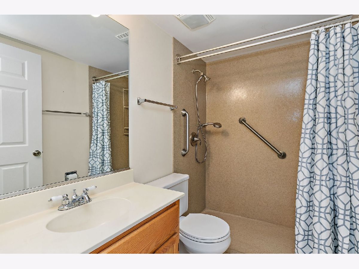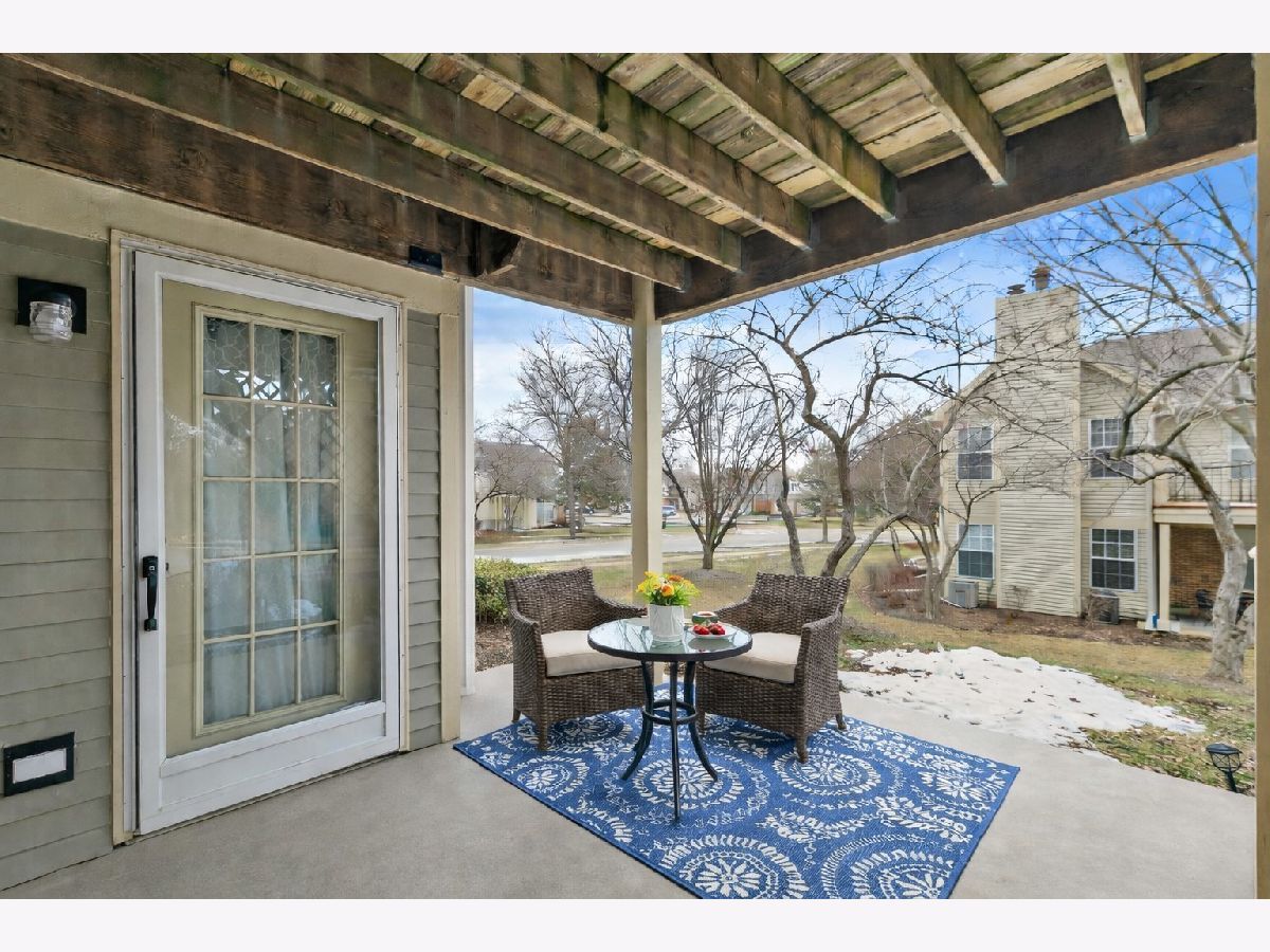 Welcome home to this well-maintained 2 bedroom, 2 bath first-floor condo, offering true one-level living in a desirable community. The spacious living room features a gas fireplace, plenty of natural light, and a sliding door to a private patio, perfect for relaxing or entertaining. A designated dining area flows nicely into the living space. The large kitchen includes ample cabinets and quartz countertops along with a dining alcove for everyday meals. All appliances are stainless steel including a new oven/range and microwave. A generous laundry room provides added convenience and storage. The primary suite is oversized and includes a walk-in closet and a huge private bath with a soaking tub and separate shower. The second bedroom is well-sized and located near the second full bath with a walk-in shower, ideal for guests. Additional highlights include a 1-car attached garage with excellent storage space. Located in Essex Village (The Villages), residents enjoy access to a clubhouse and pool, all just off Randall Road and close to shopping, dining, and everyday conveniences. Quick close possible, move right in and enjoy easy living.