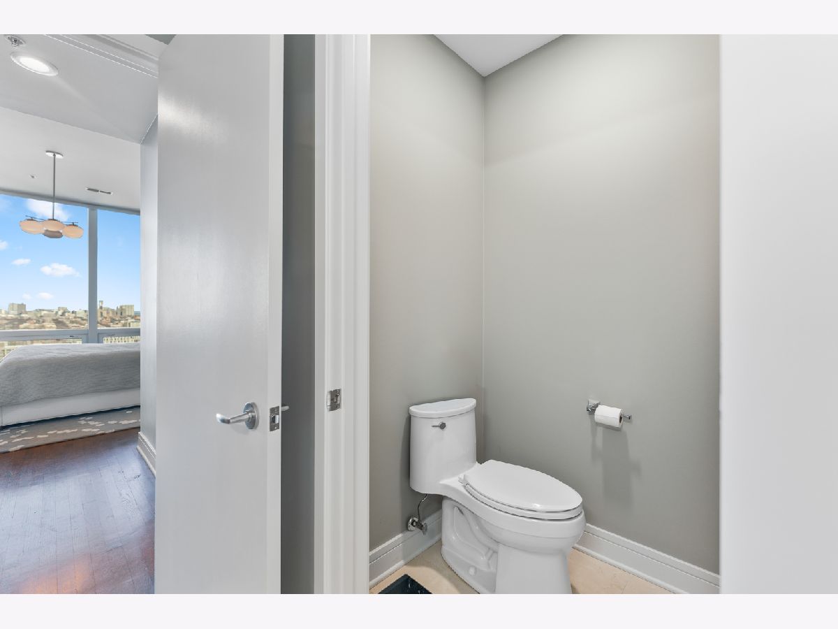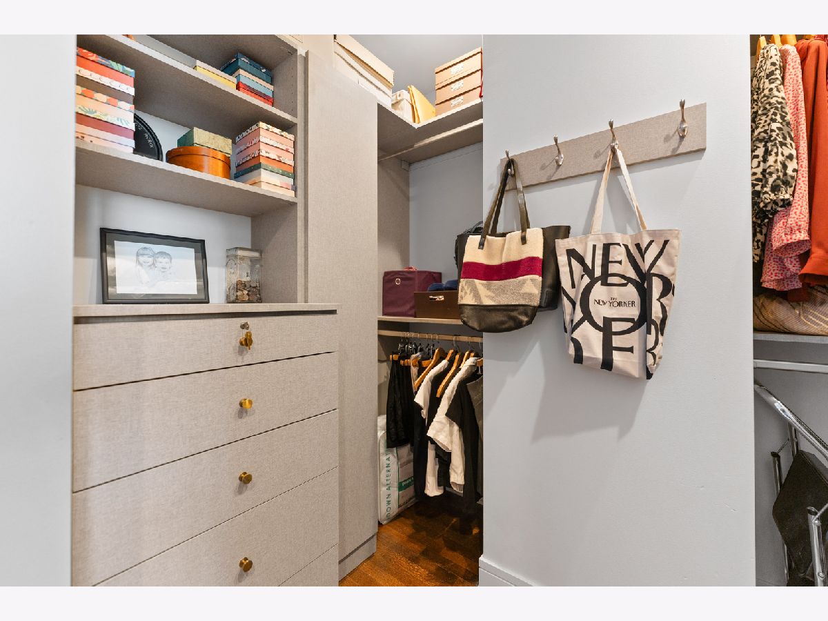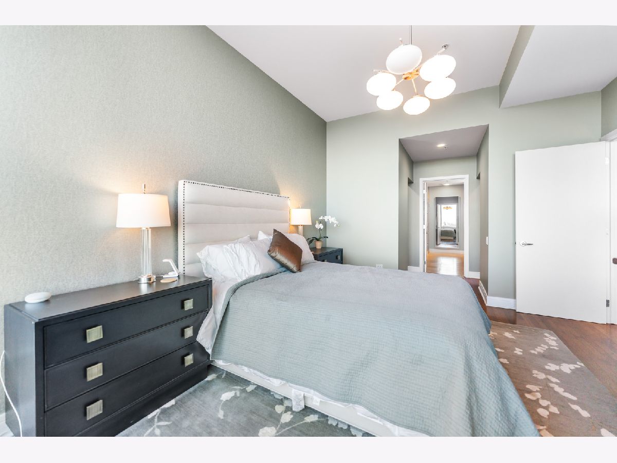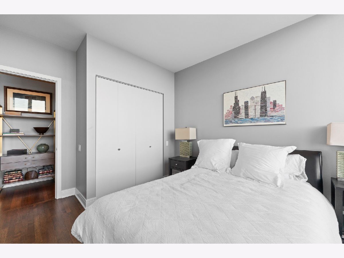 This exquisite 3-bedroom, 2.1-bath residence at The Montgomery offers refined modern luxury with expansive north-facing city views and glimpses of Lake Michigan beyond. Exceptionally high ceilings, floor-to-ceiling windows, and solid concrete construction create a remarkably quiet, light-filled living environment. Since 2017, the seller has made significant improvements throughout the home. The fully renovated kitchen features all-new custom cabinetry, appliances, and fixtures, the removal of a hallway wall to enhance flow, and a dramatic waterfall countertop. Built-in dining cabinetry with integrated lighting adds both function and architectural interest. Additional updates include refinished and re-stained hardwood floors, wood flooring added to all three bedrooms, glass transom to 3rd bedroom, new designer lighting throughout and extensive custom storage. The spacious primary suite is a true retreat with amazing North views, offering generous custom closets by Closet Works and a spa-like renovated bath with a fully tiled walk-in shower. The second bedroom, with floor-to-ceiling windows, is well-sized and privately situated. The fully enclosed third bedroom-currently styled as a den- maintains natural light while providing privacy, along with a very large closet and excellent storage. The second full bath has been fully updated including flooring, along with the updated powder room and in-unit laundry to complete the unit. The Montgomery is one of River North's most distinguished full-service luxury buildings, known for its architectural pedigree, high service level, and exceptional management with long-term door and maintenance staff. Amenities include 24-hour door staff, on-site management and maintenance, fitness center, party room, bike room, additional storage, and beautifully maintained common areas, including a landscaped "north lawn" with seating areas, grills, and fire pits. The building is pet-friendly, including large dogs, and features a private, secure dog run-one of the largest in the city. Ideally located to the Loop, Chicago Riverwalk, Michigan Avenue, Montgomery Park, and neighborhood favorites including East Bank Club, BIAN private club, Target, Mariano's, Whole Foods, AMC and premier dining-this is modernist luxury living at its finest. Attached garage parking available for $35,000.