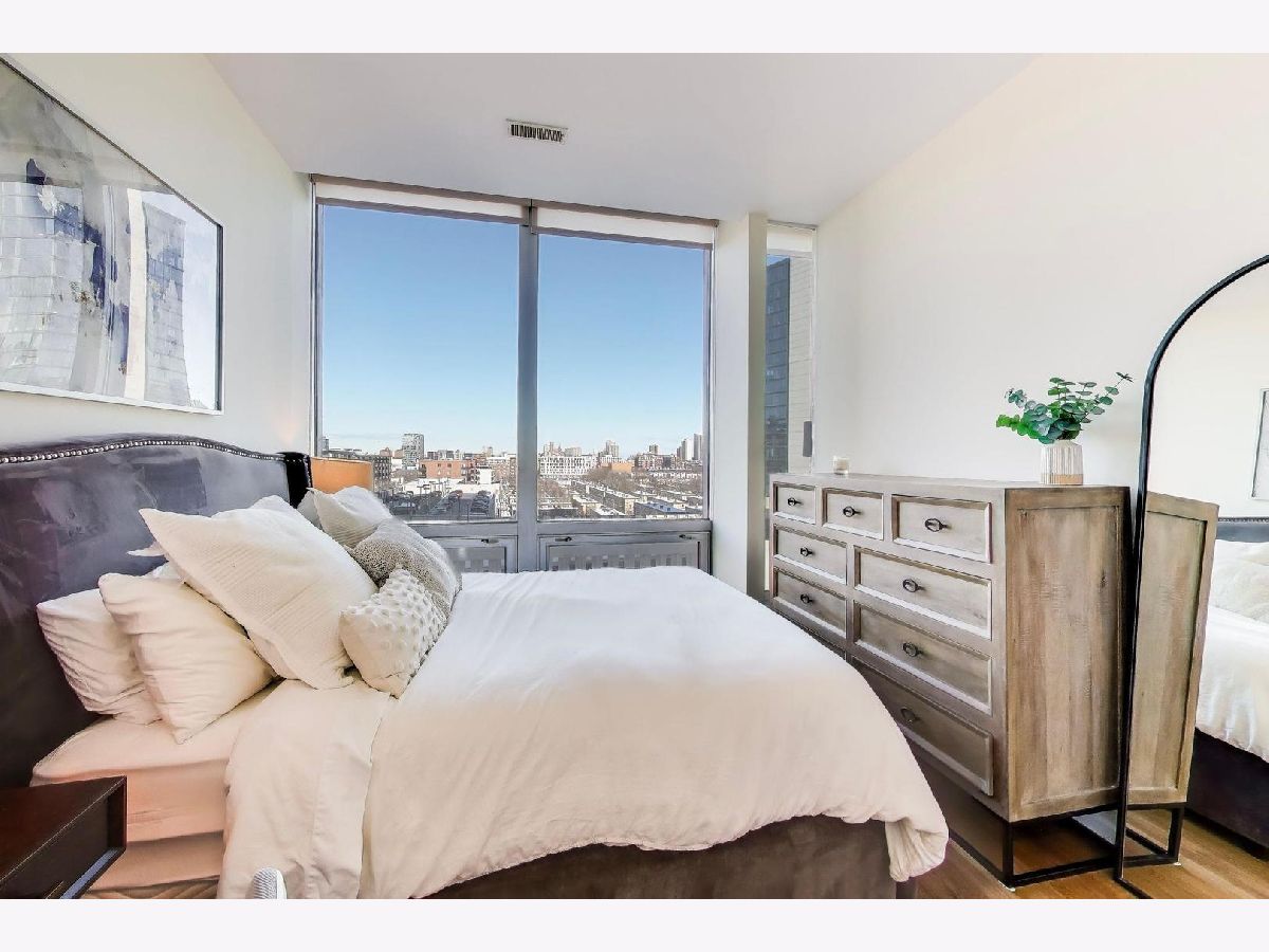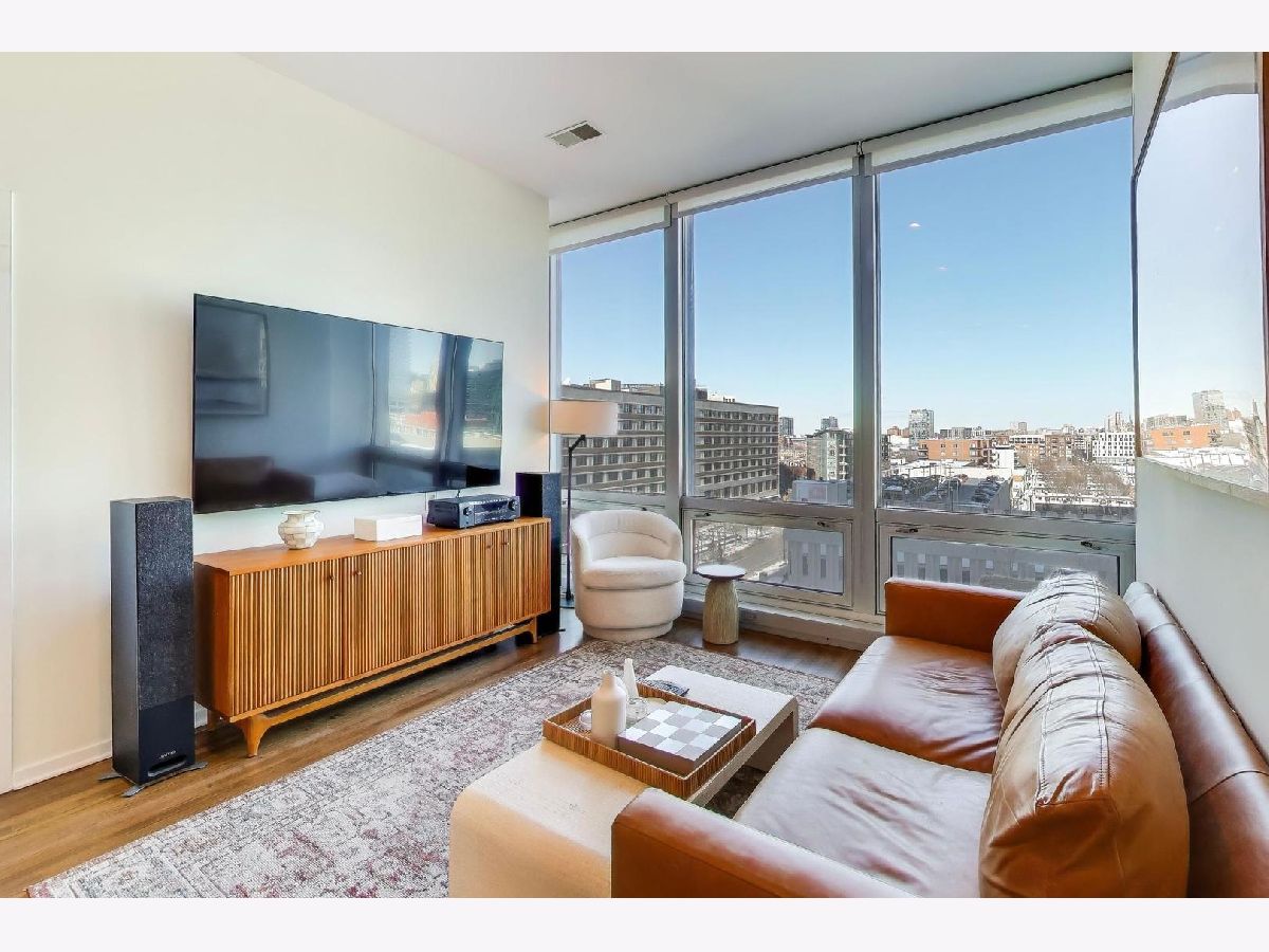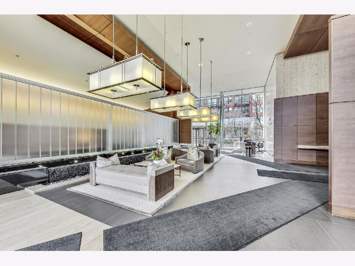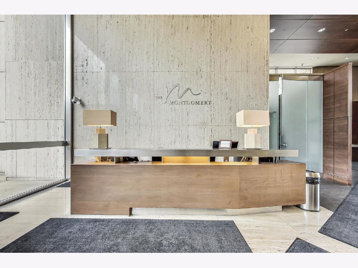 Premier 2 bed/1.1 bath condo in River North's highly sought after Montgomery. This home has been lived in delicately. Gleaming refinished hardwood floors throughout, refreshed lighting, & window treatments. Light abounds through the floor-to-ceiling windows. Masterful kitchen update with Bosch/Kitchen-Aid/Jenn-Air appliances, white quartz counters, marble backsplash custom builtin wine rack and additional storage cabinets. A primary suite with two customized closets and proper marble bathroom. Scaled vanity, linen closet and soaking tub. A second bedroom that is the perfect work from home space, den/ nursery or guests suite with custom built-ins. The Montgomery is a full-service amenity building w/24-hour door-staff, on-site management, state-of-the-art gym, in-unit package delivery service, dry-cleaner, rear patio w/fire pits & grilling stations, private dog run, & roof top deck, with incredible views of the city and an herb garden In-unit laundry and an additional storage locker included.Deeded parking is an additional $35k.
