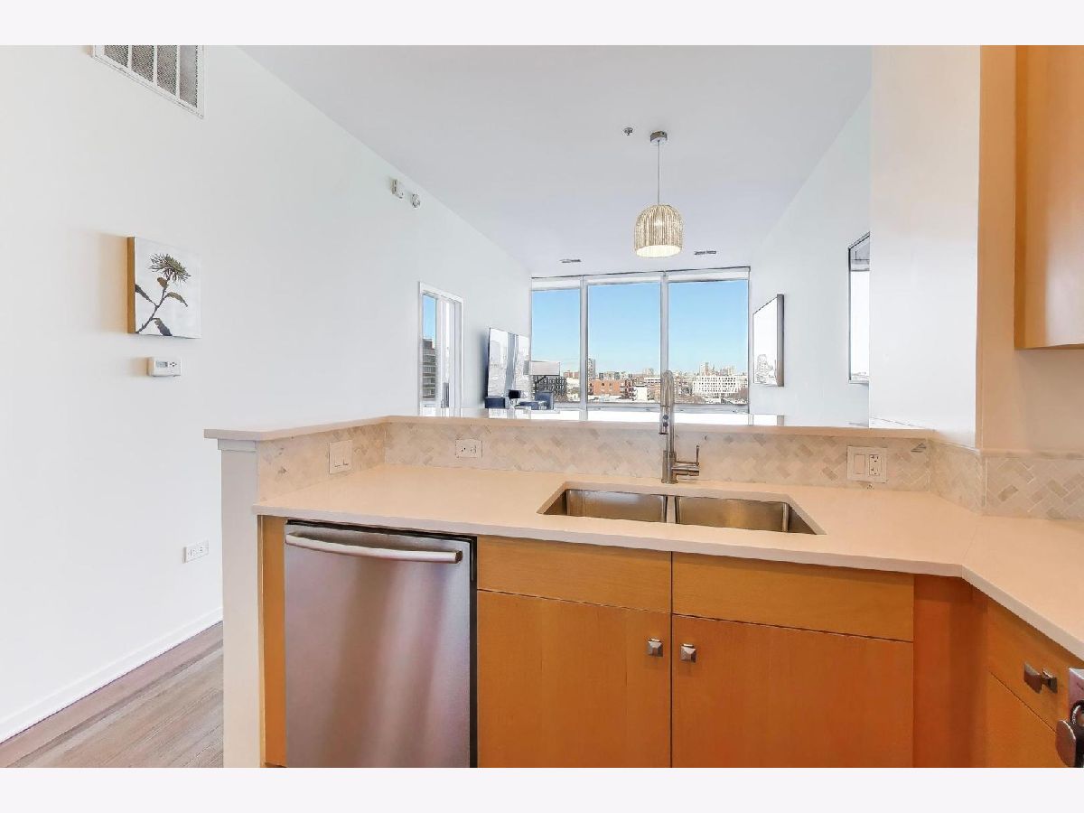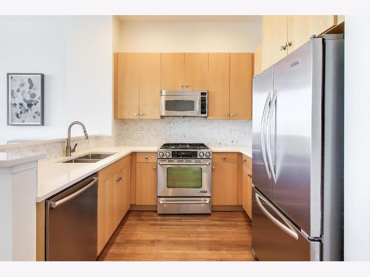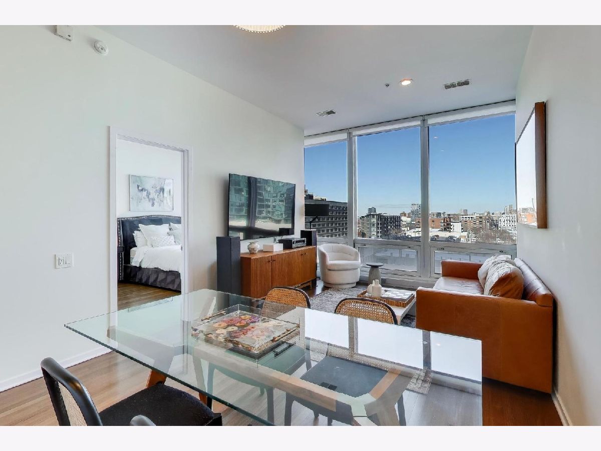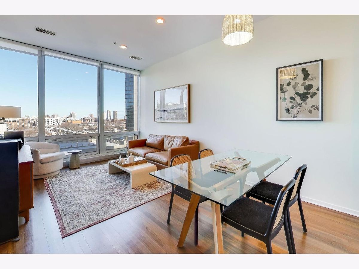 Premier 2 bed/1.1 bath condo in River North's highly sought after Montgomery. This home has been lived in delicately. Gleaming refinished hardwood floors throughout, refreshed lighting, & window treatments. Light abounds through the floor-to-ceiling windows. Masterful kitchen update with Bosch/Kitchen-Aid/Jenn-Air appliances, white quartz counters, marble backsplash custom builtin wine rack and additional storage cabinets. A primary suite with two customized closets and proper marble bathroom. Scaled vanity, linen closet and soaking tub. A second bedroom that is the perfect work from home space, den/ nursery or guests suite with custom built-ins. The Montgomery is a full-service amenity building w/24-hour door-staff, on-site management, state-of-the-art gym, in-unit package delivery service, dry-cleaner, rear patio w/fire pits & grilling stations, private dog run, & roof top deck, with incredible views of the city and an herb garden In-unit laundry and an additional storage locker included.Deeded parking is an additional $35k.