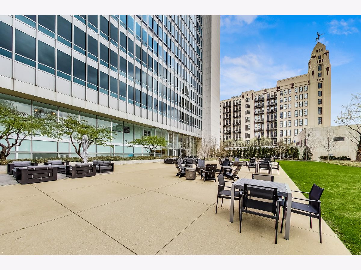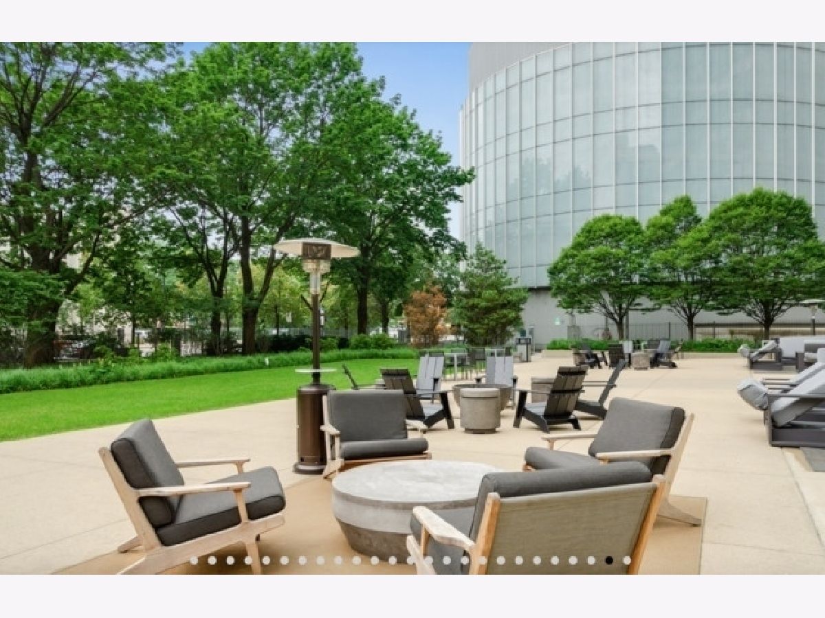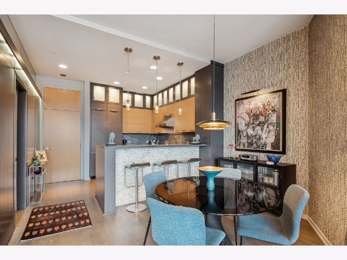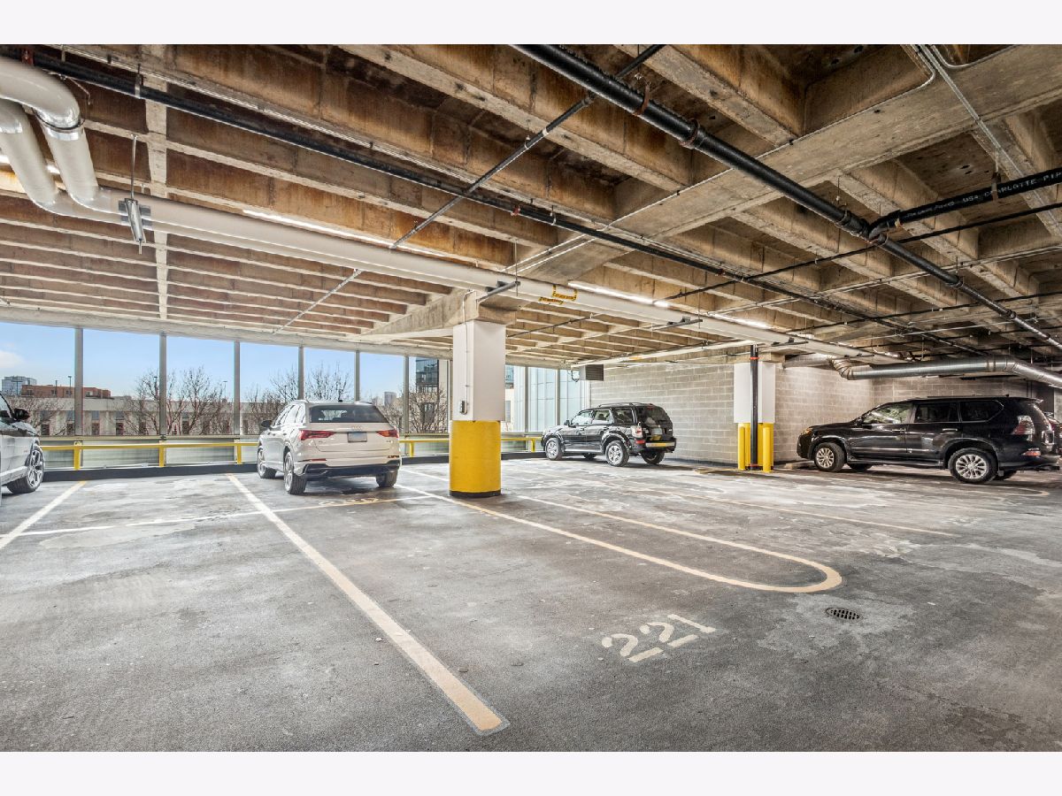 This stunning home at the iconic Minoru Yamasaki-designed "Montgomery" is a 2BR 2BA condominium in the quieter section of River North. The Unit boasts a rare and exclusive East-facing balcony with breathtaking skyline views at sunrise and sunset, visible through floor-to-ceiling windows. This unit has been extensively renovated and professionally designed. White oak floors grace the beautiful space and lead to a custom-designed media wall, gas fireplace, and TV niche with Sonos speakers. Warm, custom lighting illuminates the home, welcoming you after a long day of enjoying the heart of River North. The exquisitely renovated kitchen charms with sleek soapstone countertops and backsplash, custom cabinets, stainless steel Thermador appliances and hood, and a wood-paneled fridge. A custom bar and wine fridge, tastefully hidden in a stylish cabinet, punctuates this chef's kitchen. The spacious primary suite features two walk-in closets and a stunning floor to ceiling built-in wardrobe, along with a luxurious spa-like bath with a six foot soaking tub, separate shower, double vanity and large linen closet. A guest bedroom and bath complete this elegant Unit, along with more than ample custom closets and storage. There are absolutely NO common shared walls, creating a quiet and private living space. The Unit includes TWO parking spaces on the most desirable Level 2 of the heated garage! The "Montgomery" is an extremely well managed building with substantial reserves. In addition to the roof-top space, spectacular for viewing July 4 fireworks and the Air and Water Show, owners can enjoy the "North Lawn" outfitted with lounge areas, table seating, fire pits, and BBQ grills. Assessments include owner-controlled heat and air conditioning, cable TV and all but a small monthly electric bill. Visit this warm and inviting home in close proximity and with easy access to everything the City has to offer!