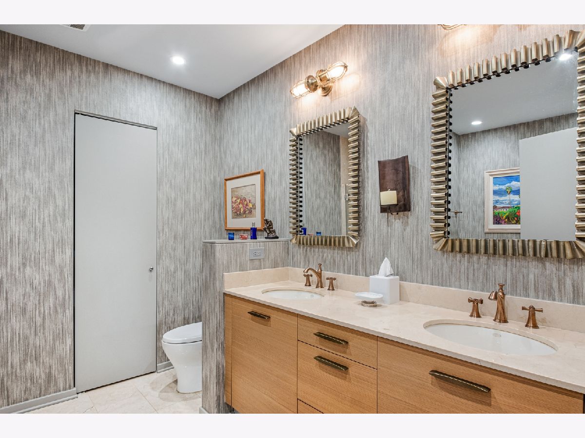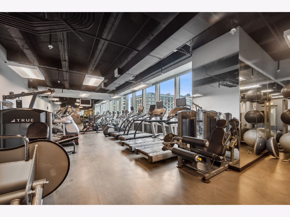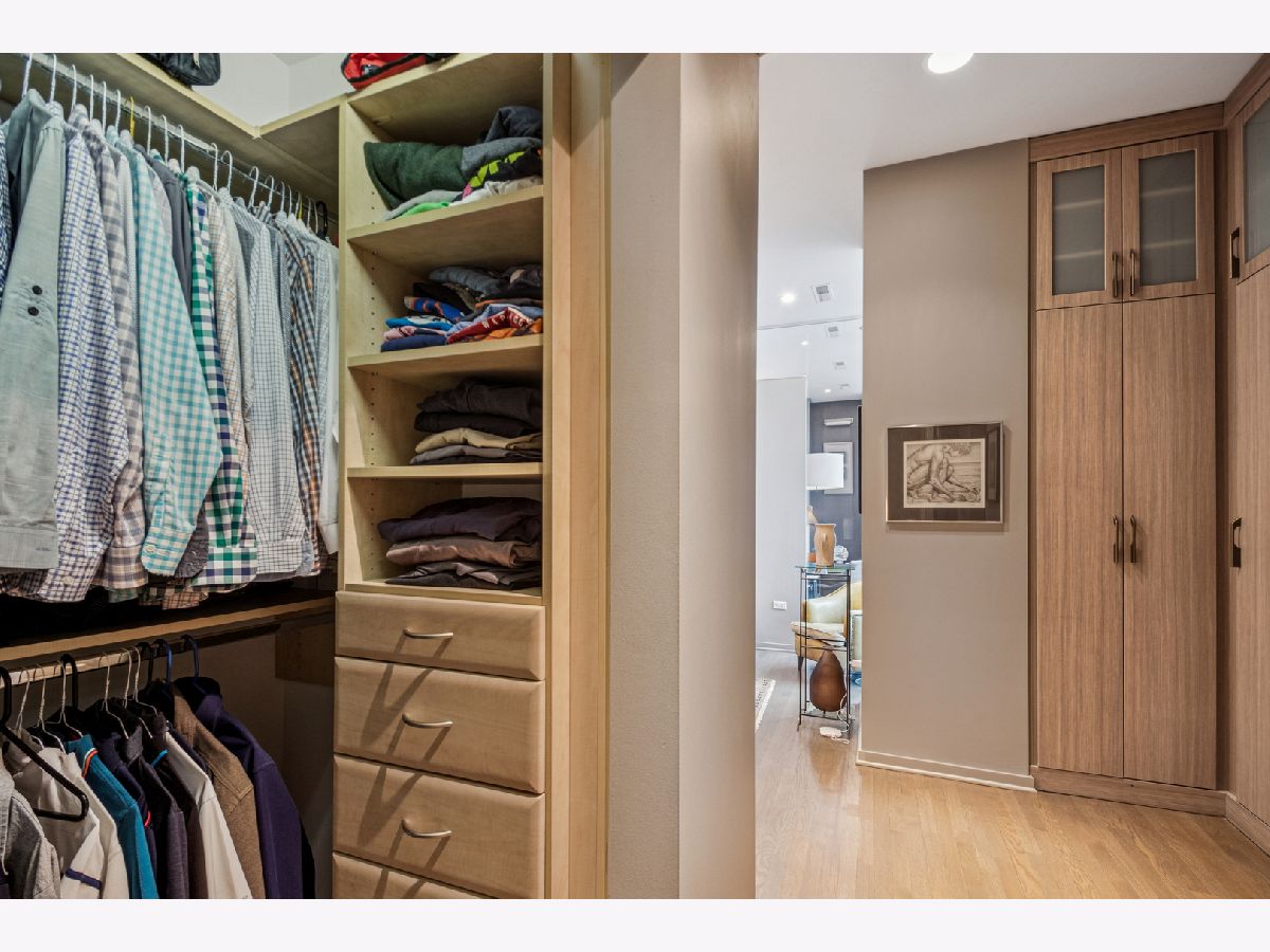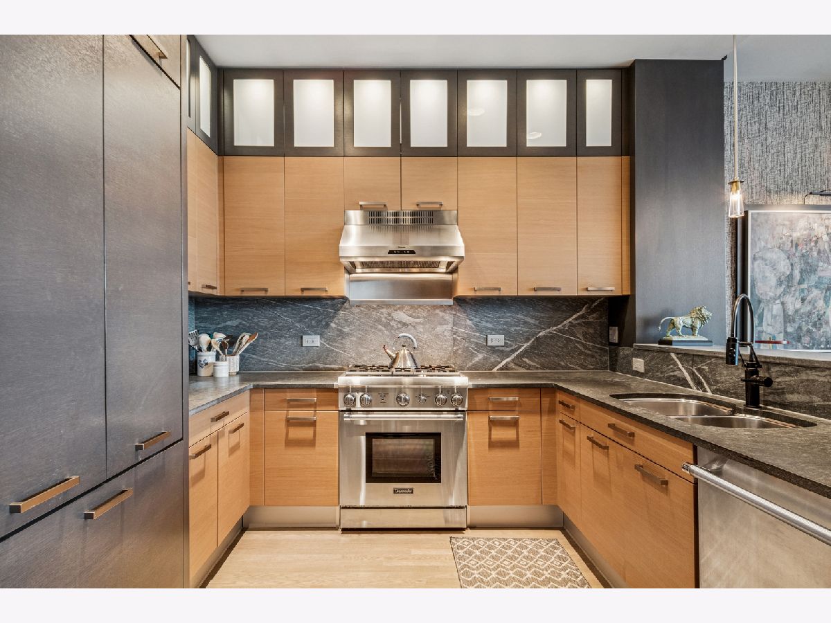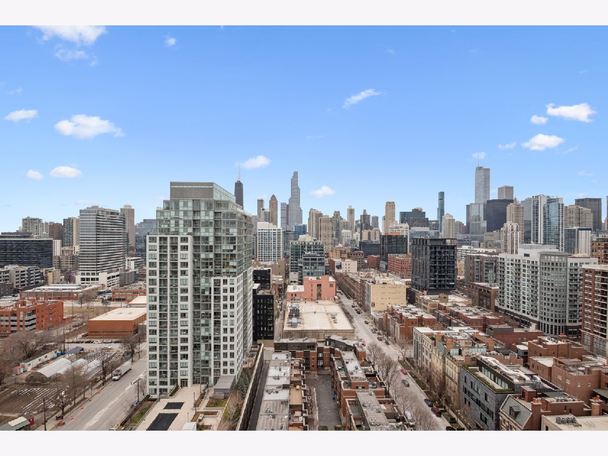 This stunning home at the iconic Minoru Yamasaki-designed "Montgomery" is a 2BR 2BA condominium in the quieter section of River North. The Unit boasts a rare and exclusive East-facing balcony with breathtaking skyline views at sunrise and sunset, visible through floor-to-ceiling windows. This unit has been extensively renovated and professionally designed. White oak floors grace the beautiful space and lead to a custom-designed media wall, gas fireplace, and TV niche with Sonos speakers. Warm, custom lighting illuminates the home, welcoming you after a long day of enjoying the heart of River North. The exquisitely renovated kitchen charms with sleek soapstone countertops and backsplash, custom cabinets, stainless steel Thermador appliances and hood, and a wood-paneled fridge. A custom bar and wine fridge, tastefully hidden in a stylish cabinet, punctuates this chef's kitchen. The spacious primary suite features two walk-in closets and a stunning floor to ceiling built-in wardrobe, along with a luxurious spa-like bath with a six foot soaking tub, separate shower, double vanity and large linen closet. A guest bedroom and bath complete this elegant Unit, along with more than ample custom closets and storage. There are absolutely NO common shared walls, creating a quiet and private living space. The Unit includes TWO parking spaces on the most desirable Level 2 of the heated garage! The "Montgomery" is an extremely well managed building with substantial reserves. In addition to the roof-top space, spectacular for viewing July 4 fireworks and the Air and Water Show, owners can enjoy the "North Lawn" outfitted with lounge areas, table seating, fire pits, and BBQ grills. Assessments include owner-controlled heat and air conditioning, cable TV and all but a small monthly electric bill. Visit this warm and inviting home in close proximity and with easy access to everything the City has to offer!