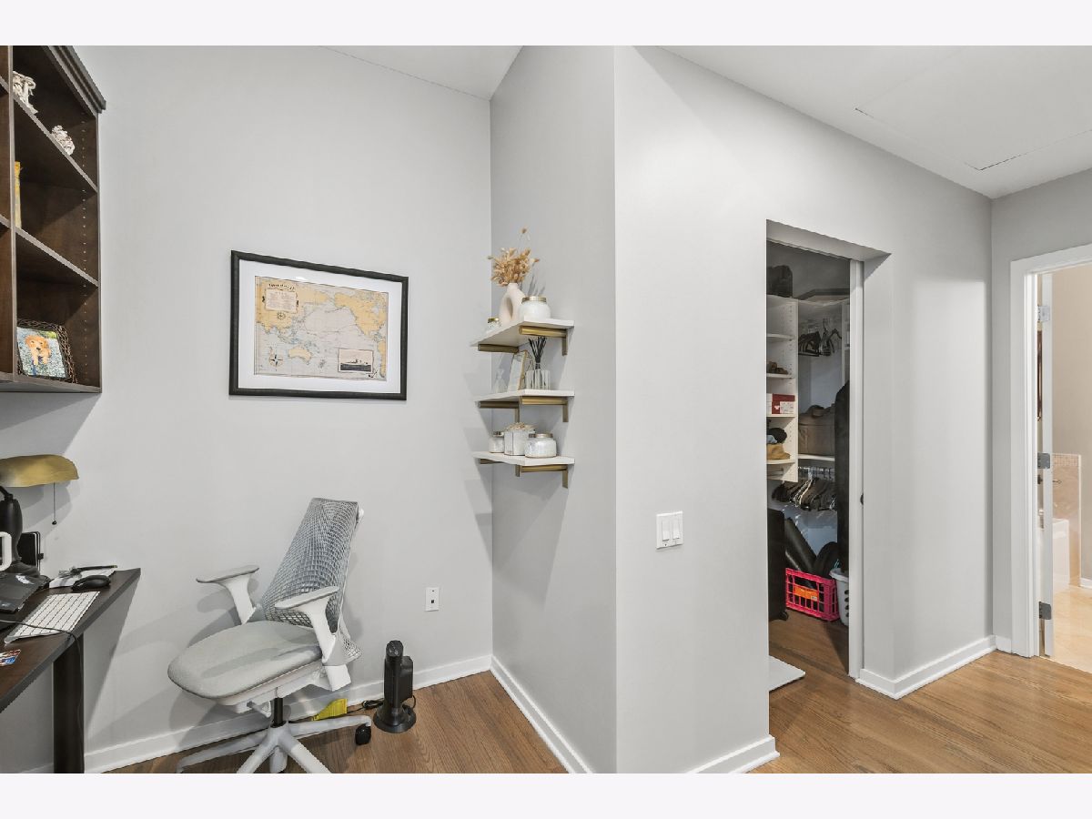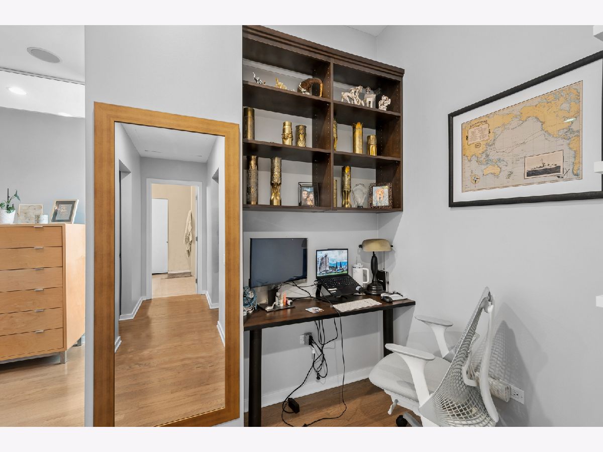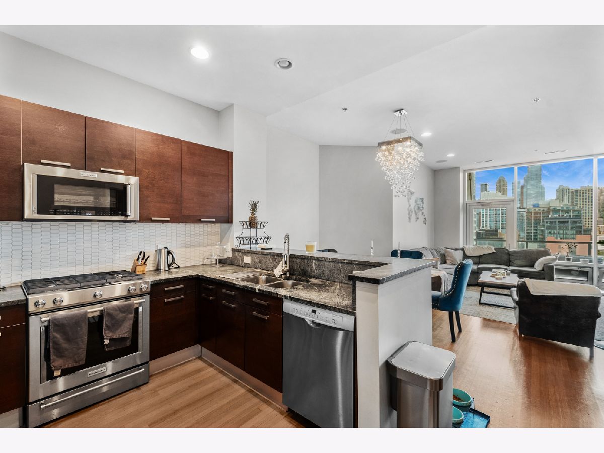 Rarely available, this exceptional residence offers breathtaking city views from a private, east-facing balcony in the heart of River North. Designed with both elegance and comfort in mind, the expansive open-concept layout is ideal for sophisticated entertaining, featuring rich hardwood flooring throughout and a chef-inspired kitchen appointed with premium stainless steel appliances, granite countertops, a designer tiled backsplash, and an inviting breakfast bar. The serene primary suite serves as a true retreat, complete with a refined office nook, two spacious walk-in closets, and a spa-caliber marble bath featuring a linen closet, dual vanities, a whirlpool soaking tub, and a separate glass-enclosed shower. Additional upscale amenities include built-in speakers, an in-unit washer and dryer, and a dedicated storage locker, offering the perfect blend of luxury, convenience, and urban living.Garage parking included! Pet friendly - 2 pets per unit with no weight or breed restrictions. Parking space P-249 on 2nd floor. Assessments listed include parking.