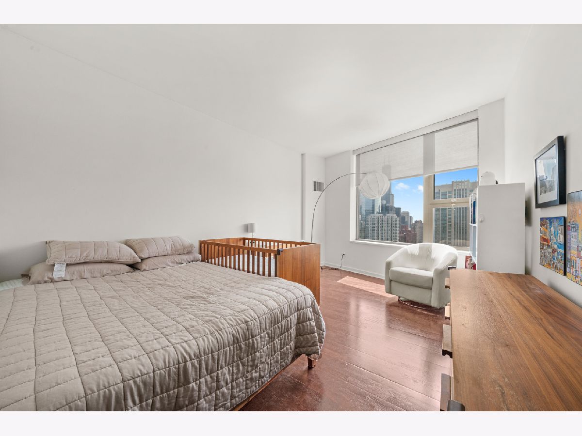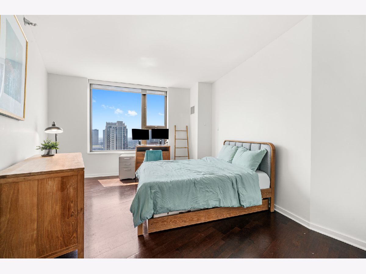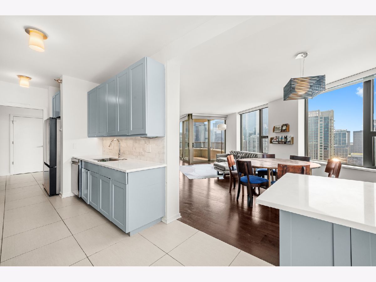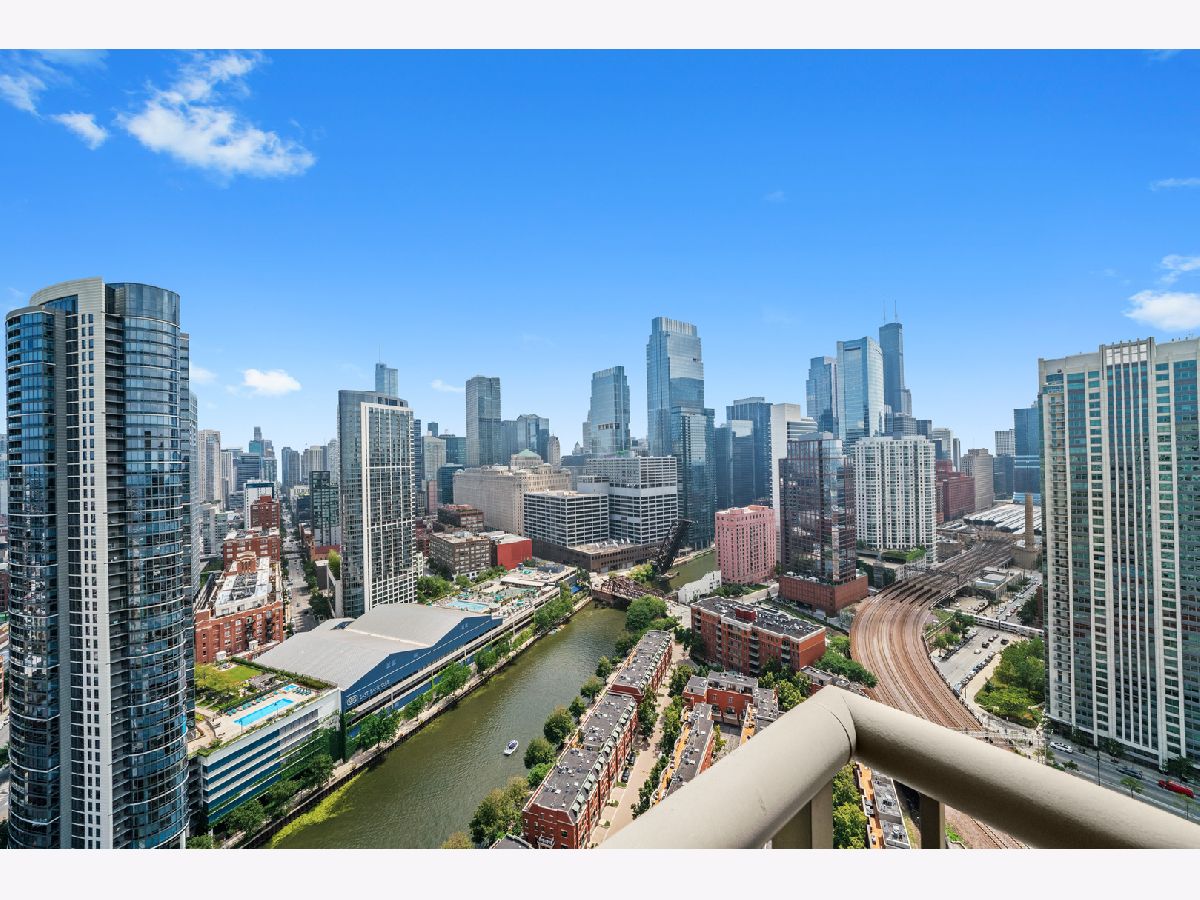 Absolutely stunning and rarely available, this sprawling 4-bedroom, 3.1-bath residence in Kinzie Park Tower offers commanding views of Chicago's sparkling skyline! This renovated home features four true spacious bedrooms, two oversized private terraces, two garage parking spaces, and numerous upgrades throughout. The gorgeous, updated open kitchen showcases painted gray cabinetry, quartz countertops, subway tile backsplash, induction cooktop, and stainless-steel appliances. Rich dark flooring, sophisticated lighting, and an expansive primary suite with a slate bath, separate tub/shower, and an enormous walk-in closet elevate the home's luxurious feel. Floor-to-ceiling wraparound windows deliver jaw-dropping 180 views to the east, south, and west. Kinzie Park provides an exclusive, gated community experience with exceptional amenities, including: 24-hour attended entry and door staff, Free guest parking, State-of-the-art fitness center, Outdoor pool and landscaped gardens, Private Riverwalk access, Bike room, Social room with full kitchen, and On-site management. Two heated garage parking spaces available at $35k each. Situated in the vibrant Fulton River District, this home places you in the heart of it all-steps from Chicago's finest dining, shopping, and entertainment. Enjoy acclaimed restaurants like Gibsons Italia, Carnivale, and Piccolo Sogno, with the East Bank Club and Jewel-Osco nearby. With a Walk Score of 92, transportation is a breeze: Chicago Ogilvie Transportation Center, Clinton Green & Pink Line station, multiple bus routes, and both O'Hare and Midway airports within a 25-minute drive. Explore this property in 3D! Click the 3D button to take a virtual tour and experience every detail.