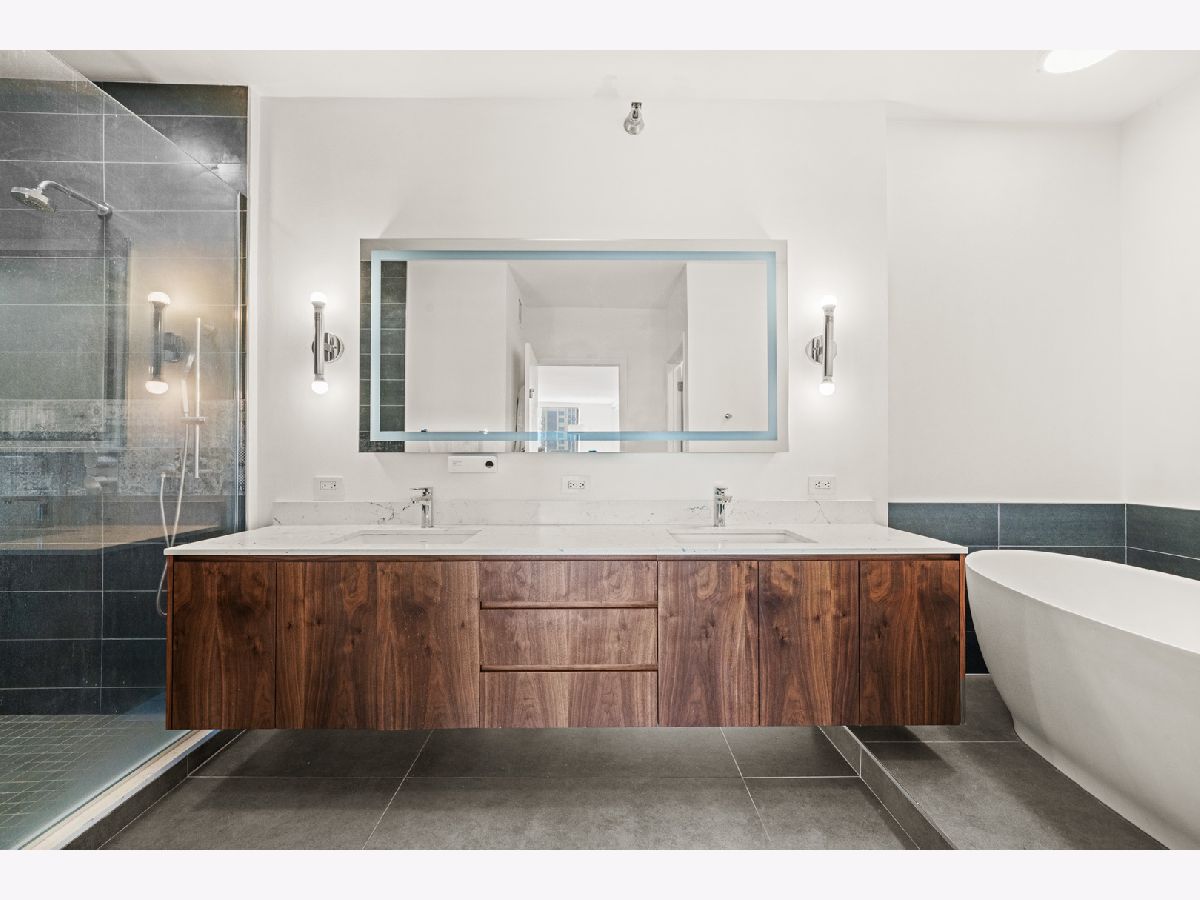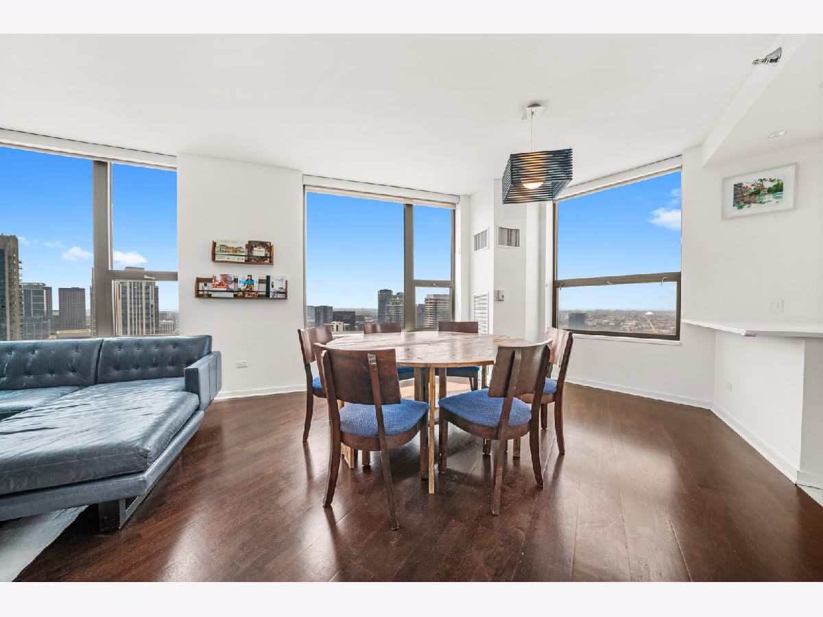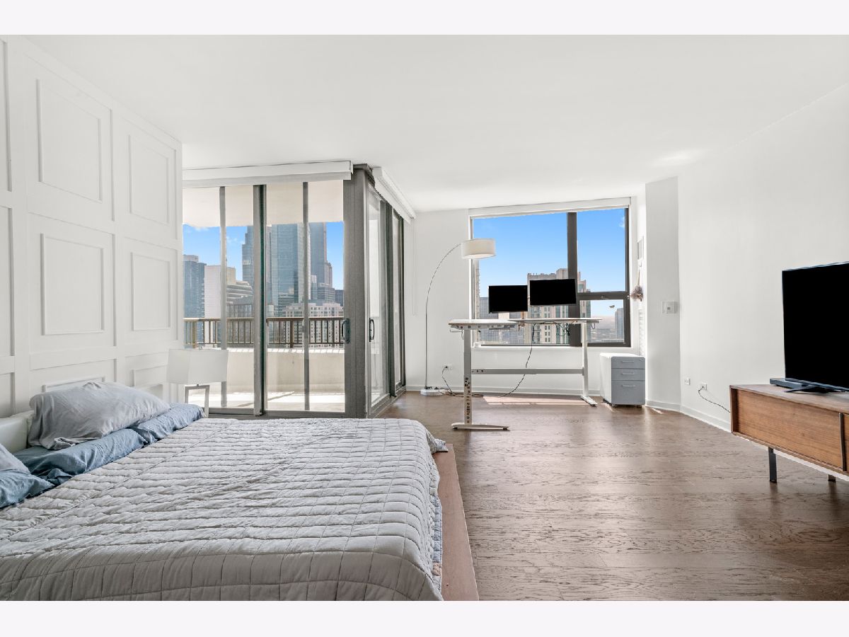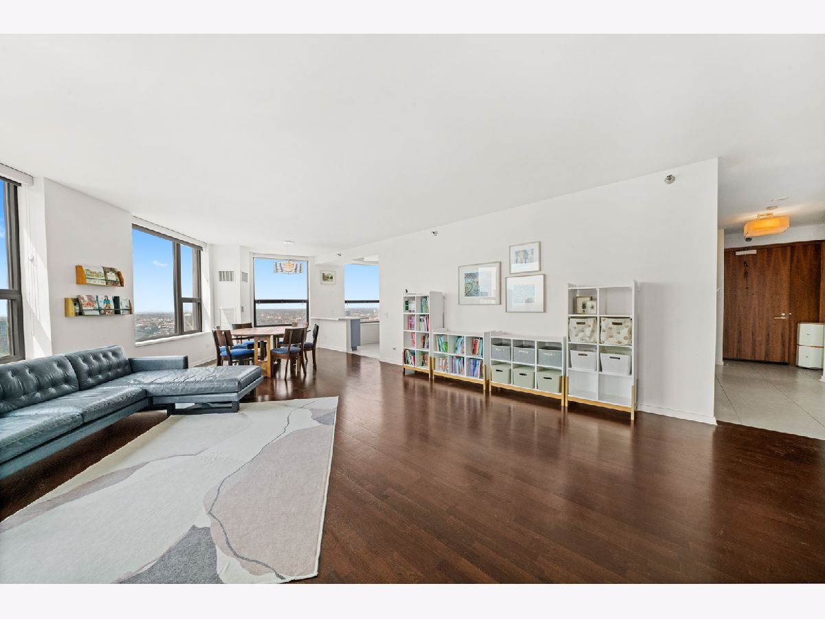 Absolutely stunning and rarely available, this sprawling 4-bedroom, 3.1-bath residence in Kinzie Park Tower offers commanding views of Chicago's sparkling skyline! This renovated home features four true spacious bedrooms, two oversized private terraces, two garage parking spaces, and numerous upgrades throughout. The gorgeous, updated open kitchen showcases painted gray cabinetry, quartz countertops, subway tile backsplash, induction cooktop, and stainless-steel appliances. Rich dark flooring, sophisticated lighting, and an expansive primary suite with a slate bath, separate tub/shower, and an enormous walk-in closet elevate the home's luxurious feel. Floor-to-ceiling wraparound windows deliver jaw-dropping 180 views to the east, south, and west. Kinzie Park provides an exclusive, gated community experience with exceptional amenities, including: 24-hour attended entry and door staff, Free guest parking, State-of-the-art fitness center, Outdoor pool and landscaped gardens, Private Riverwalk access, Bike room, Social room with full kitchen, and On-site management. Two heated garage parking spaces available at $35k each. Situated in the vibrant Fulton River District, this home places you in the heart of it all-steps from Chicago's finest dining, shopping, and entertainment. Enjoy acclaimed restaurants like Gibsons Italia, Carnivale, and Piccolo Sogno, with the East Bank Club and Jewel-Osco nearby. With a Walk Score of 92, transportation is a breeze: Chicago Ogilvie Transportation Center, Clinton Green & Pink Line station, multiple bus routes, and both O'Hare and Midway airports within a 25-minute drive. Explore this property in 3D! Click the 3D button to take a virtual tour and experience every detail.