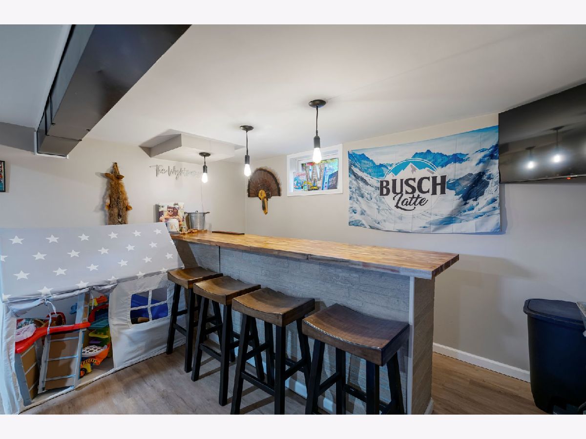 Well-maintained 3-bedroom ranch with full basement situated on a picturesque half-acre lot. The home features fresh interior paint and an updated kitchen complete with white cabinetry, glass tile backsplash, solid surface countertops, and ceramic tile flooring. The bright eat-in kitchen provides beautiful views of the peaceful backyard and direct access to a spacious deck for outdoor enjoyment. The family room and all bedrooms offer solid hardwood flooring. A recently remodeled bathroom highlights quality tile craftsmanship and contemporary finishes. The lot is partially cleared with mature trees at the rear, offering privacy and versatility. A large storage shed sits mid-property, and there is ample space for outdoor entertaining and recreation. The expanded driveway and side apron provide parking for up to five vehicles. The finished basement includes a sizable recreation room with bar area, full bath, utility space, and additional storage. Located in the desirable Johnsburg School District, this move-in ready home offers comfort, updates, and space inside and out.