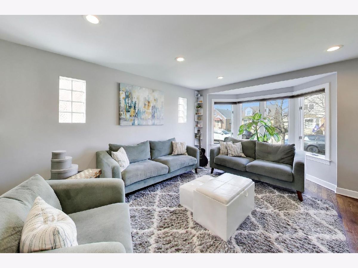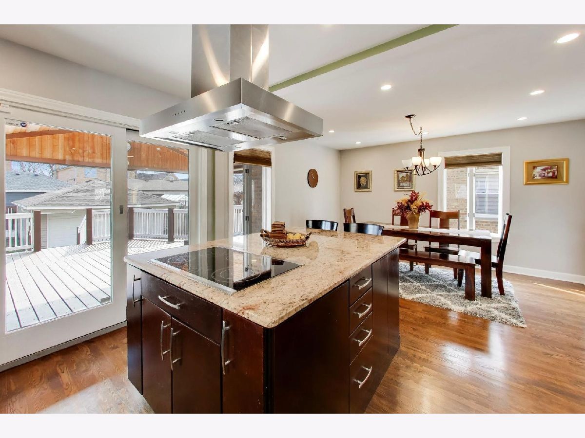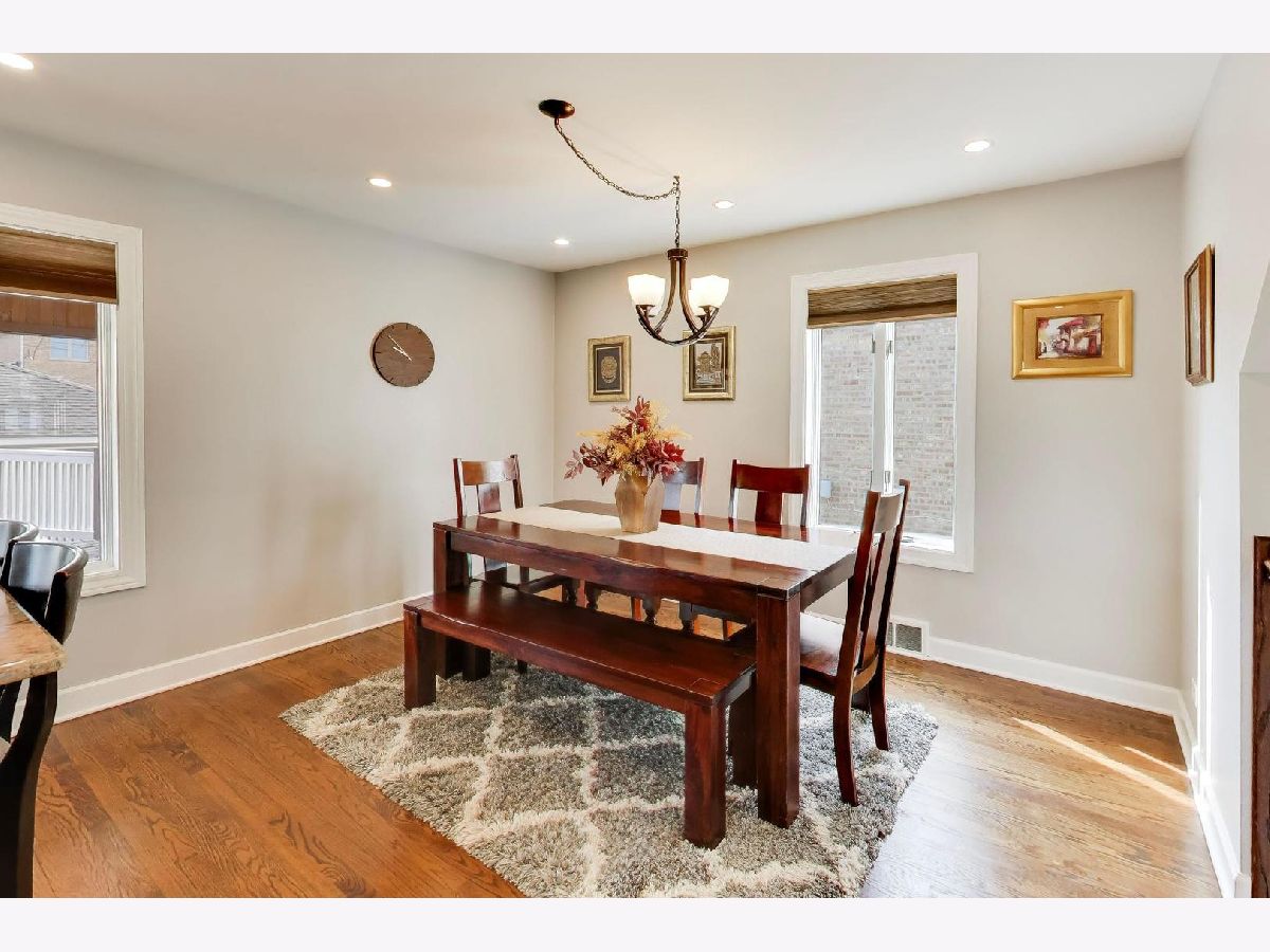 This charming remodeled English Tudor sits on an oversized lot and features a side drive leading to a two-car garage. Inside, you'll find a bright, open floor plan where the living room-highlighted by a beautiful bay window-flows seamlessly into the updated kitchen and dining area. The large kitchen is designed for both everyday living and entertaining, offering a generous island with seating, an electric range and cooktop (gas line connection behind range) and a ceiling-mounted range hood. A convenient first-floor bedroom and full bath provide flexible living options for guests or a home office. Upstairs, two well-sized bedrooms are complemented by a full bathroom featuring a double vanity, large enclosed shower & heated floors. The fully finished basement expands your living space with a recreation room, cold storage, additional storage, a laundry room, and a full bathroom complete with a soaking tub. Additional highlights include hardwood floors throughout, Andersen windows, 2nd floor hallway skylight, hidden Cat6 cable for internet & surround sound hook-up in basement, dual HVAC systems, a newer roof (2019) and flood control for peace of mind. Step outside to enjoy the expansive backyard, complete with a two-tiered deck featuring a custom ceiling with a fan and recessed lighting-perfect for outdoor entertaining. The yard also includes a natural gas line for grilling, vegetable garden and perennial landscaping. Ideally located near I-90/94, the Blue Line, and public transportation, this home offers both comfort and convenience. H&B Due Wednesday, April 8th at 1pm.