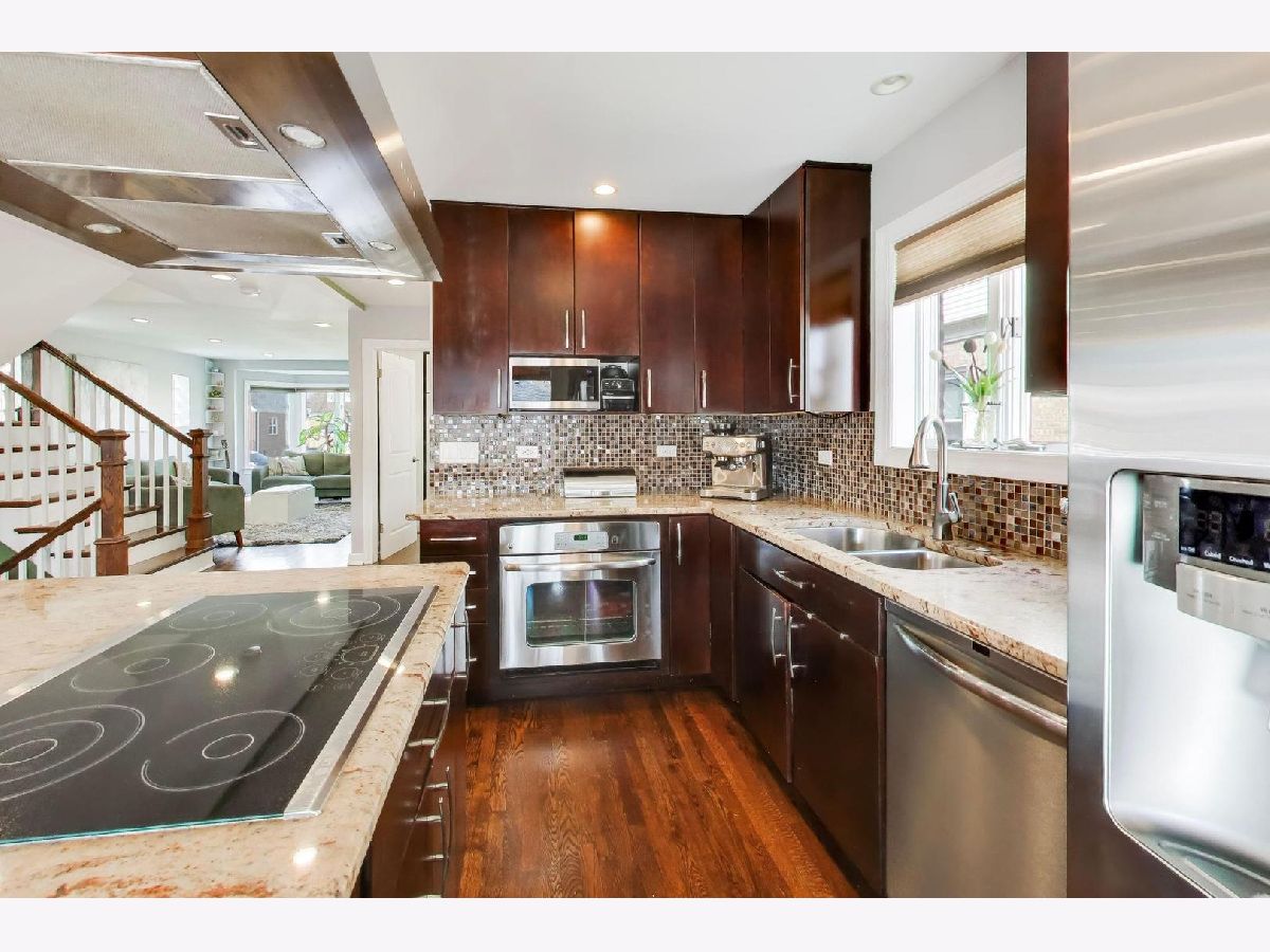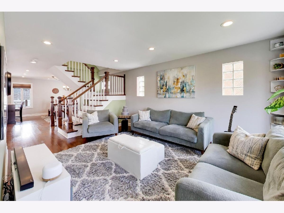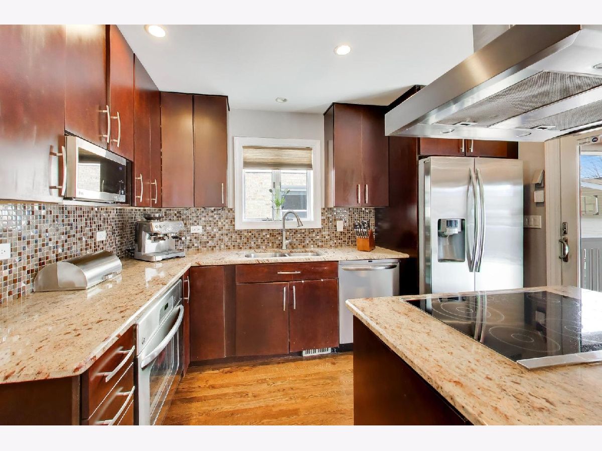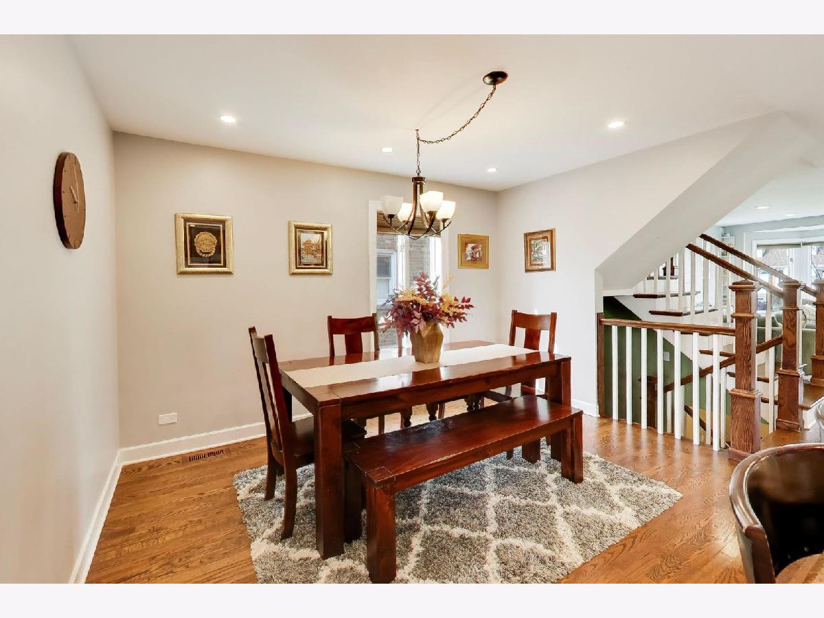 This charming remodeled English Tudor sits on an oversized lot and features a side drive leading to a two-car garage. Inside, you'll find a bright, open floor plan where the living room-highlighted by a beautiful bay window-flows seamlessly into the updated kitchen and dining area. The large kitchen is designed for both everyday living and entertaining, offering a generous island with seating, an electric range and cooktop (gas line connection behind range) and a ceiling-mounted range hood. A convenient first-floor bedroom and full bath provide flexible living options for guests or a home office. Upstairs, two well-sized bedrooms are complemented by a full bathroom featuring a double vanity, large enclosed shower & heated floors. The fully finished basement expands your living space with a recreation room, cold storage, additional storage, a laundry room, and a full bathroom complete with a soaking tub. Additional highlights include hardwood floors throughout, Andersen windows, 2nd floor hallway skylight, hidden Cat6 cable for internet & surround sound hook-up in basement, dual HVAC systems, a newer roof (2019) and flood control for peace of mind. Step outside to enjoy the expansive backyard, complete with a two-tiered deck featuring a custom ceiling with a fan and recessed lighting-perfect for outdoor entertaining. The yard also includes a natural gas line for grilling, vegetable garden and perennial landscaping. Ideally located near I-90/94, the Blue Line, and public transportation, this home offers both comfort and convenience. H&B Due Wednesday, April 8th at 1pm.