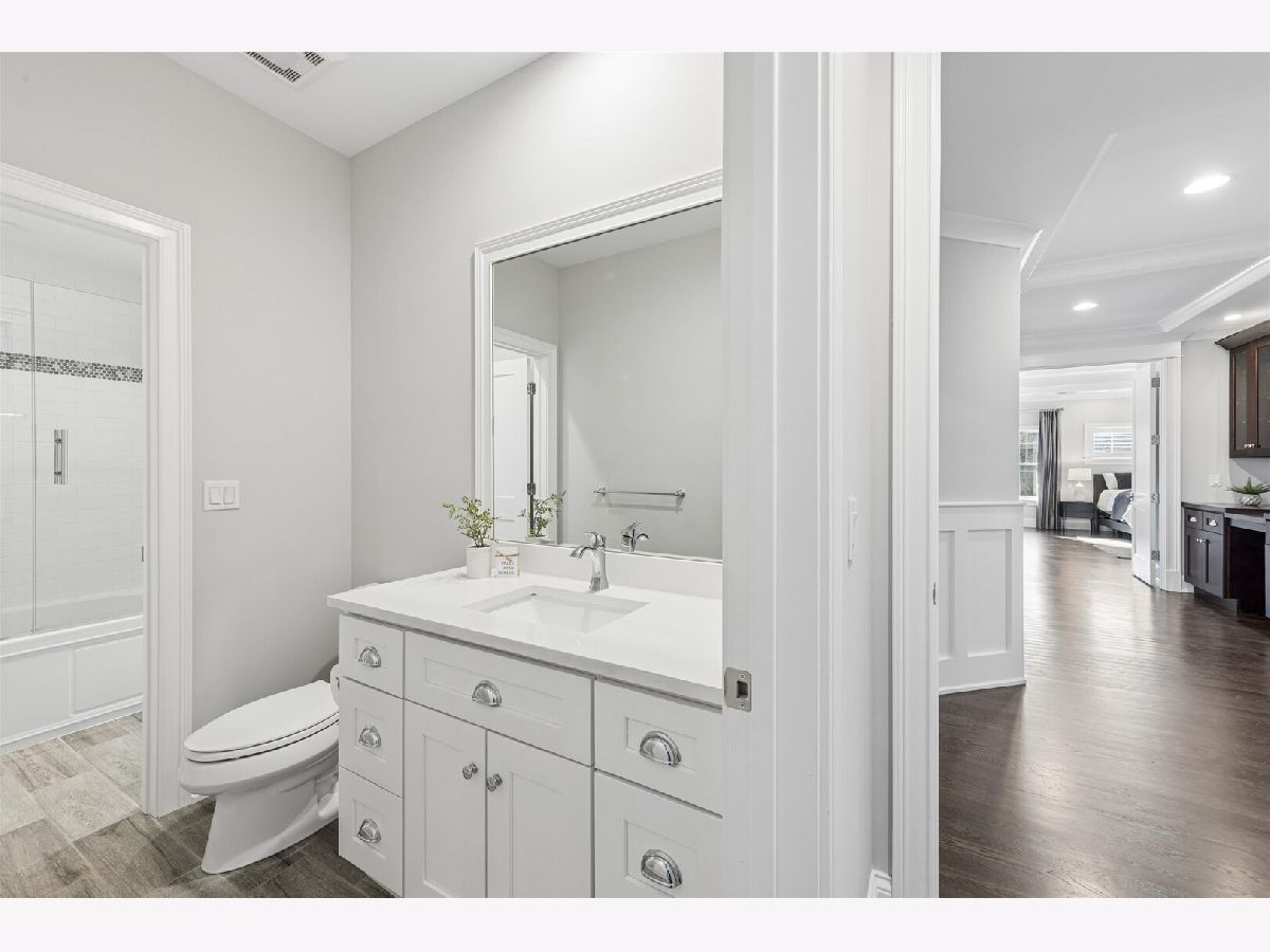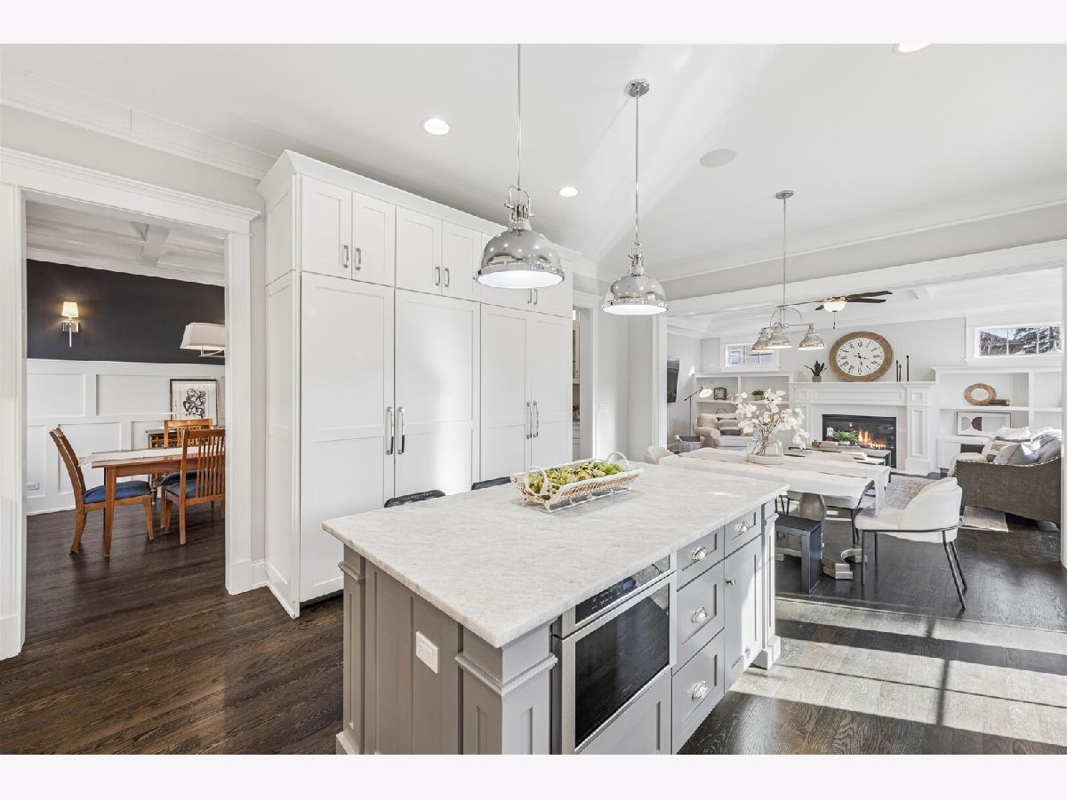 Exceptional 2017-Built Home in an Unbeatable Location Ideally situated just 3 blocks from the new Lincoln School, 1/2 block to the Prairie Path, and an easy walk to the Spring Road Business District. This stunning home offers the perfect blend of luxury, space, and convenience. Set on a rare 58' wide lot, this beautifully crafted residence features 5,921 total square feet (4,336 above grade plus 1,585 finished basement) and a 3-car garage with smart car plug. The main level boasts 10-foot ceilings, extensive custom millwork, wainscoting, and coffered ceilings throughout. A gracious formal living room and elegant dining room flank the foyer. The white gourmet kitchen showcases upgraded paneled appliances and opens to an expansive family room with fireplace and custom built-ins. A private first-floor office and a custom-designed mudroom add everyday functionality. Upstairs, you'll find 4 spacious bedrooms and 3+ luxury bathrooms, including a thoughtfully designed Jack-and-Jill bath each with private sink and toilet areas. The luxurious primary suite offers a spa-inspired bath and an oversized California Closet. A large second-floor laundry room adds convenience. The finished third-floor walk-up includes a full bath-ideal for an au pair suite, private office, or guest quarters. The incredible finished basement is designed for entertaining and relaxation, featuring a full bar, newer luxury vinyl floors, second fireplace, recreation room, fifth bedroom, exercise room, and full bath. Step outside to a huge, park-like fenced backyard with professional landscaping, an oversized patio, pergola, and built-in grill-perfect for outdoor gatherings. Additional highlights include custom window treatments, 5.1 total bathrooms, and high-end finishes throughout. This fully loaded home truly checks every box.